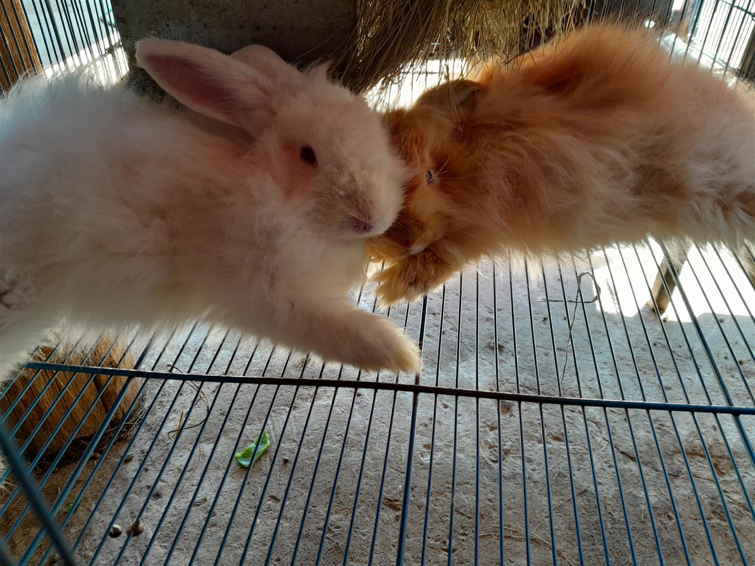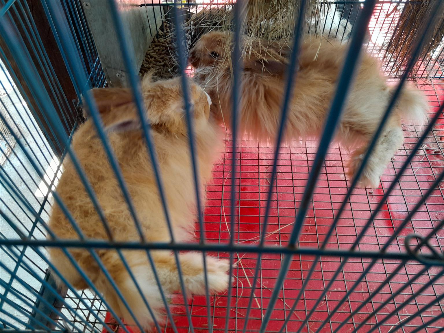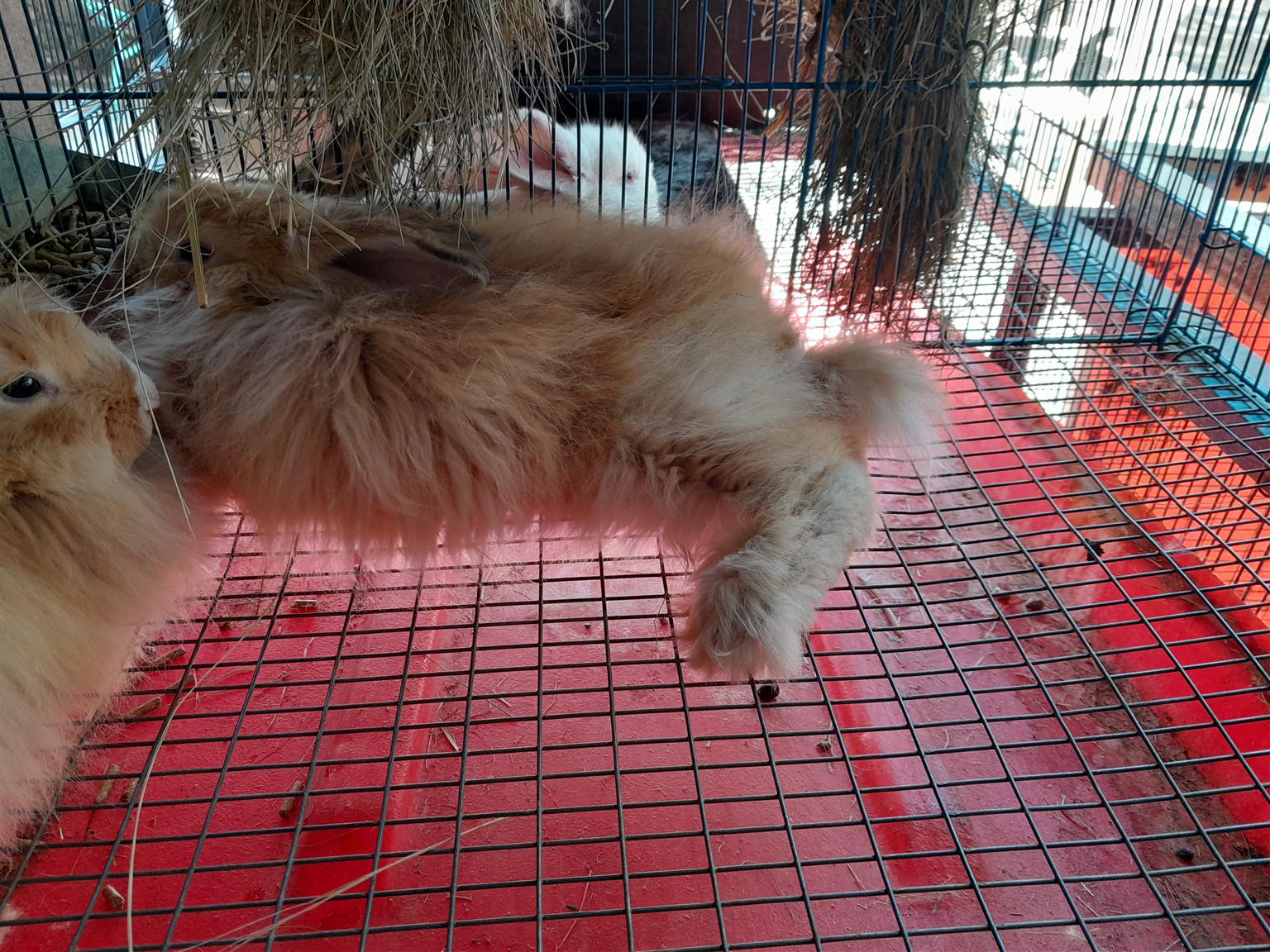 8 to 12 week old angoras male and female. Only two females and 5 males available. They are fully groomed and well cared for. Prices range according to age from 250 to 350. White and red available.