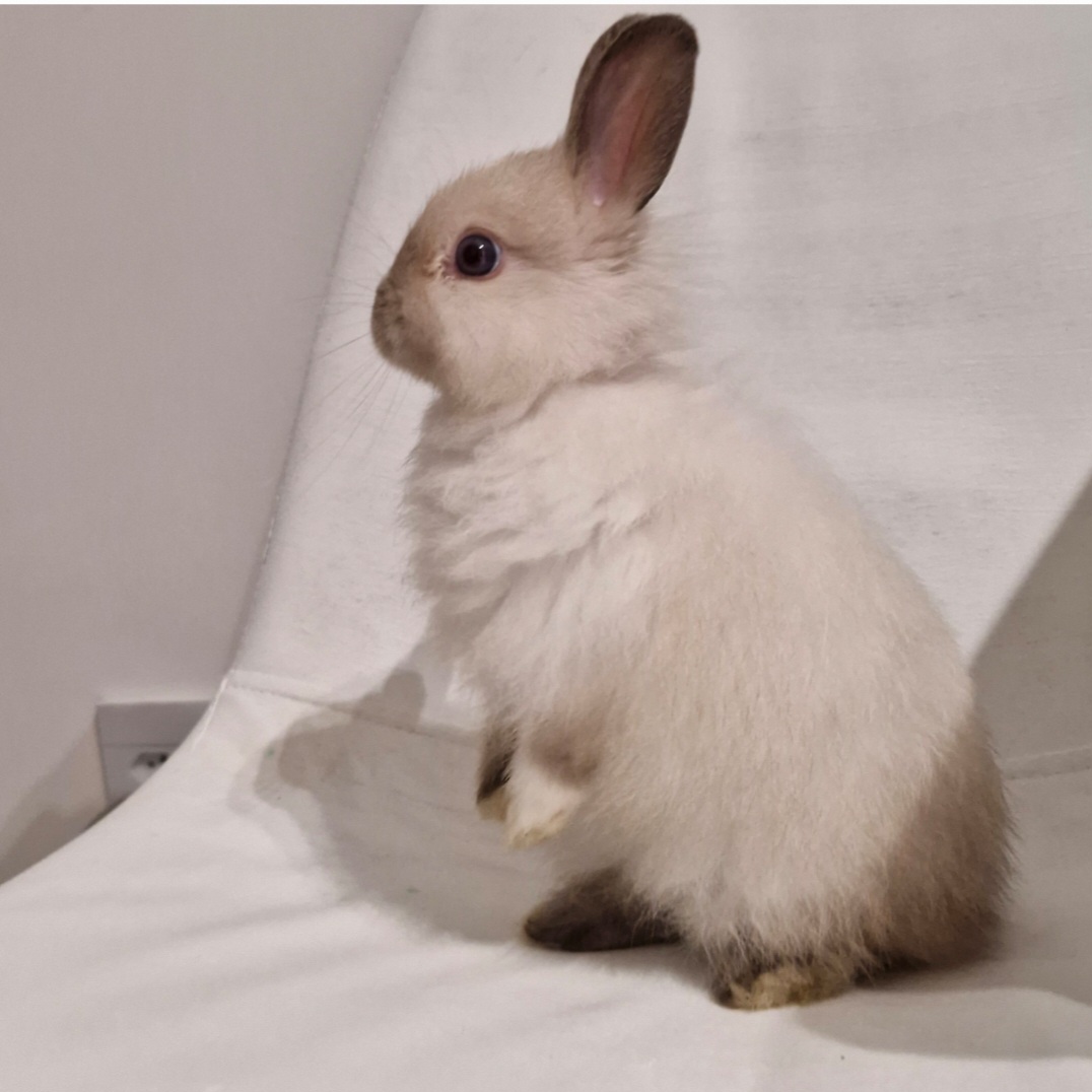 Blue eyed, Himalayan coloring Jersey Woolly female.