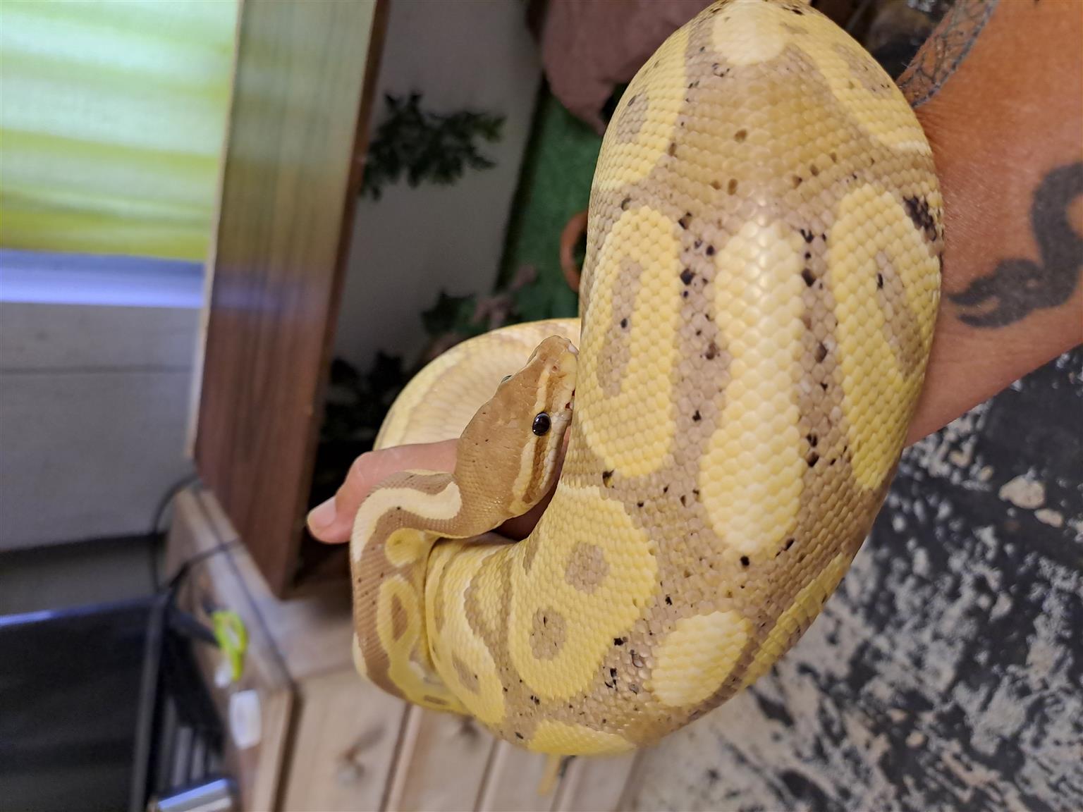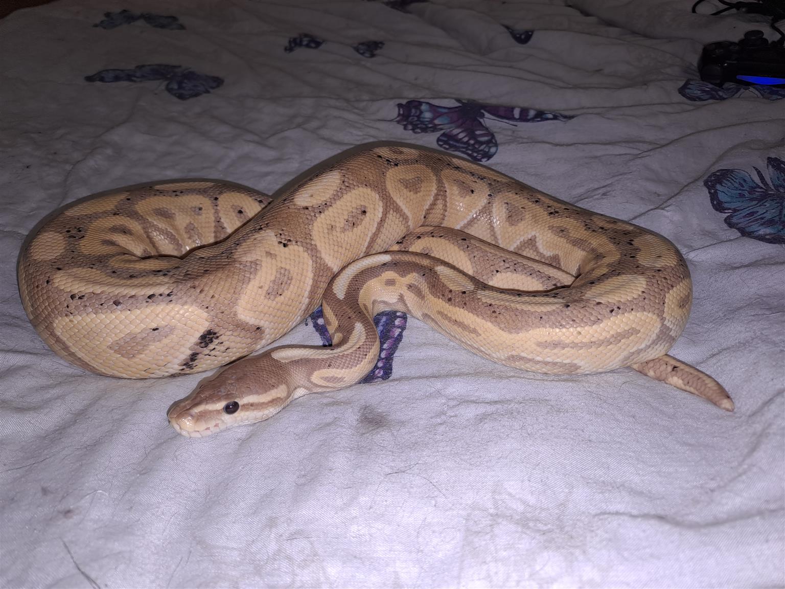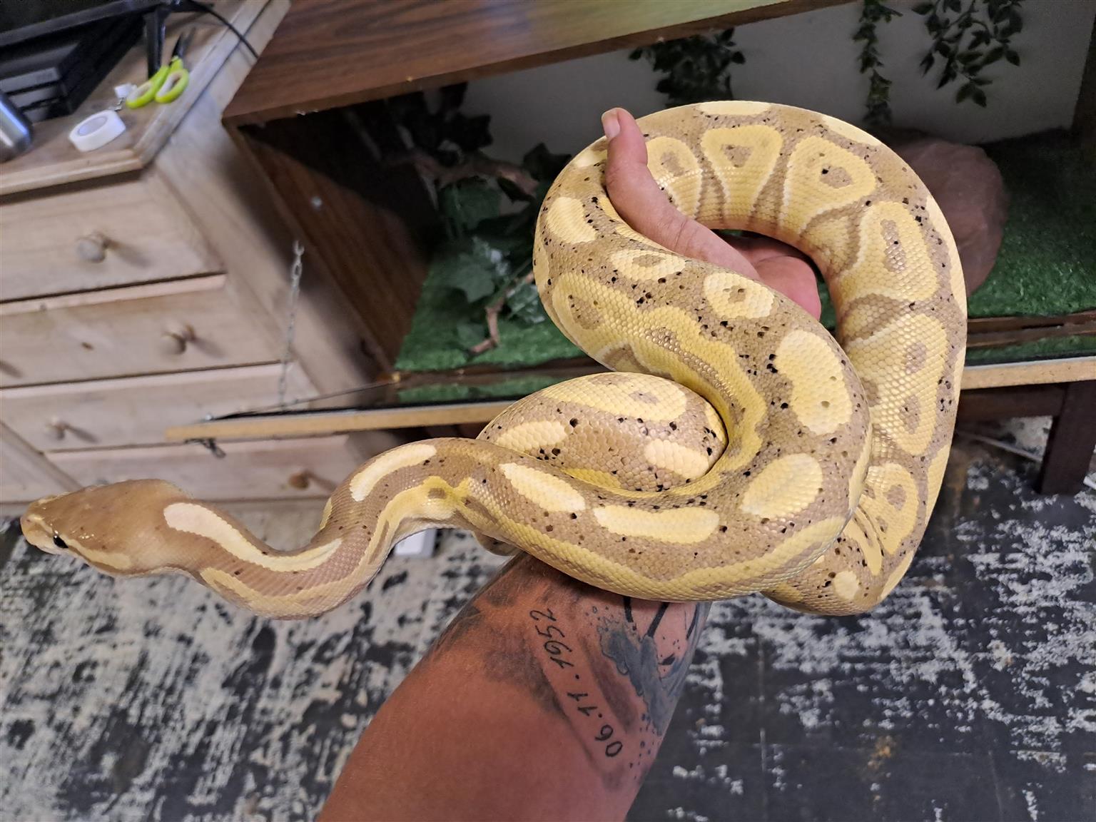 Banana Mojavi Ball Python, 2.5years old, just over 1.2m, Good healthy condition. I am moving can't take him with me. Enclosure and everything in it included.