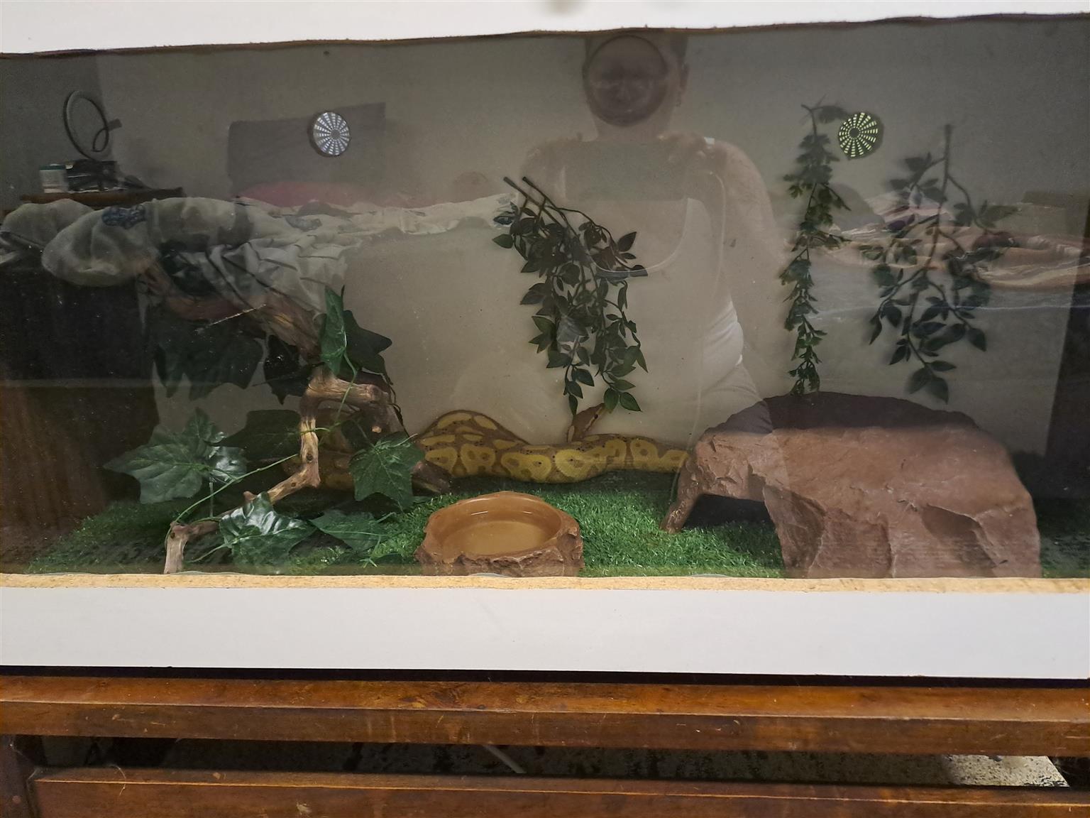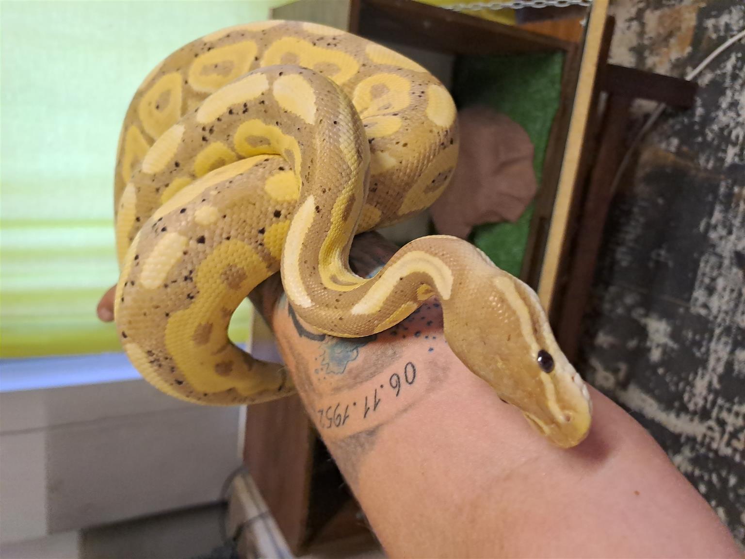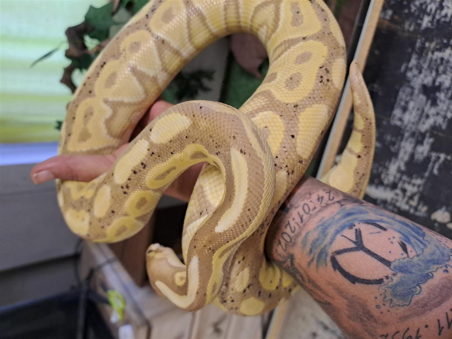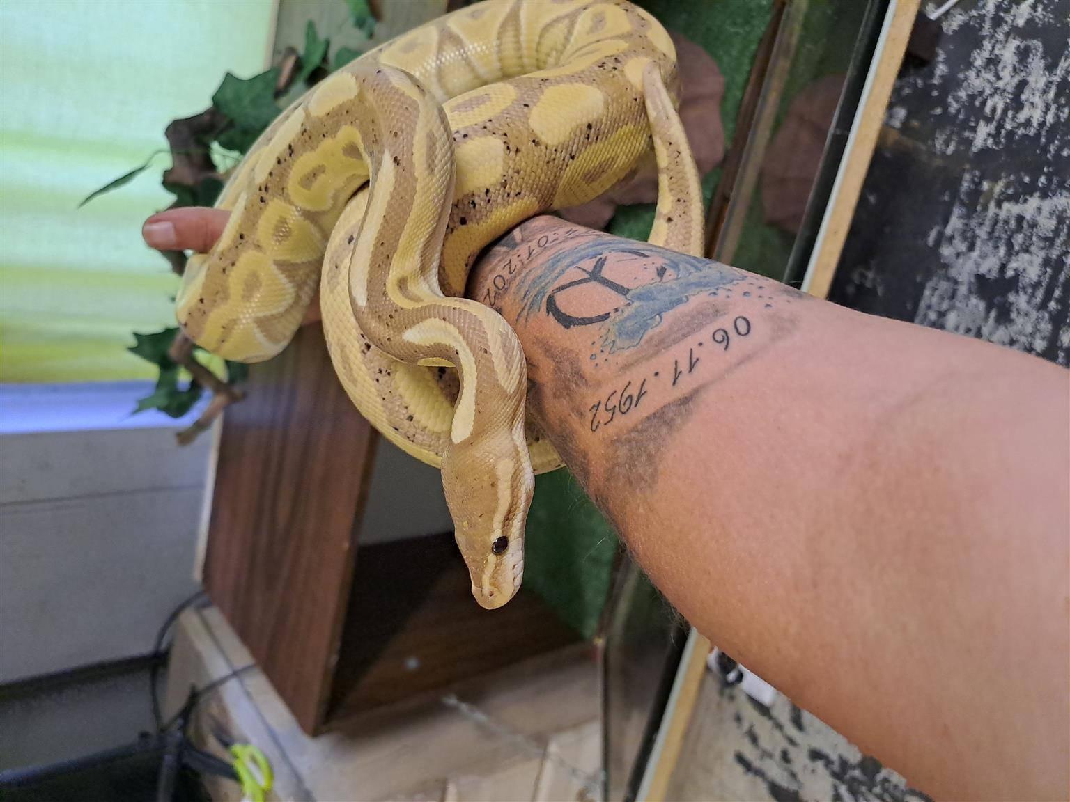 Banana Mojavi Ball Python, 2.5years old, just over 1.2m, Good healthy condition. I am moving can't take him with me. Enclosure and everything in it included.