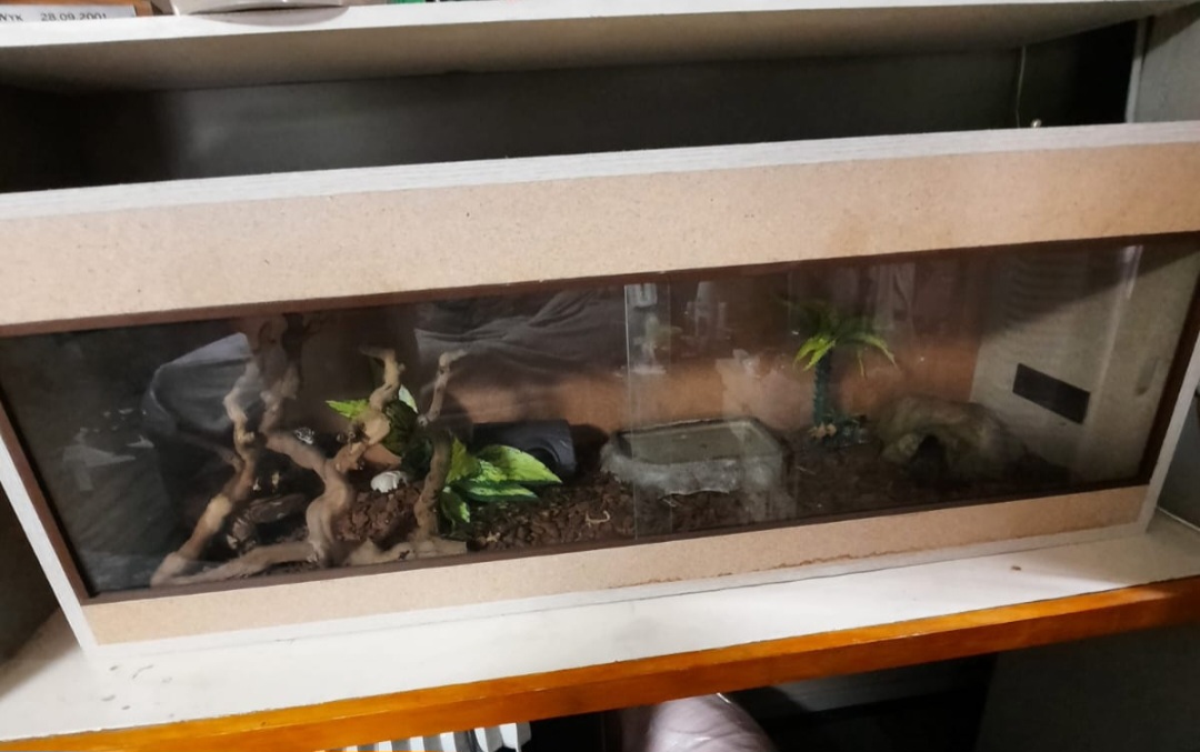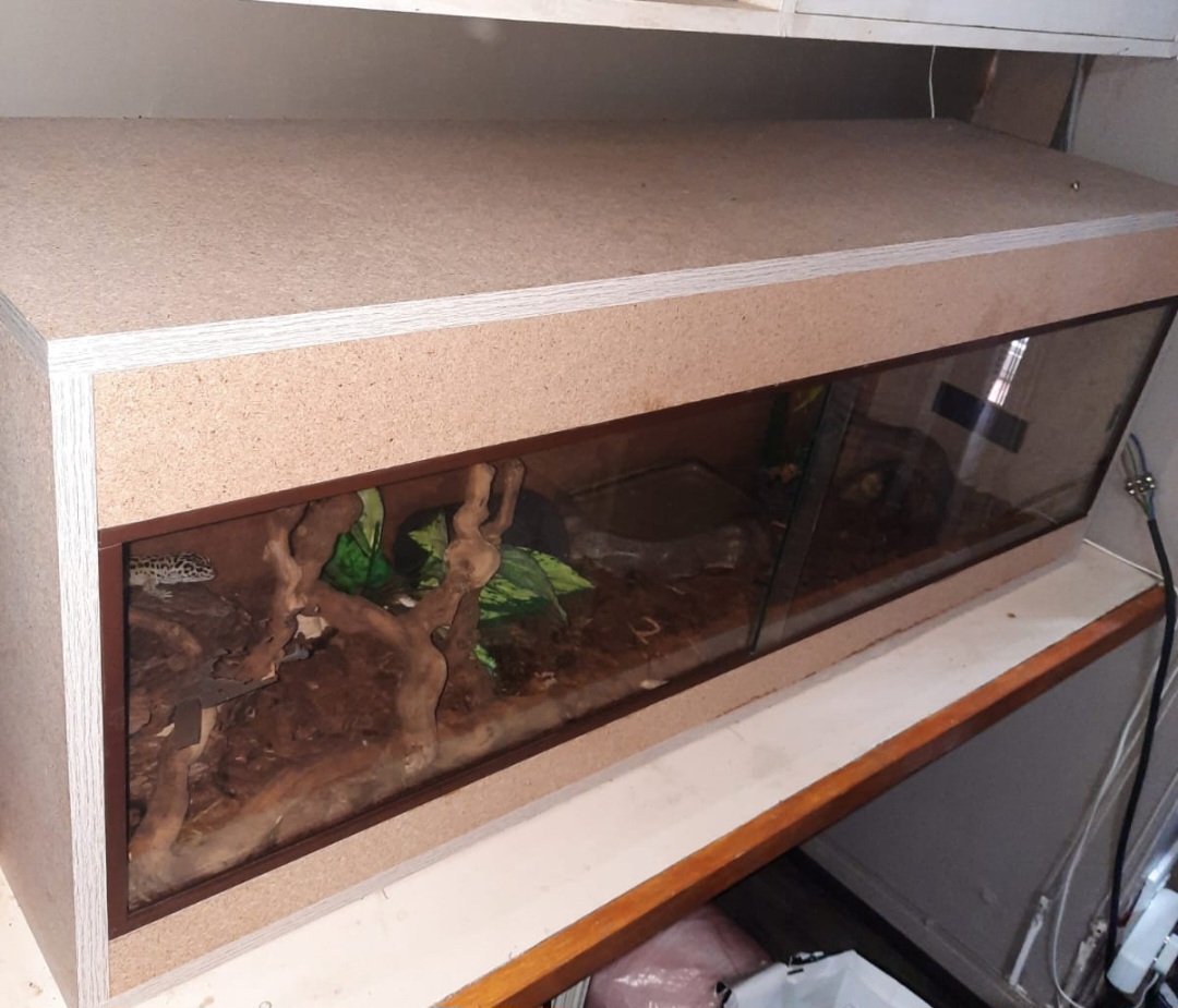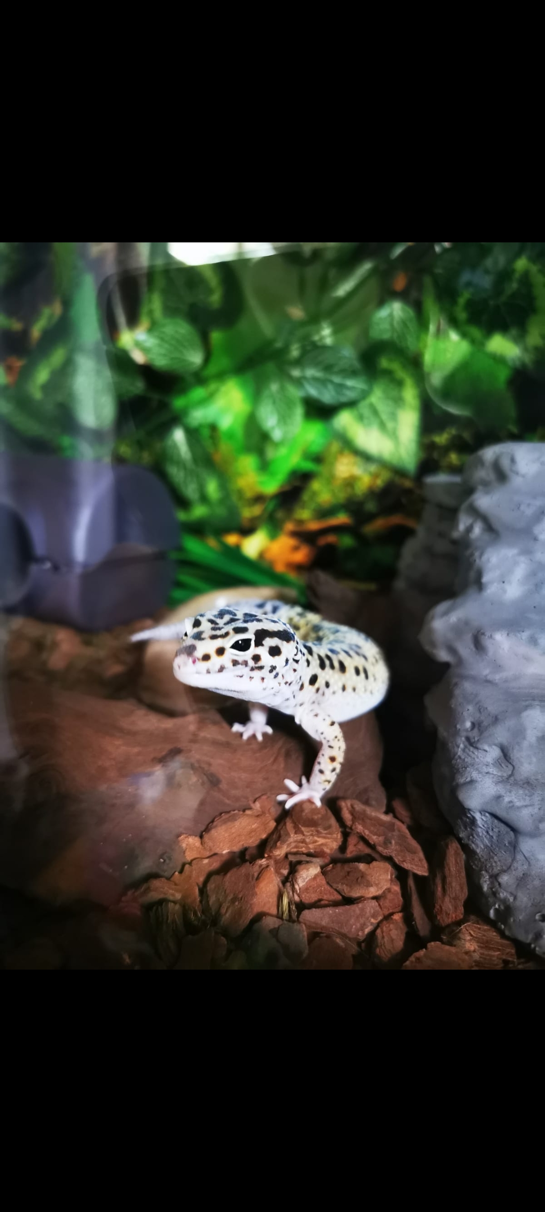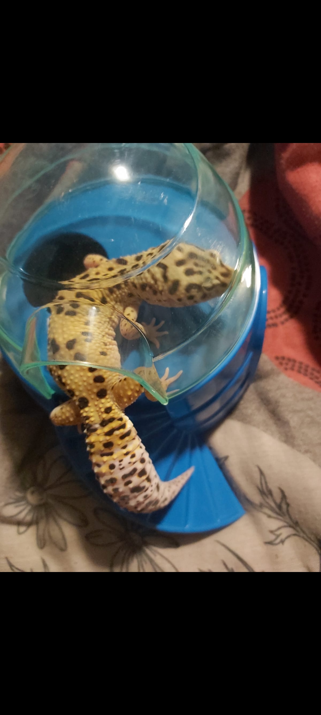 Reptile cage with leopard gecko. Includes water bowl, hides, heating pad. Looking for a new loving home as I am a student and don't have the time to take them out as much as they deserve