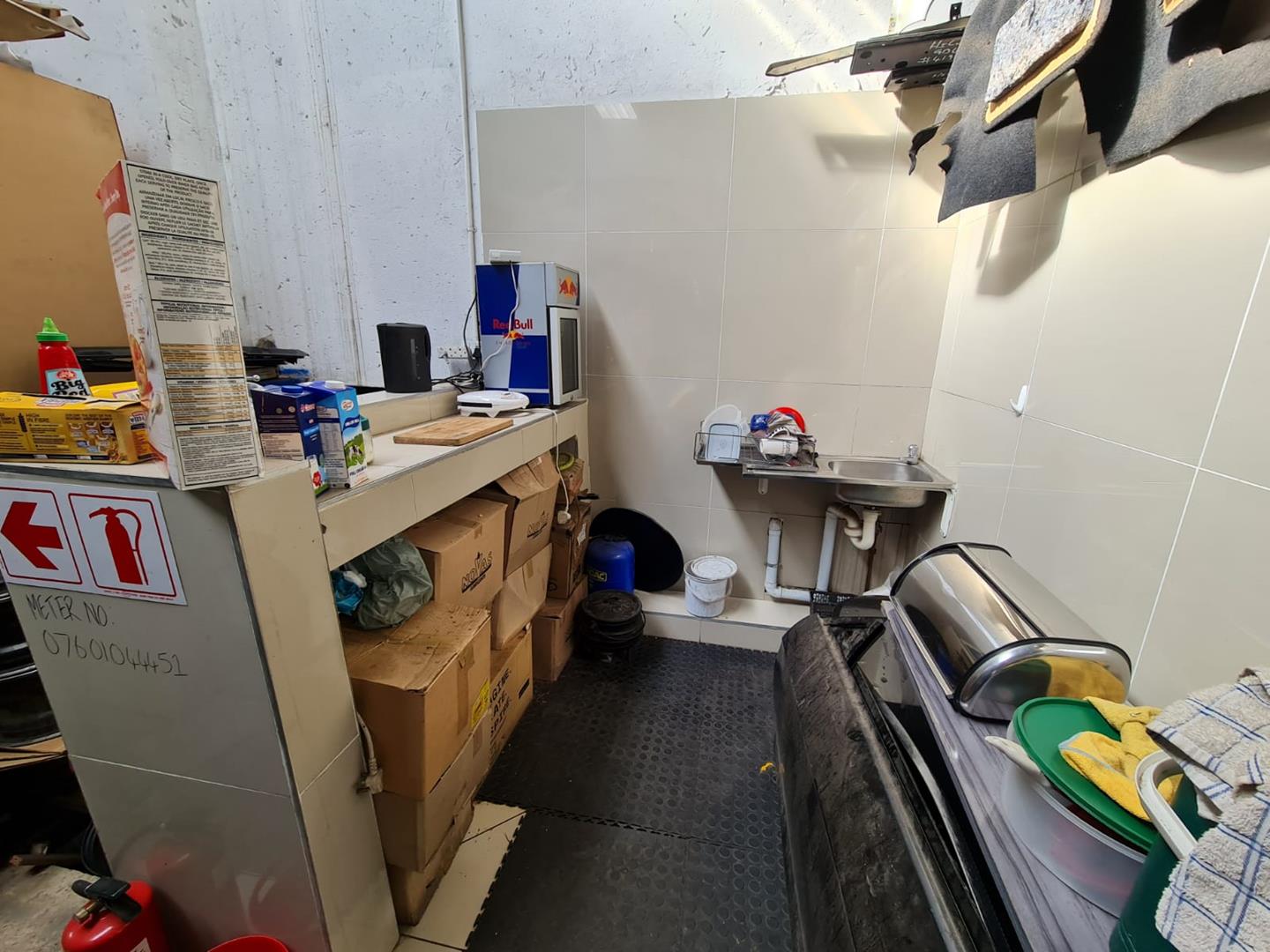 Enhancing both convenience and comfort, the property features two fully tiled bathrooms and a kitchen, catering to the needs of both staff and clientele. Security is paramount, with strategically placed bars placed throughout the reception area, providing an added layer of safety.