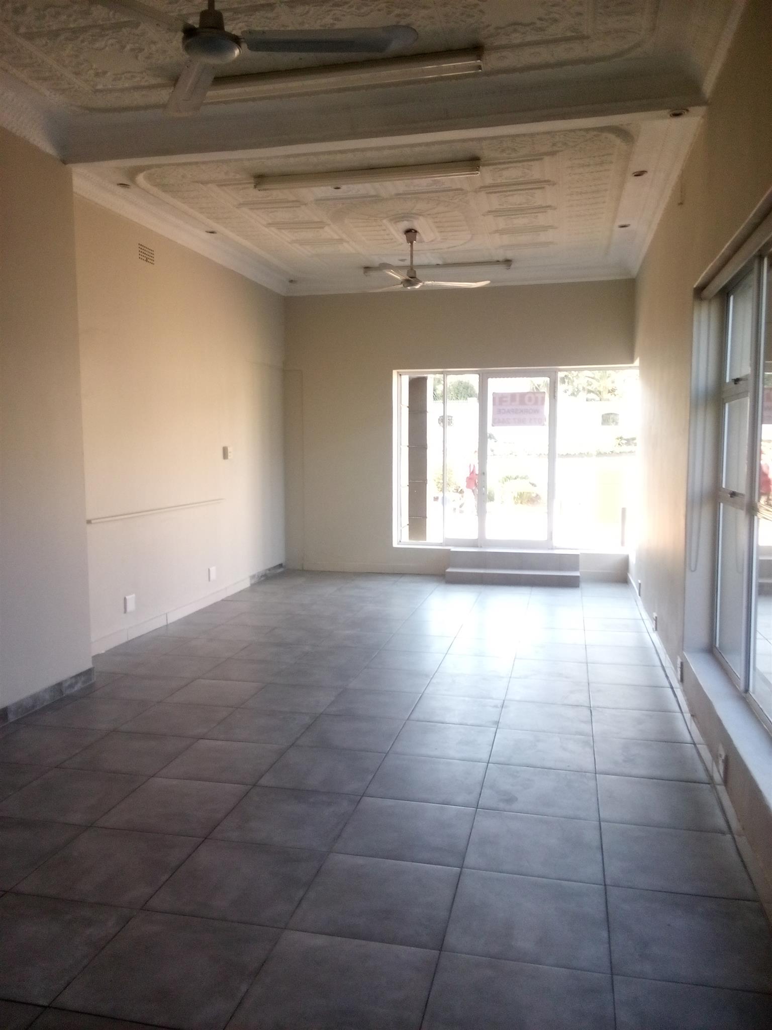 Prime space available to rent for business. Located on the main road through Kensington JHB. Street frontal space with secure boomed parking for clients. Excellent position located in best part of business & suburbia hub. Water included in rental amount. Electricity on a PrePaid Meter.