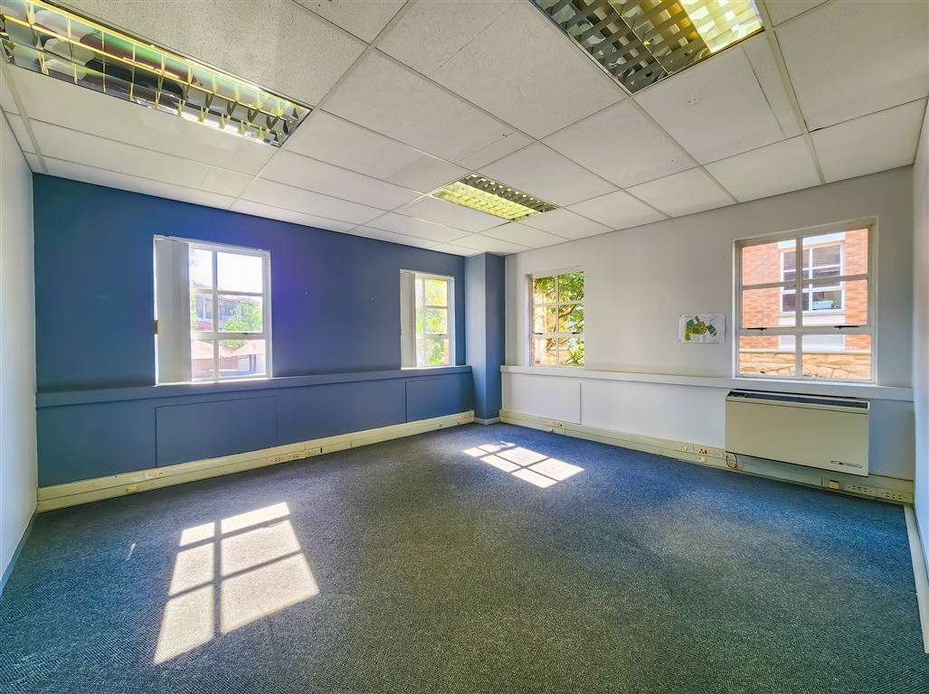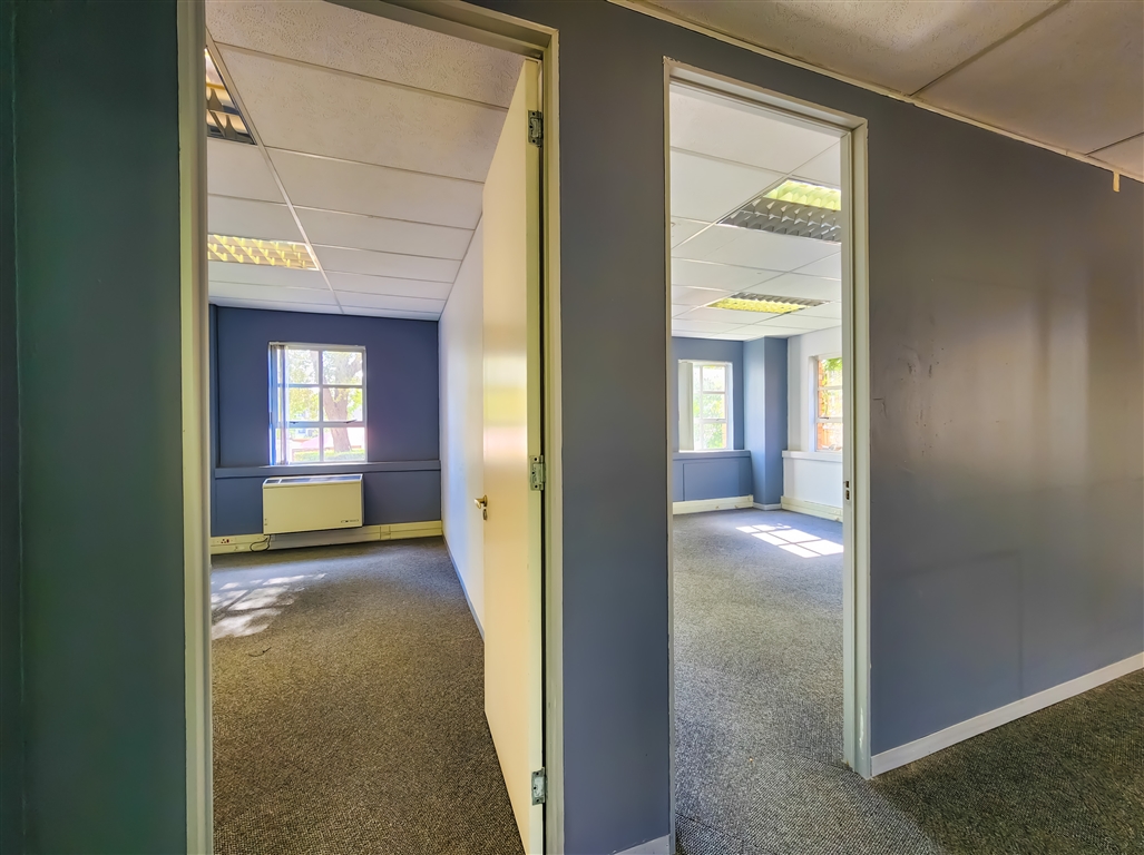 The floor is a combination of carpet, vinyl, and tile flooring, while large windows fill the space with abundant natural light. Fully air-conditioned throughout, this office combines comfort, style, and productivity in an exceptional location.