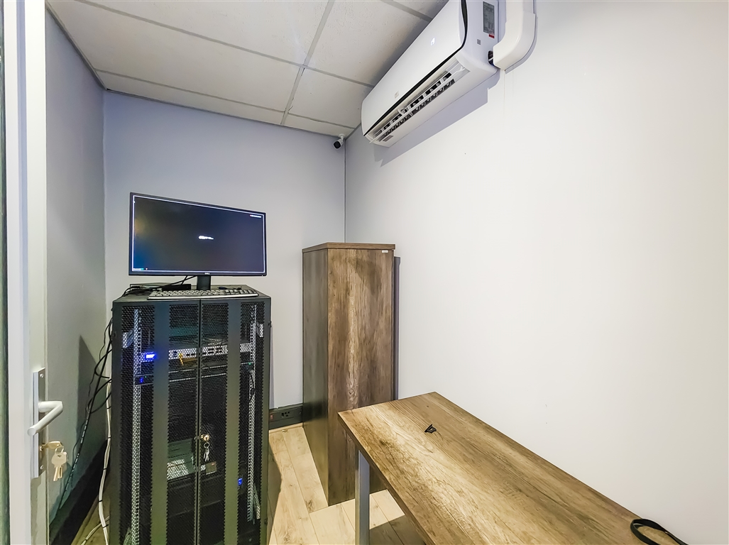 This prime office space to rent in The Pivot is ready for immediate occupation, offering a functional and welcoming layout. Upon entry, you are greeted by a spacious reception area followed by a versatile storeroom or server room. A passage leads you to a generous sized boardroom, comfortably accommodating a six-seater setup, as well as one private office and two open-plan work stations. The space is complemented by a modern, open-plan kitchen, perfect for informal breaks or collaborative discussions. Finished with sleek vinyl flooring throughout, this office combines practicality, style, and comfort in a sought-after business location.