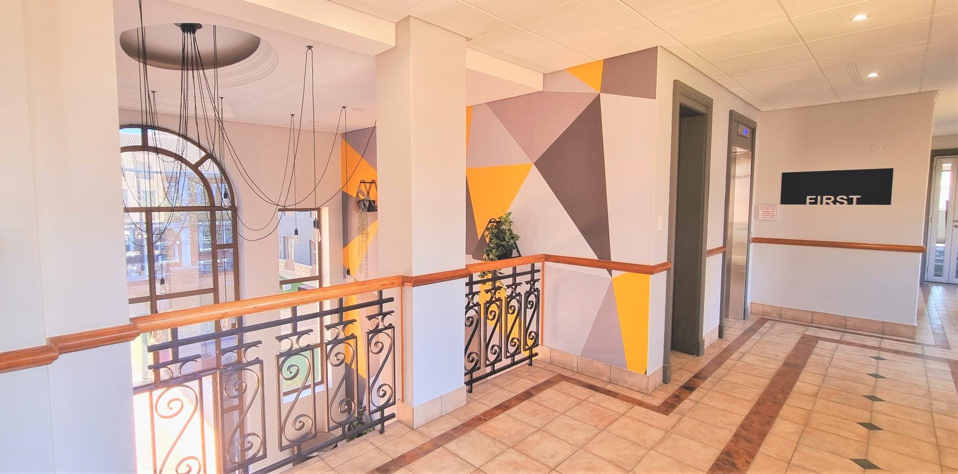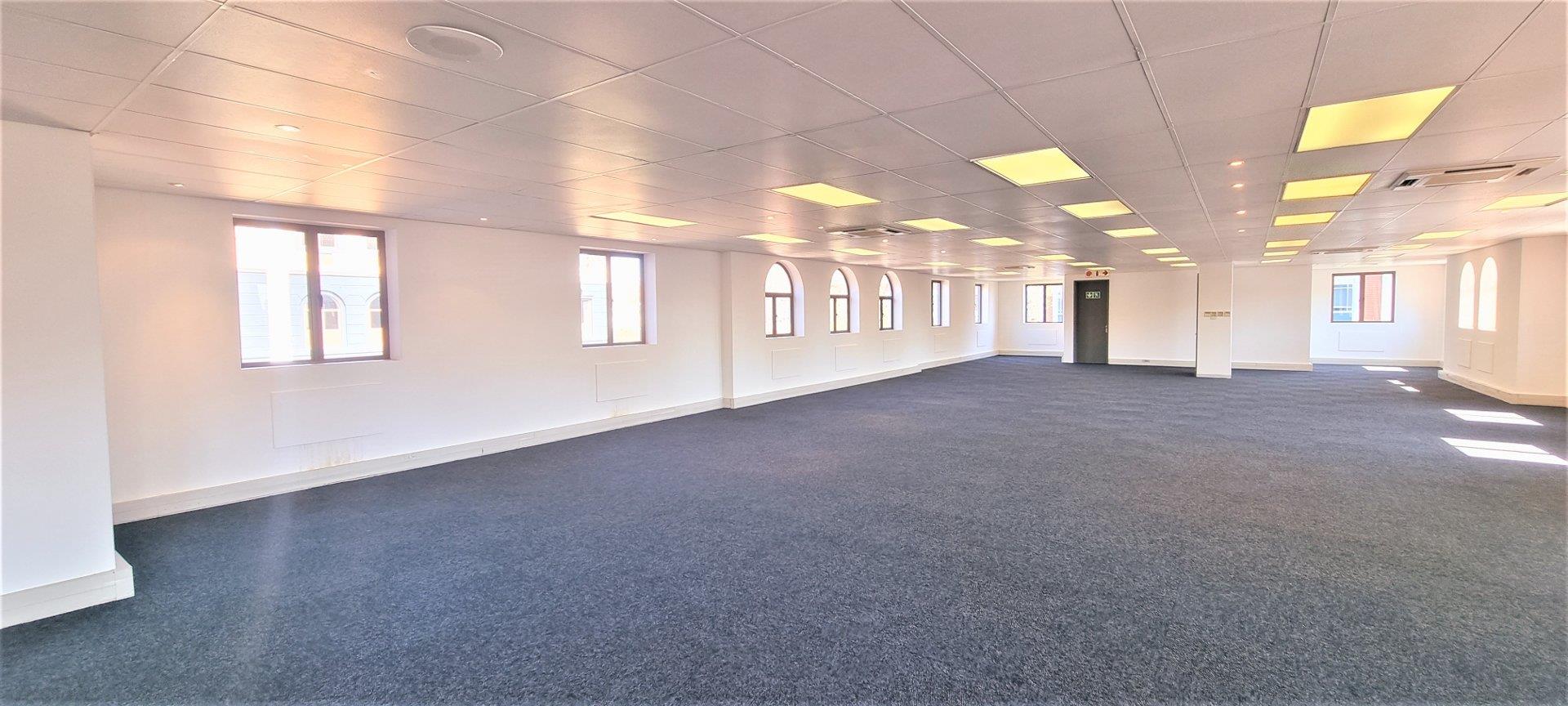 This recently refurbished elegant building offers a grand entrance with large windows and immaculate interiors.