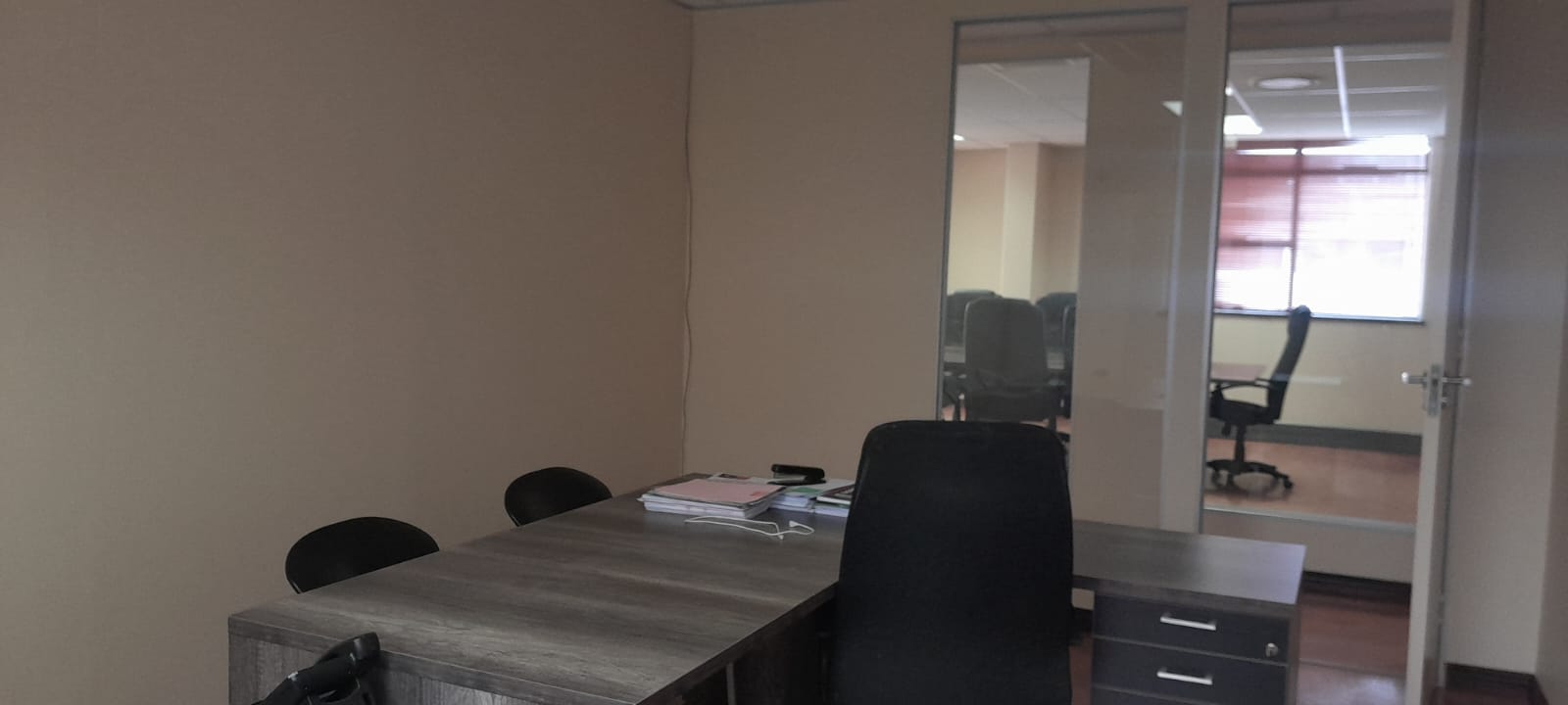 The highlight of this office suite is the expansive boardroom, perfect for hosting significant meetings and presentations. It comes complete with a spacious balcony, allowing for fresh air and a touch of outdoor ambiance during breaks.