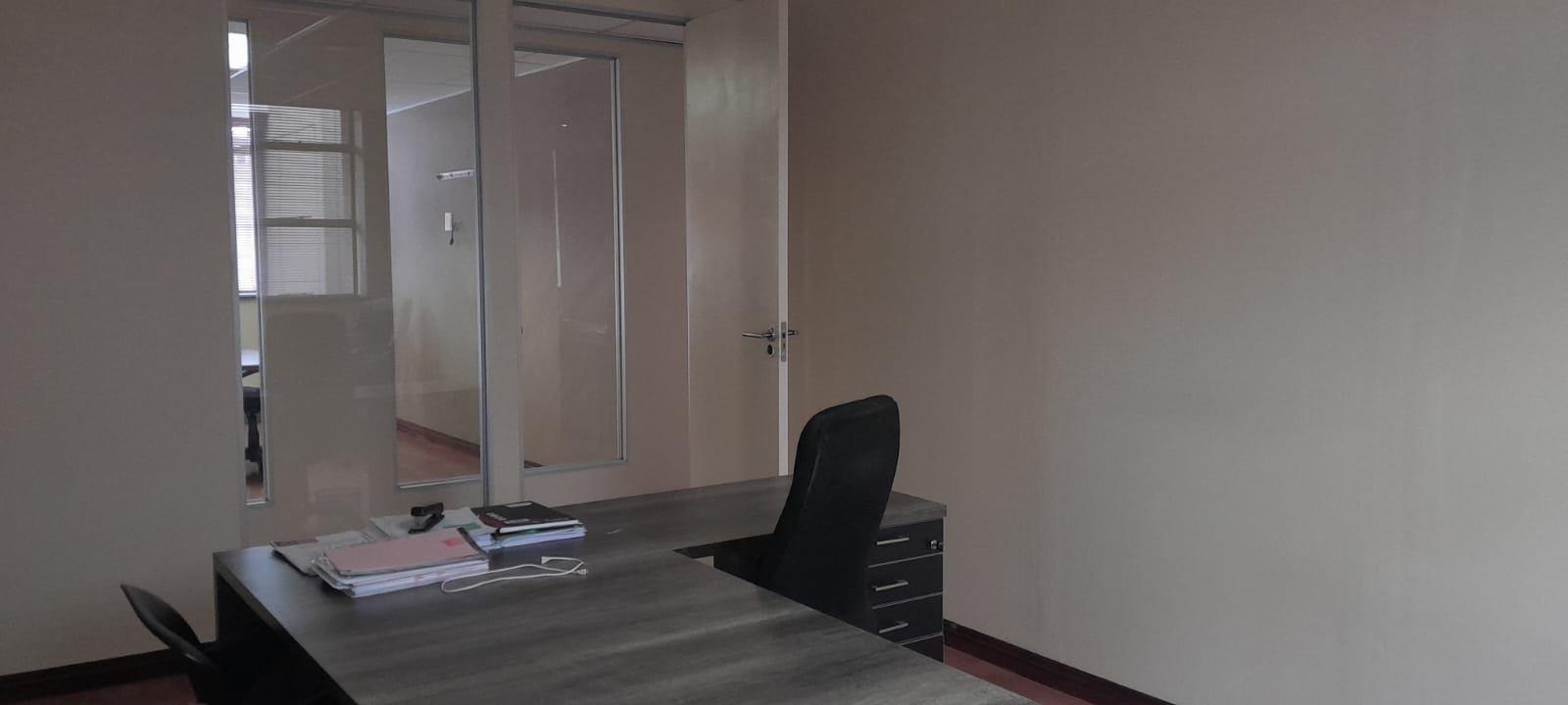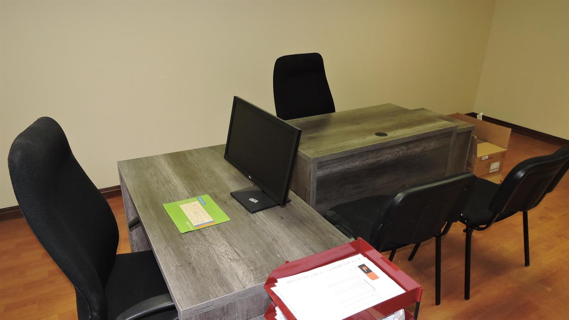 For climate control, the entire office, including the boardroom, is equipped with a state-of-the-art air conditioning system, ensuring a comfortable temperature year-round.