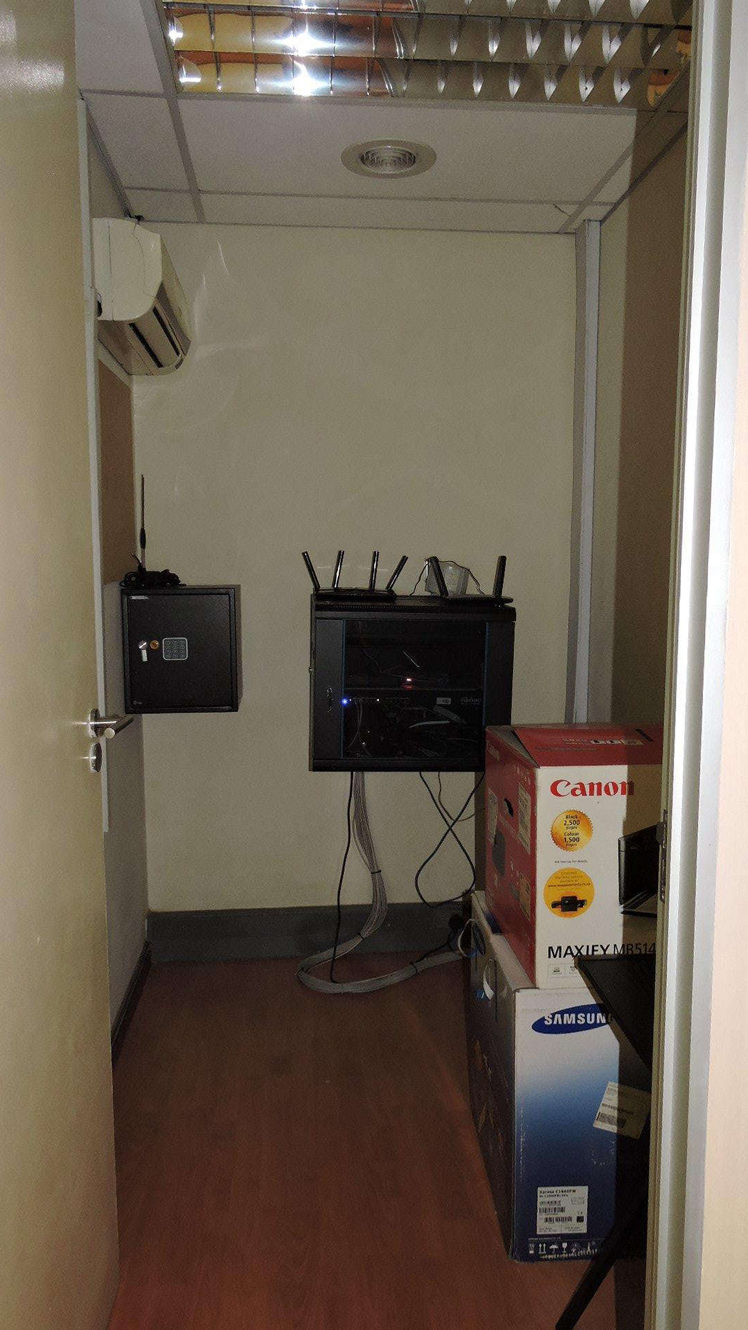 The suite includes essential facilities such as a kitchenette with ample cupboard space and a sink, as well as separate male and female toilets. A dedicated server room is equipped with a safe and IT server, along with its own air conditioning unit to ensure optimal equipment performance.