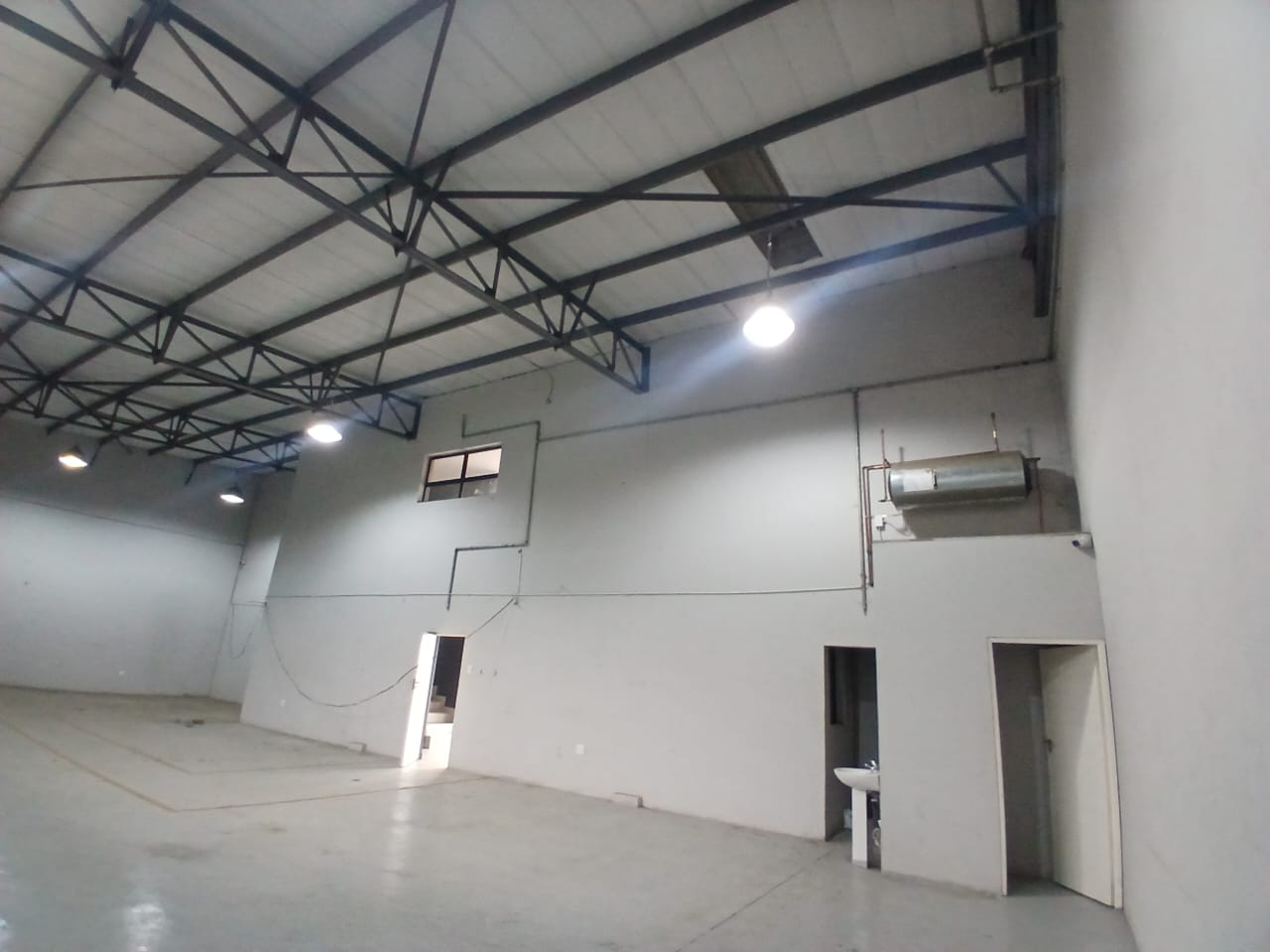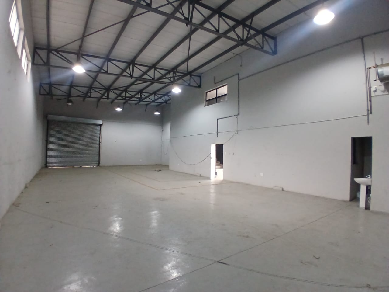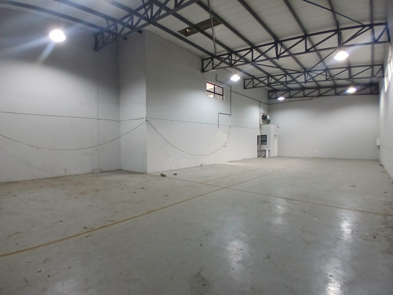 This property boasts a double-volume warehouse ceiling with bright lighting for excellent visibility. A roller shutter door measuring approximately 5m high by 4m wide opens into a spacious yard area, ideal for small trucks and forklifts.