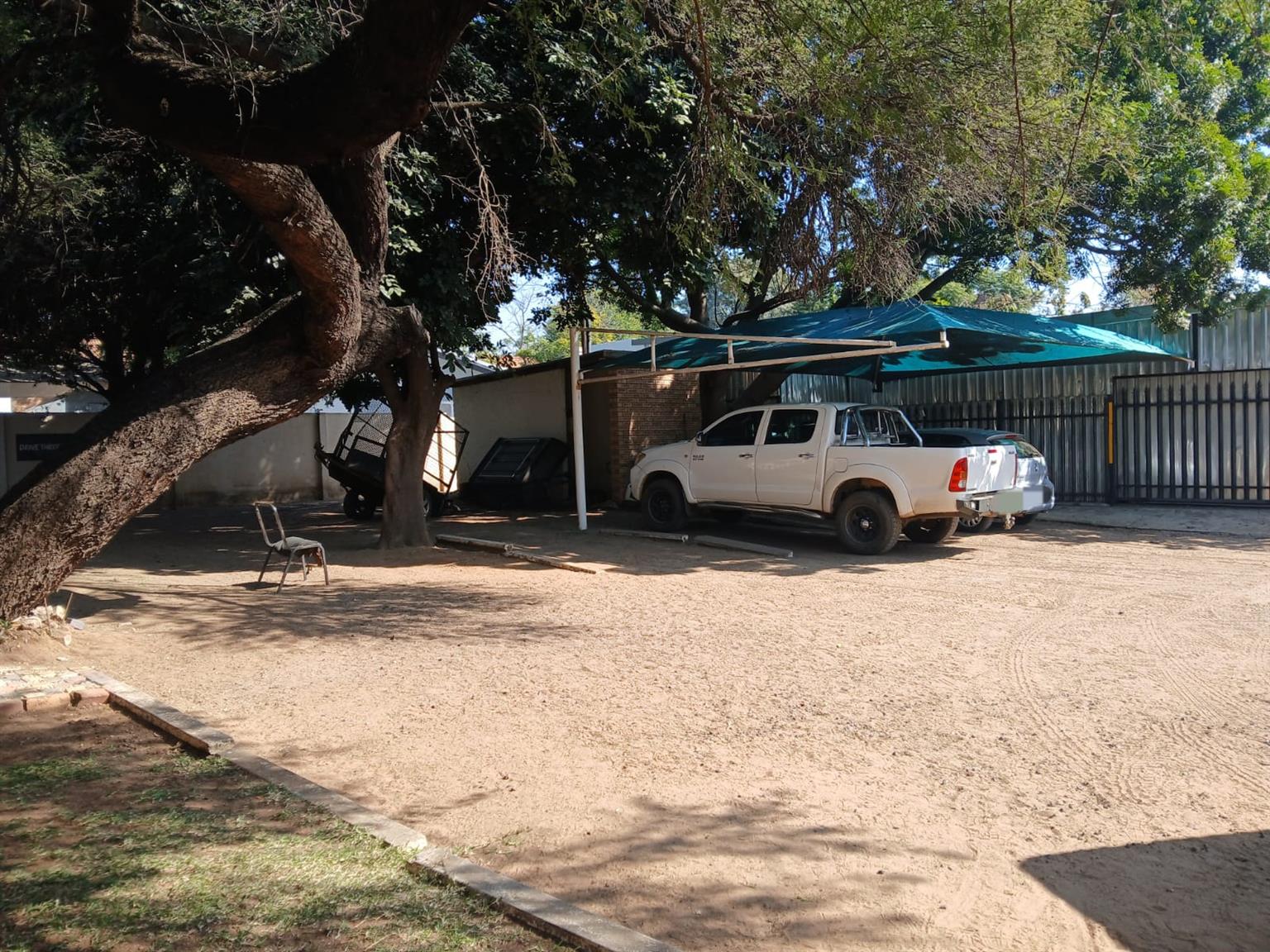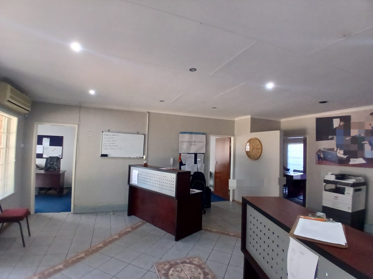 The main building features a spacious reception area that leads seamlessly into multiple offices, a kitchen, and a bathroom. Additional features include shaded parking bays for vehicles and an intercom system at the main entrance for added peace of mind.