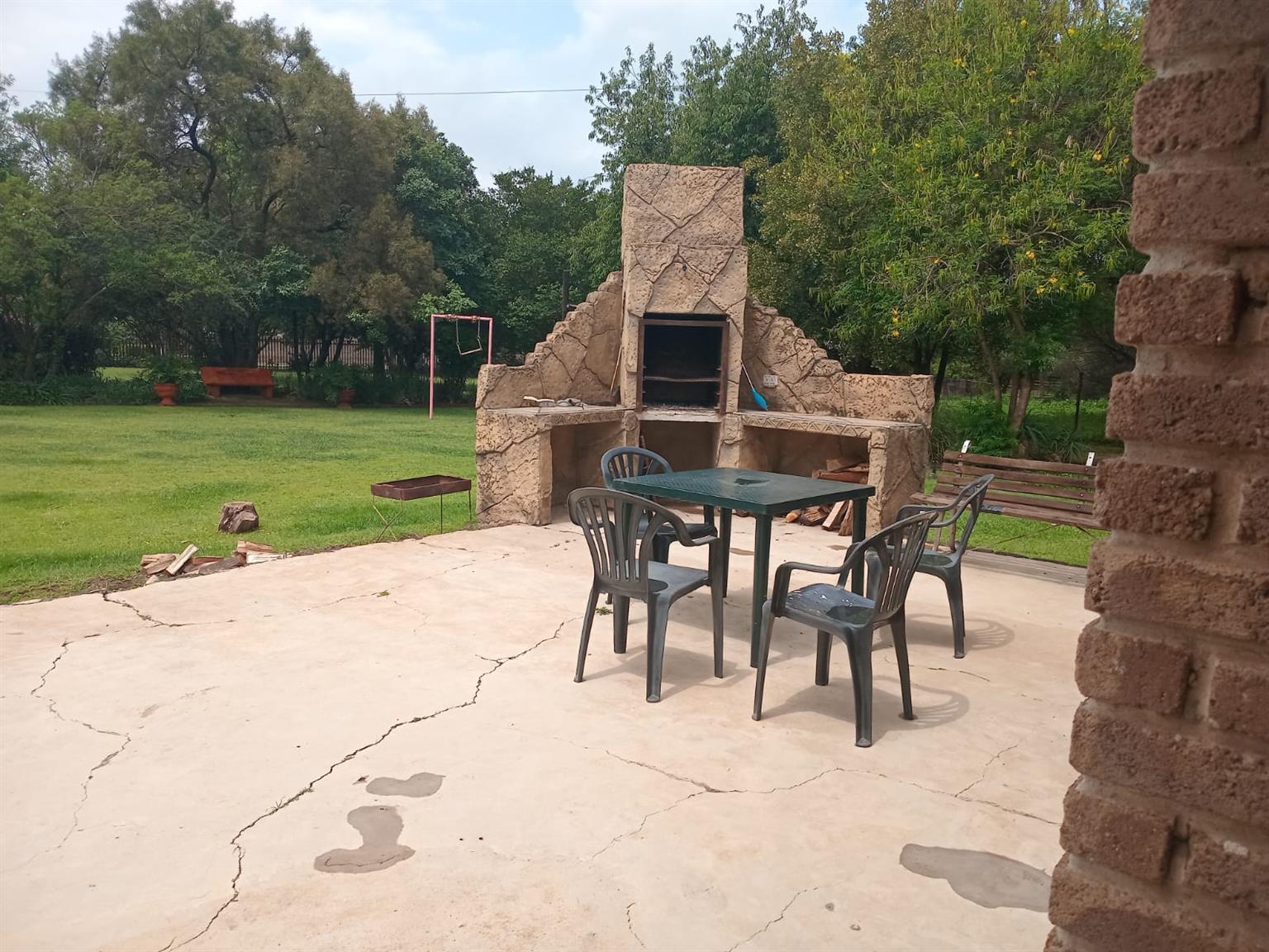 Garage for 4 vehicles, Carport parking for 5 vehicles, 2 x 3x3m storerooms, Garden shed, Wendy house for extra storage, 6x3m livestock pen, Nets for vegetable planting, Water pump, Borehole water supply, Mogale City electricity, Fibre internet ready