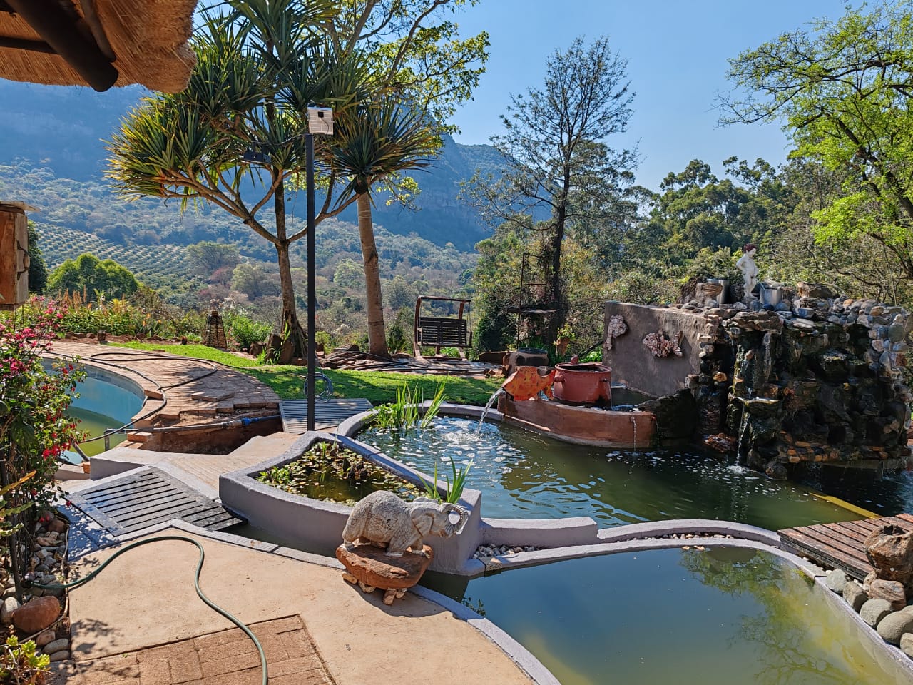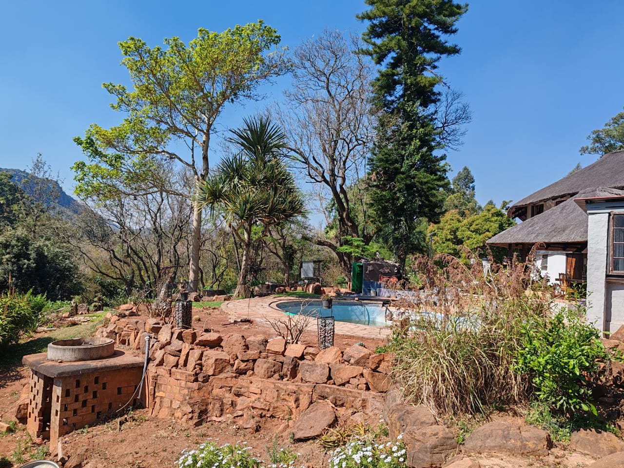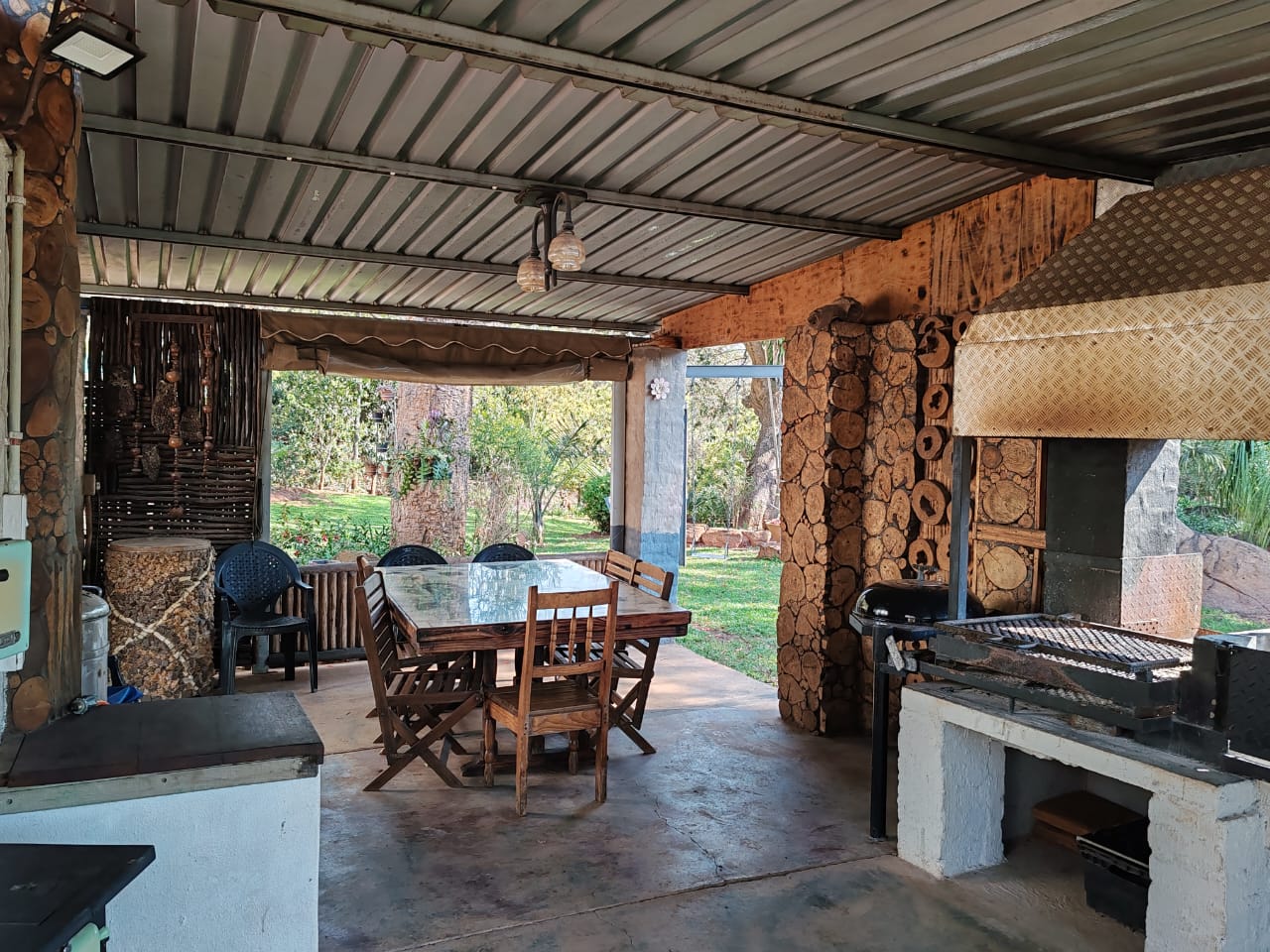 The roofed over braai and entertainment area with its valley view and proximity to the pool.