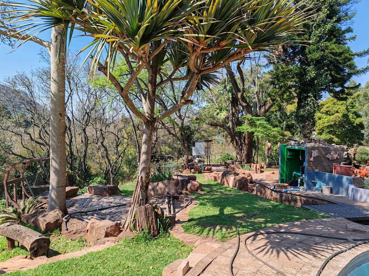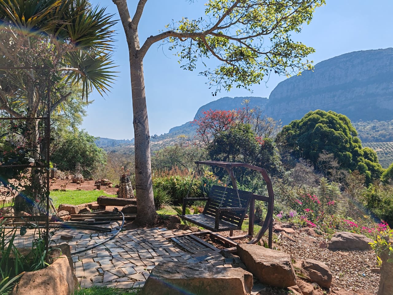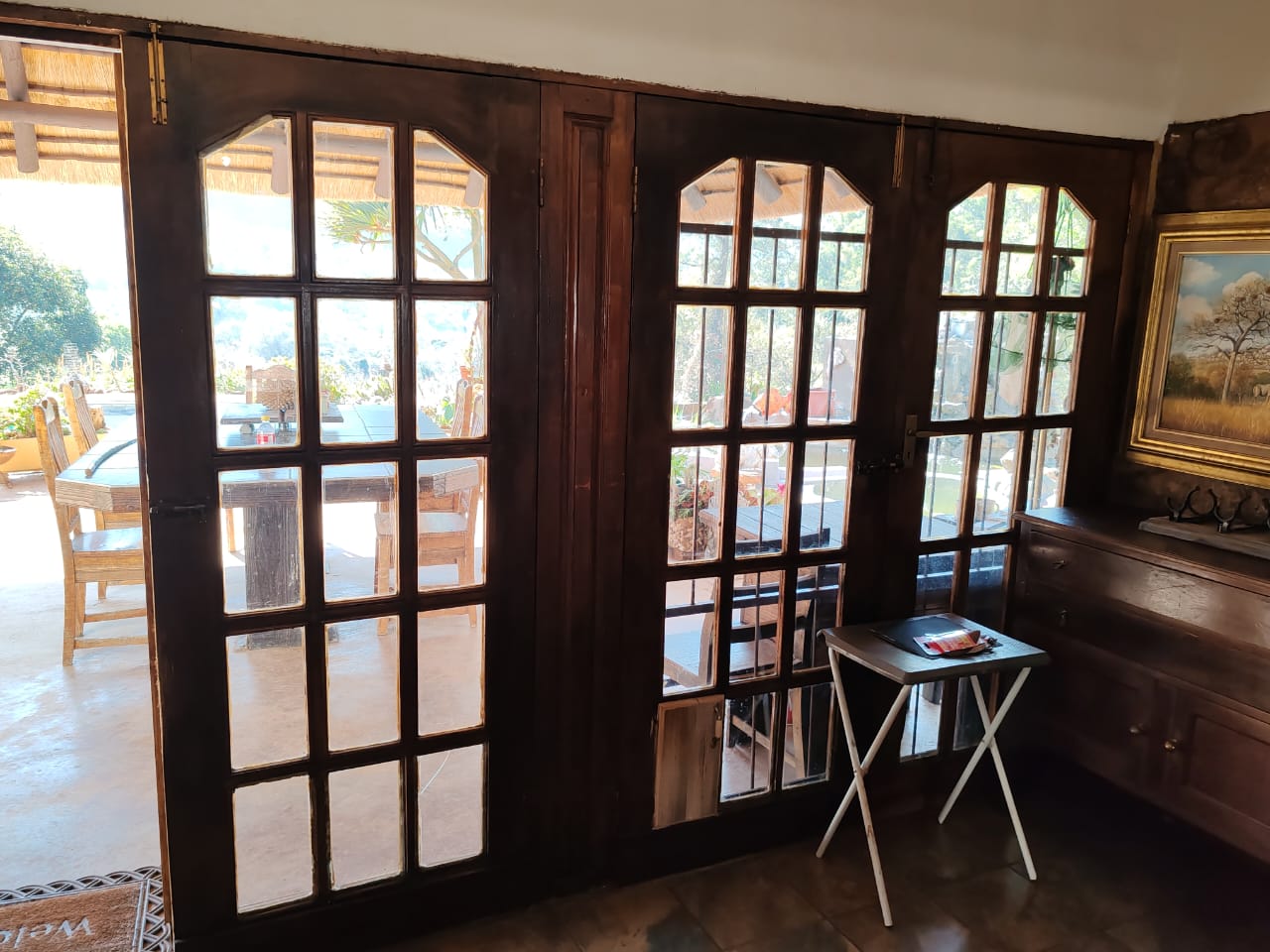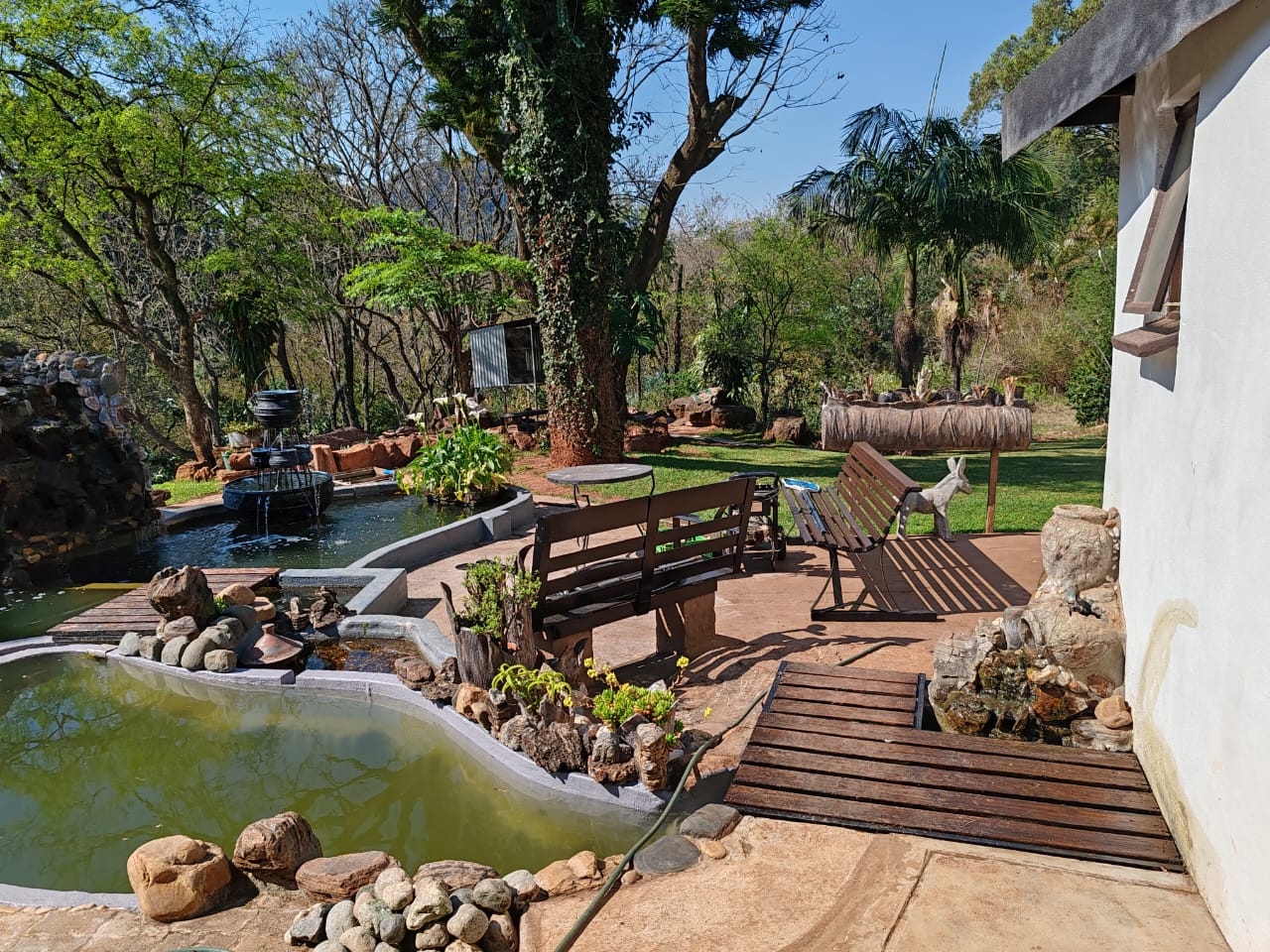 The roofed over braai and entertainment area with its valley view and proximity to the pool.