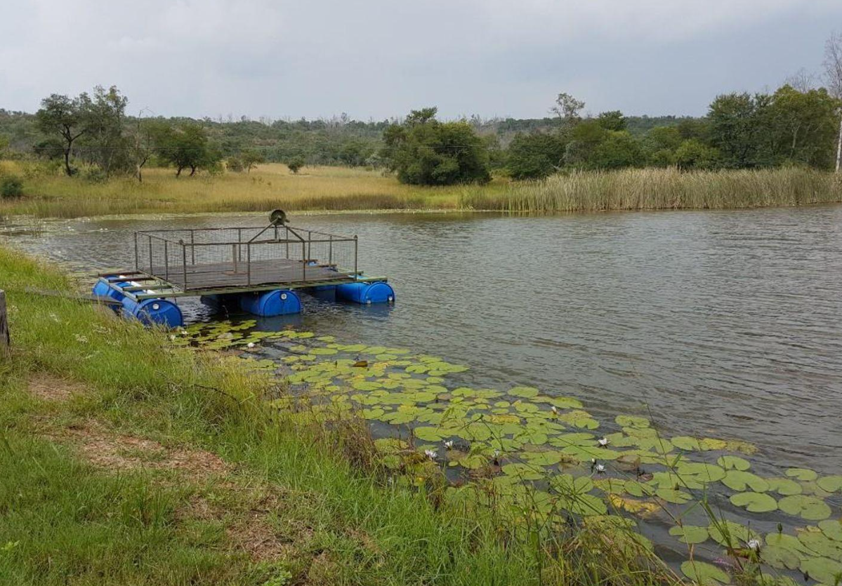 17-hectare pivot irrigation system powered by a gravel dam and 20kW three-phase pump.