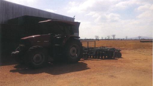 Large tractor and implement shed for secure storage.