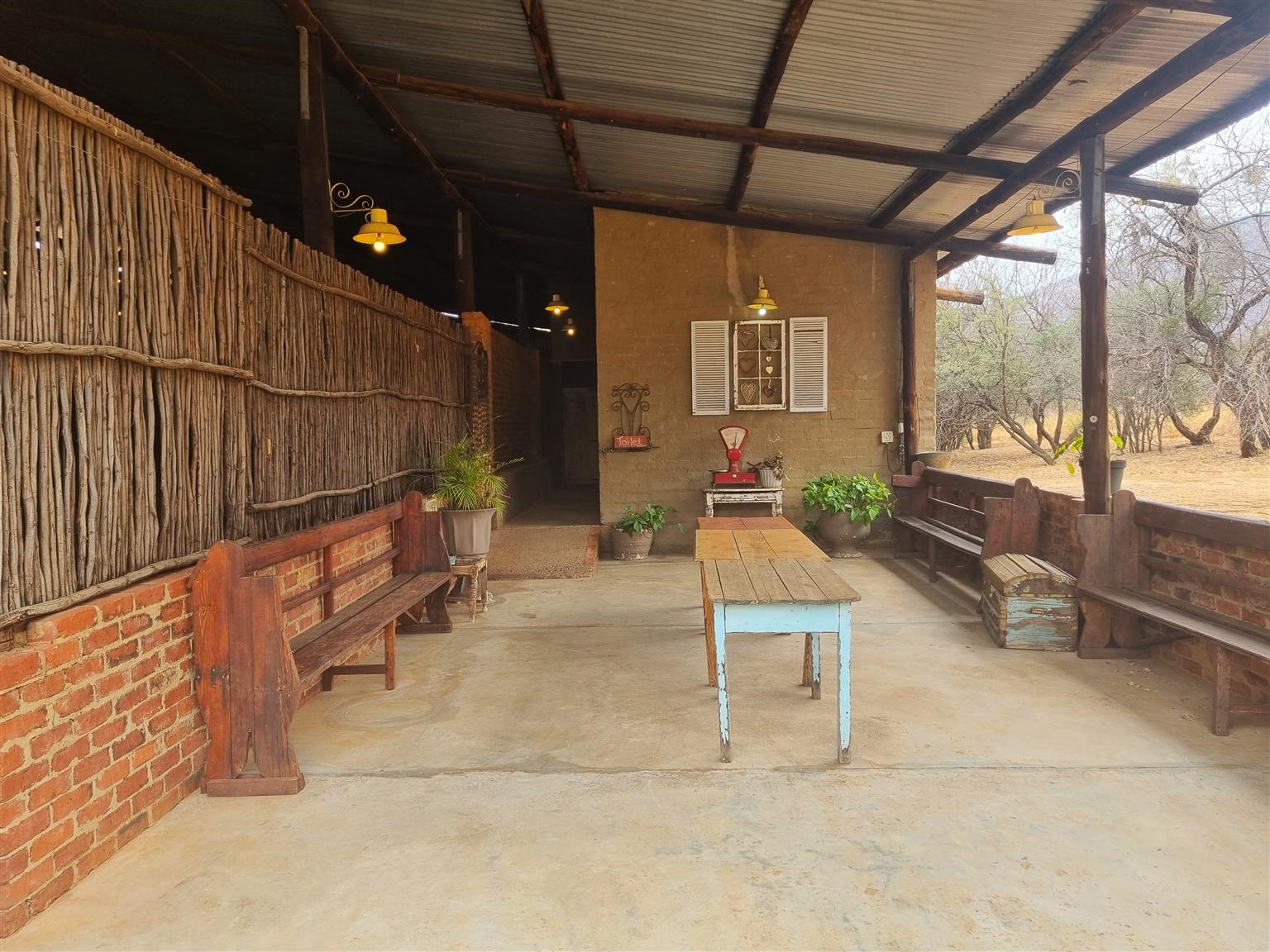 A greywater dam supports irrigation, and the property is rich with wildlife, including kudu, warthog, ibex, and gray duiker. Fruit trees, such as oranges, lemons, figs, and pomegranates, also dot the landscape.