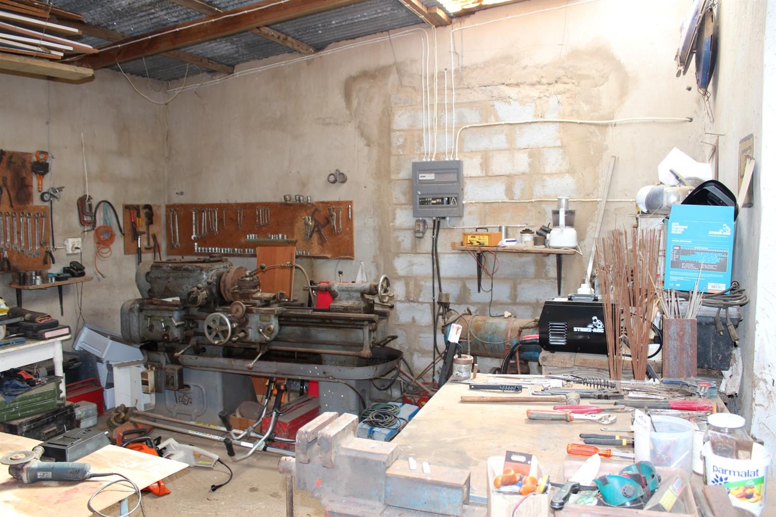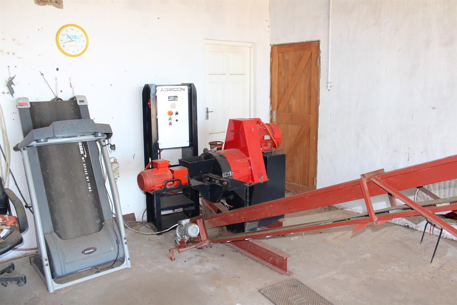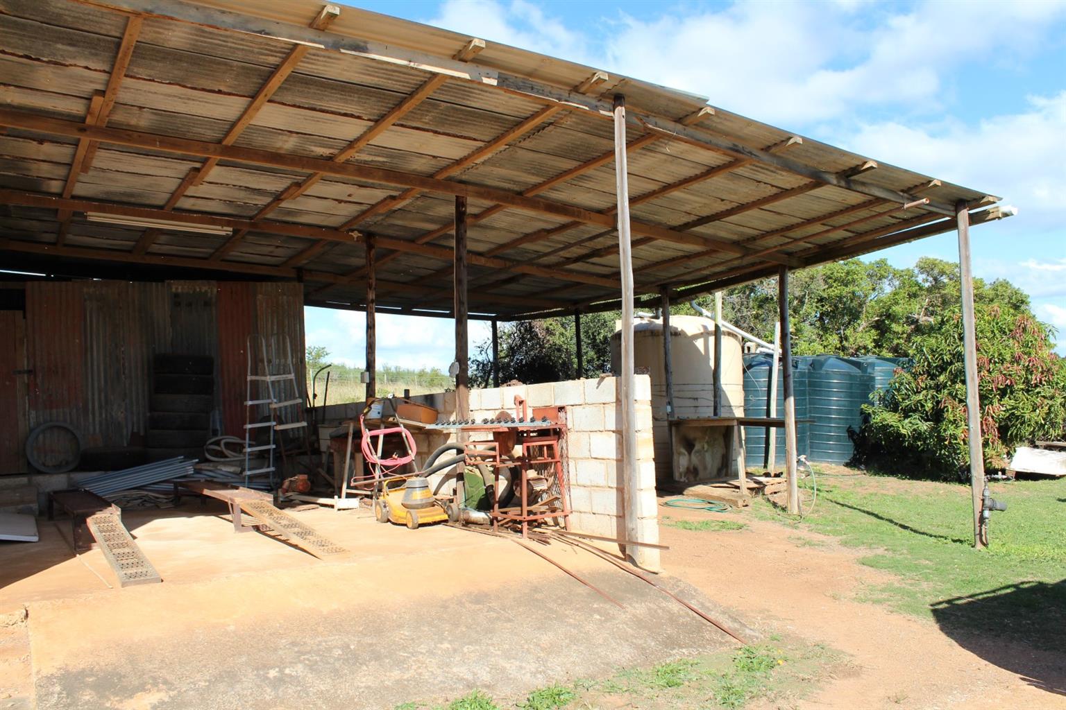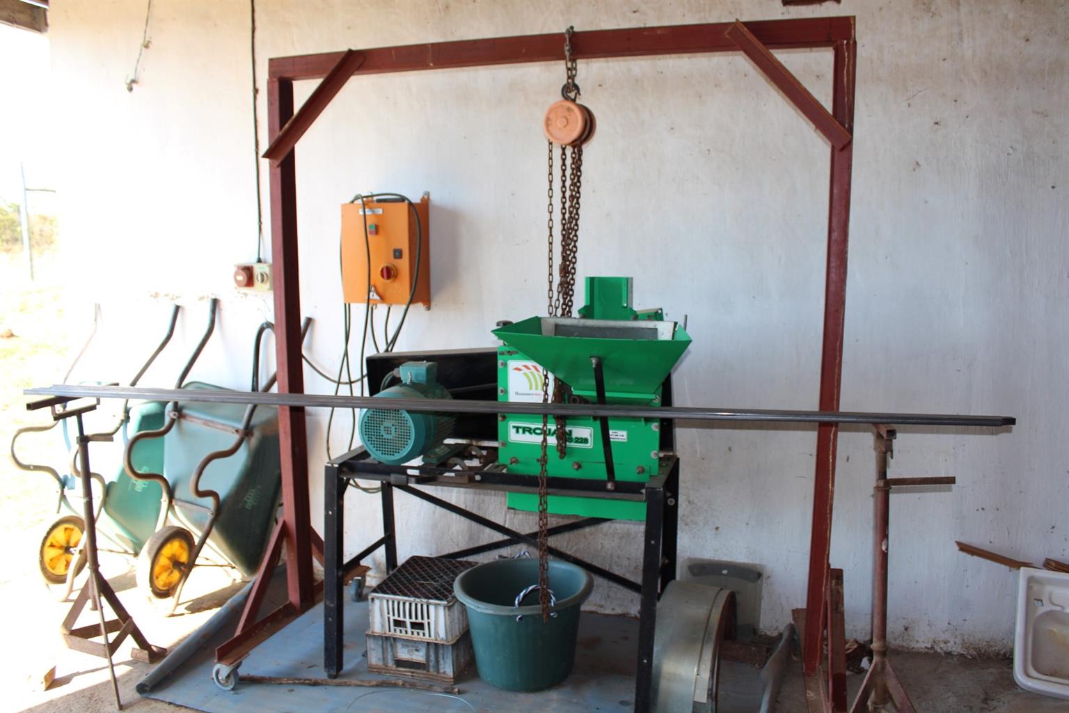 Workshop and shed with pelleting plant used to dry and make animal feed pellets from the tree lucerne.