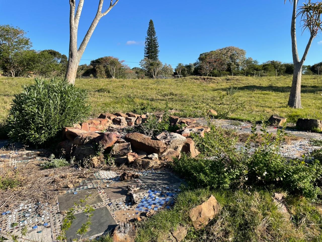 Lovely large plot with loads of character and access from Kings and Elizabeth Road. Beautiful tree aloes and other indigenous flora plus beautiful rocks give this cleared plot so much to work with. It has a natural dam that can also be filled from the borehole (at present without a pump) could create a stunning garden with waterways. The erf is completely fenced, gated and cleared. A lean-to and water tank provides rain water.