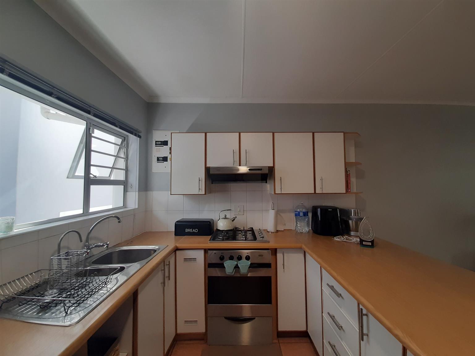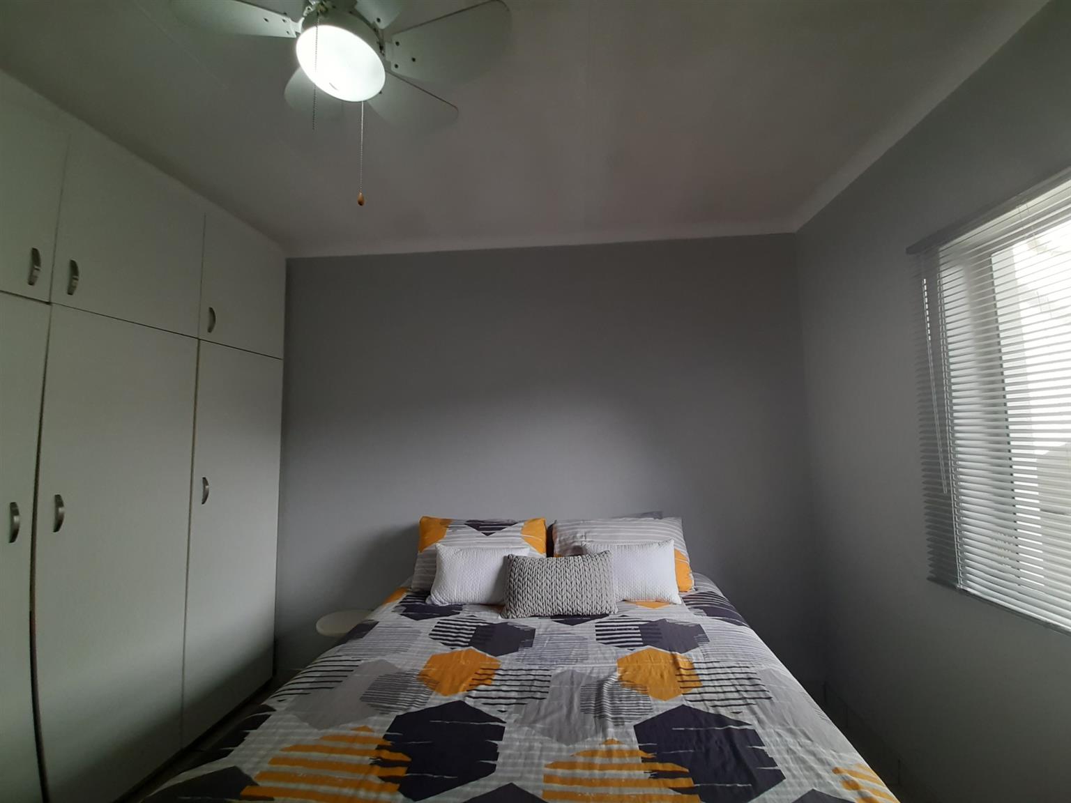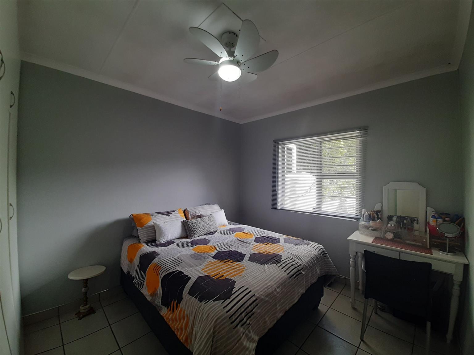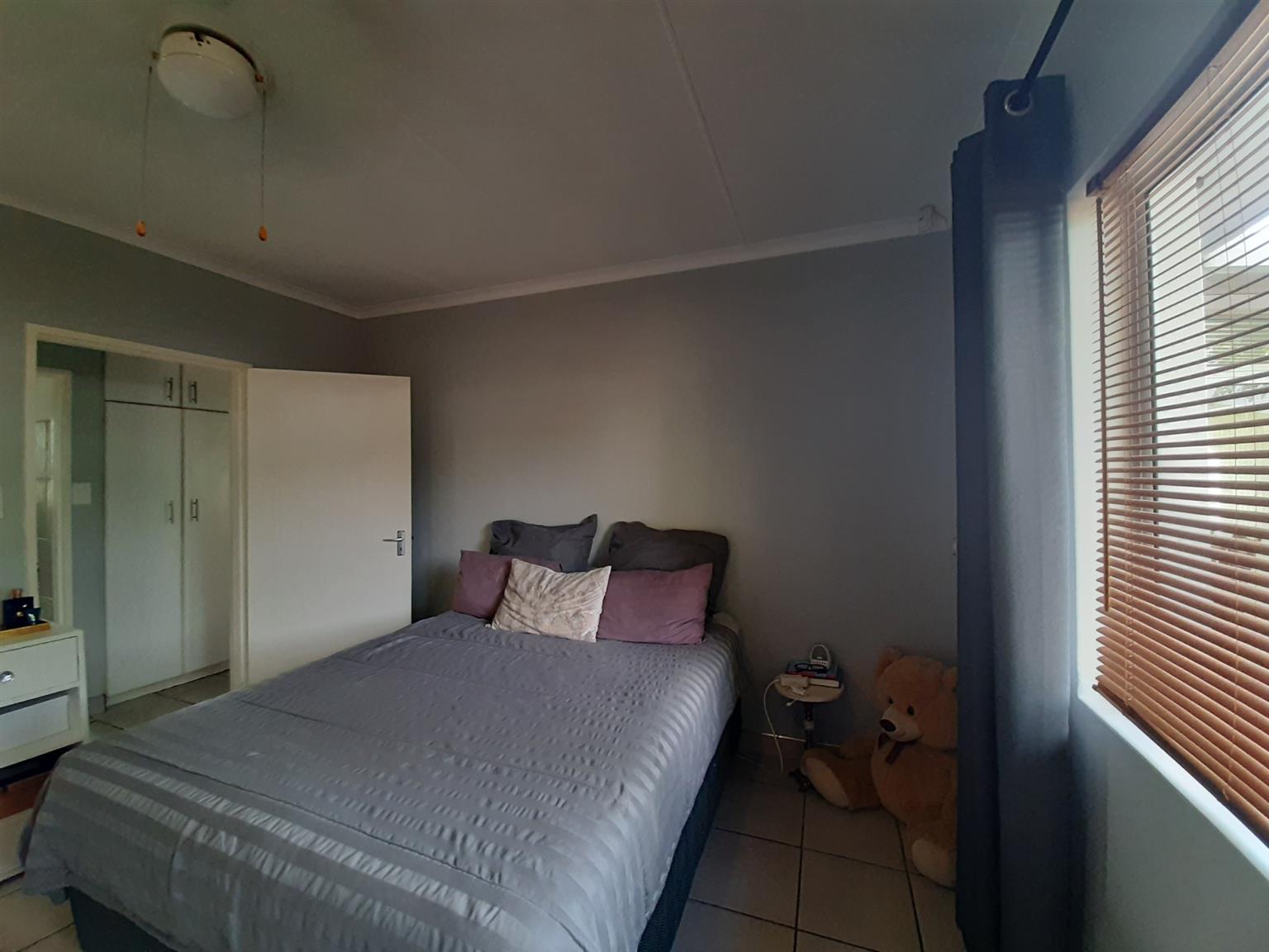 This very neat and modern 2 bedroom unit is located in a well managed and secure complex close to a primary school, shops and main access roads in Abbotsford. The open plan kitchen/lounge is spacious and leads to a lovely entertainment lounge and private back yard. The main bedroom has an en-suite (Shower, basin and toilet) whilst the second bedroom is served by a main bathroom, also with shower, basin and toilet. There are floor tiles, burglar bars and blinds throughout the home and the single garage has a remote controlled door with a loft and access to a courtyard which leads straight into the house. The under cover car port is paved and there is a 750L slimline water tank installed to ensure back up water supply for the small garden in front of the home.