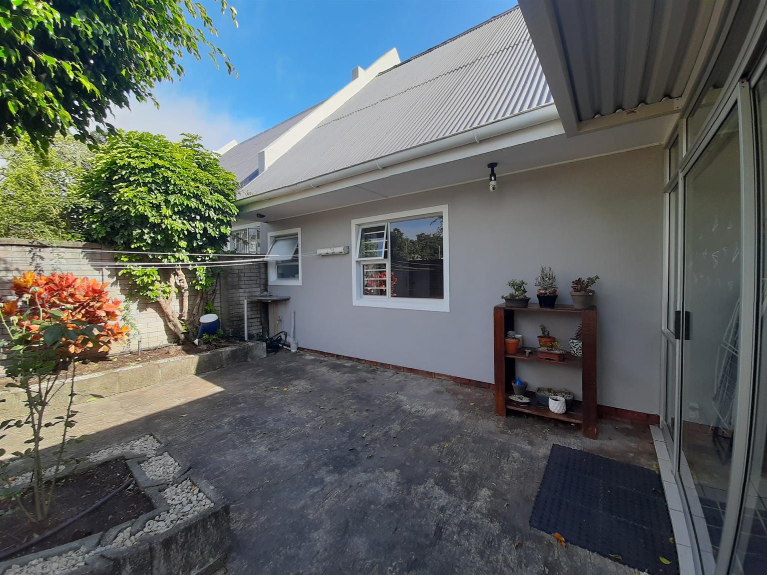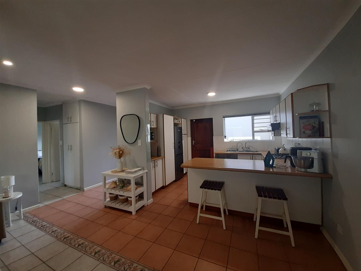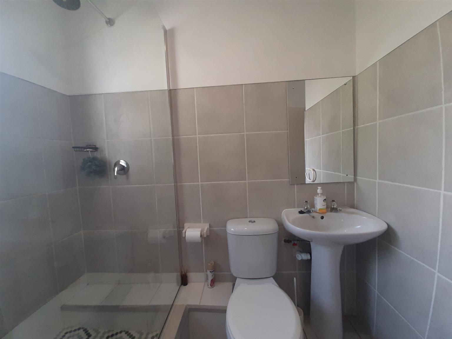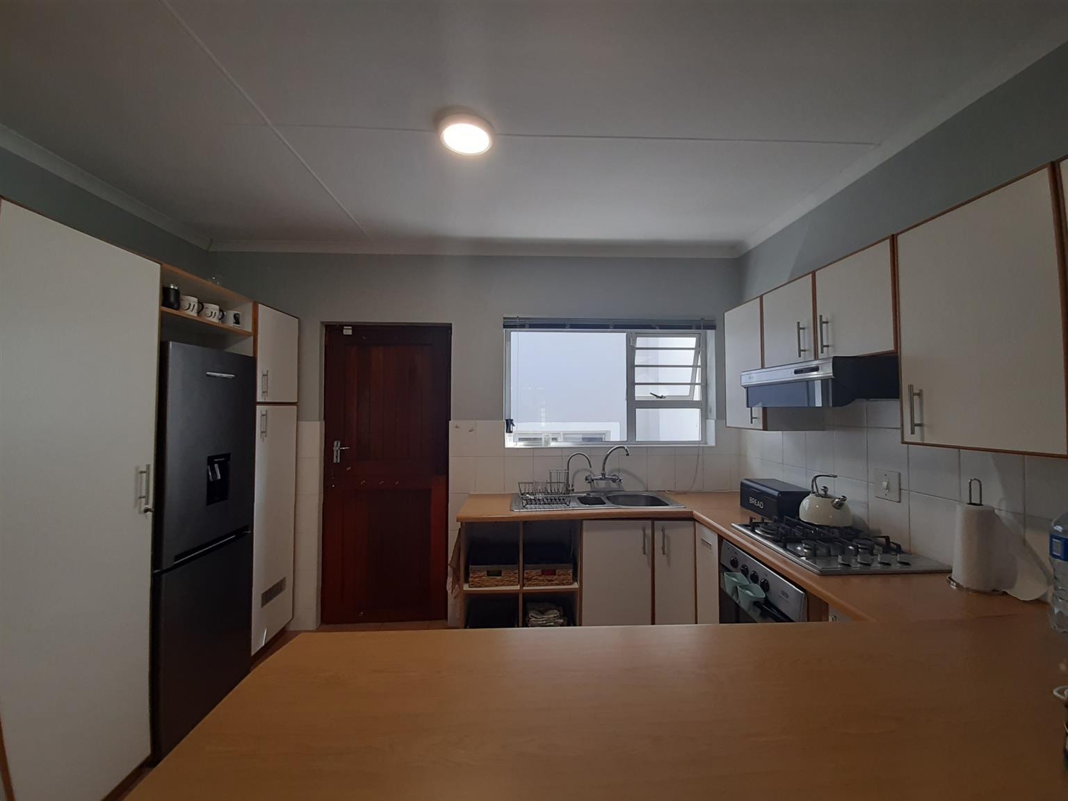 This very neat and modern 2 bedroom unit is located in a well managed and secure complex close to a primary school, shops and main access roads in Abbotsford. The open plan kitchen/lounge is spacious and leads to a lovely entertainment lounge and private back yard. The main bedroom has an en-suite (Shower, basin and toilet) whilst the second bedroom is served by a main bathroom, also with shower, basin and toilet. There are floor tiles, burglar bars and blinds throughout the home and the single garage has a remote controlled door with a loft and access to a courtyard which leads straight into the house. The under cover car port is paved and there is a 750L slimline water tank installed to ensure back up water supply for the small garden in front of the home.