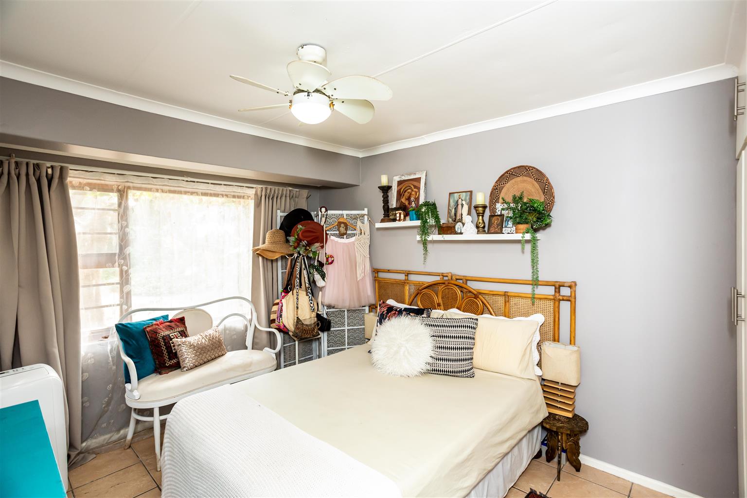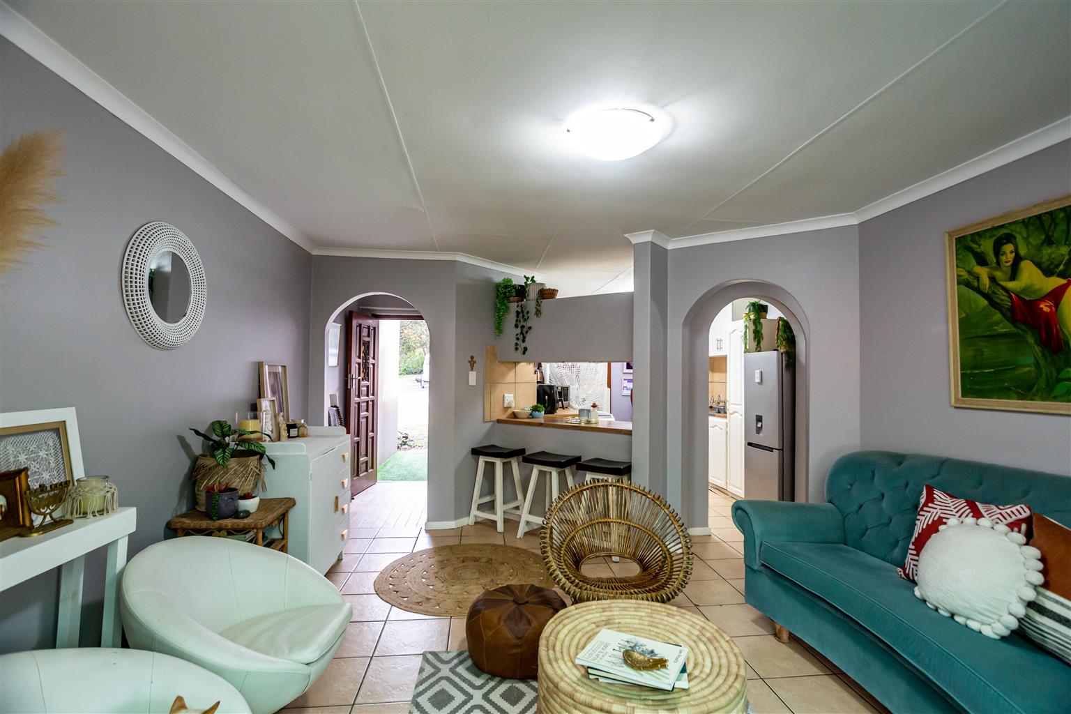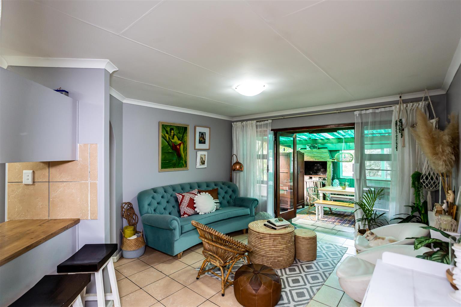 The property offers a cosy lounge just off the open plan kitchen. There is a enclosed area just off the kitchen that could be a small laundry area. The double doors from the lounge open onto a small private patio with a built-in braai and spacious enclosed yard – perfect for the kids to play and fur babies to run.