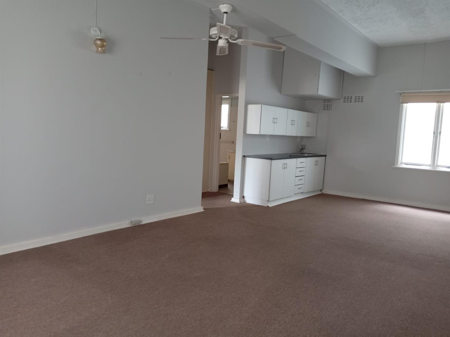 With a lovely large bedroom with cupboards in the alcove between the bedroom and bathroom
