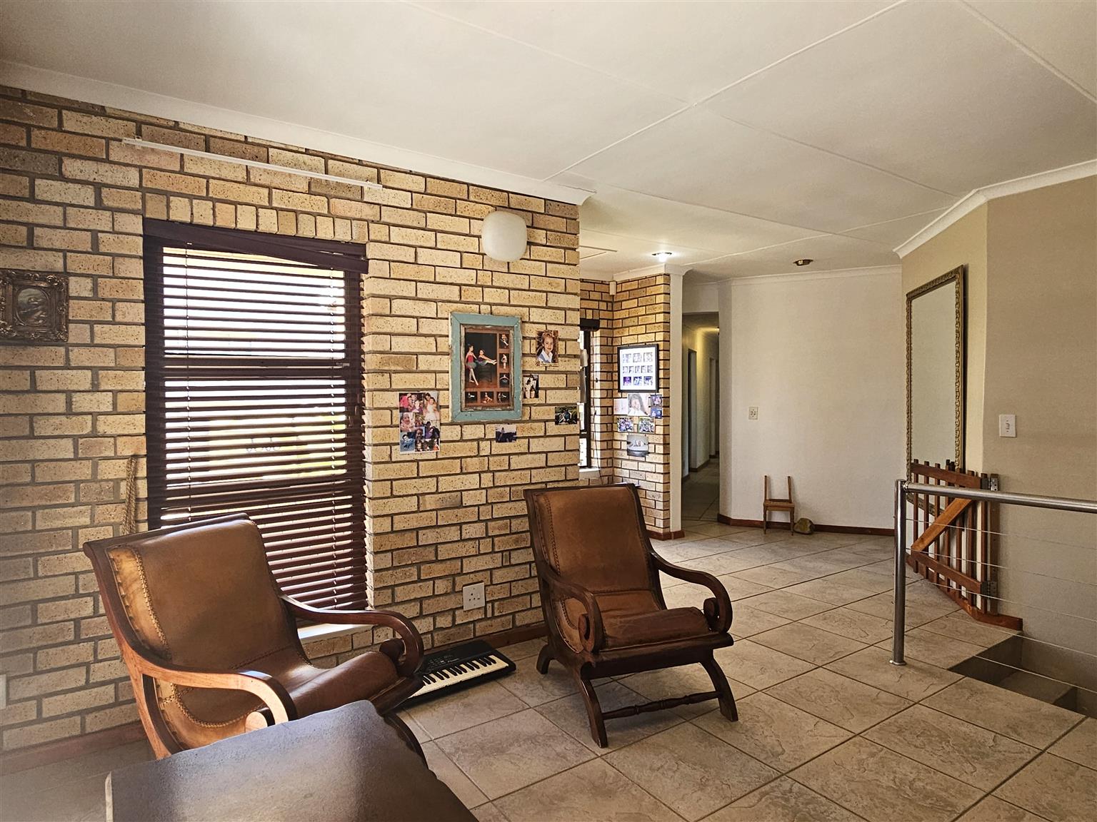 You can enjoy the lovely views from the indoor braai room, or choose the outdoor braai area that looks over the green garden, making it suitable for hosting in any weather. The garages have been changed into office space, but the doors can be put back if garage use is needed. The enclosed backyard includes water tanks for dry seasons, and the alarm system with beams adds helpful security.