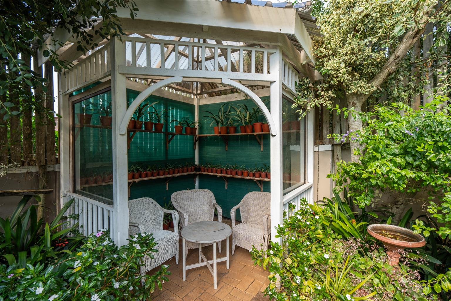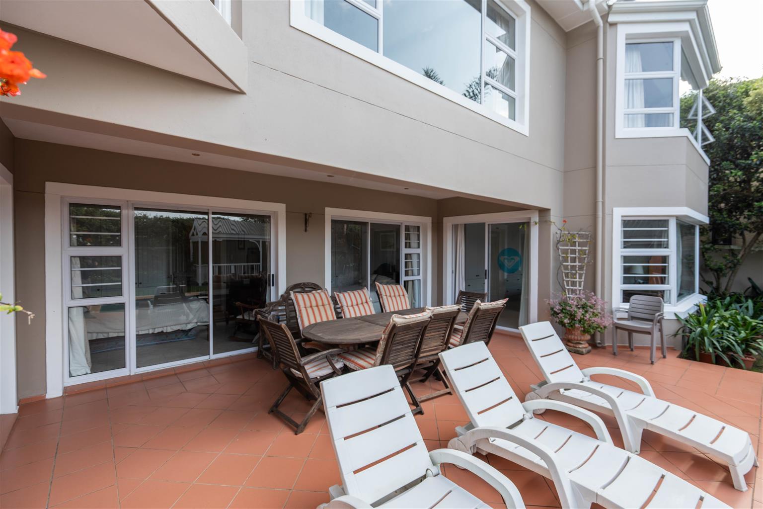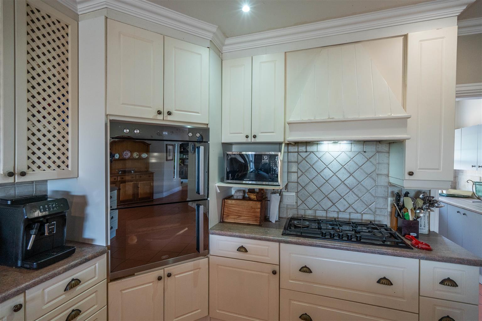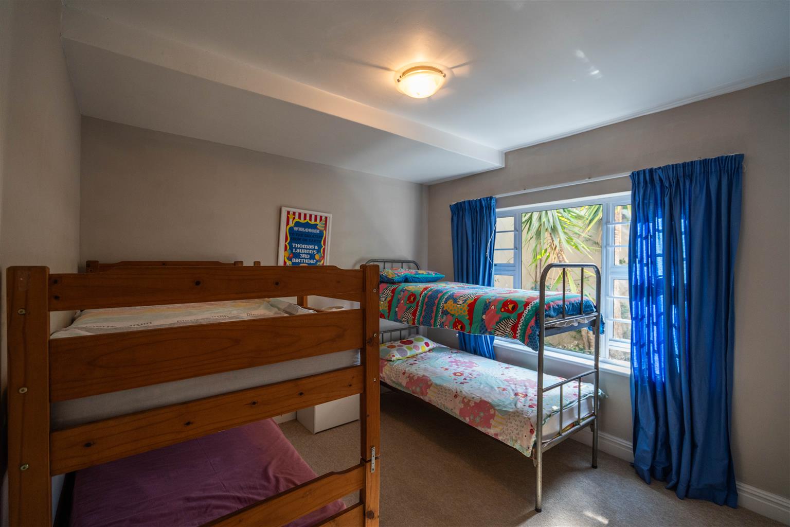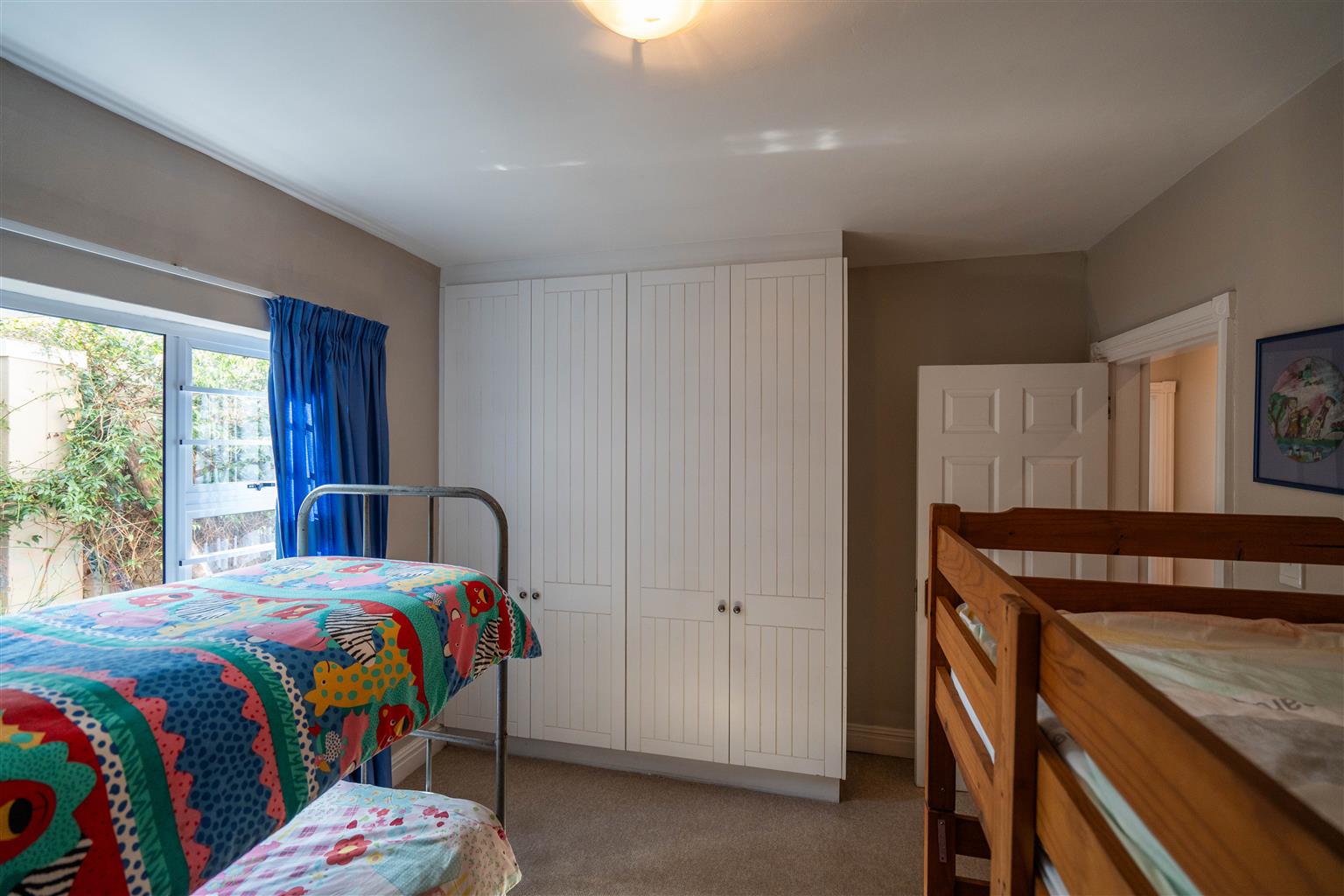 Upstairs there is a large bedroom en- suite. Downstairs there are four bedrooms and two bathrooms. There is an entertainment lounge and bar with built in braai leading out onto the patio area and pool. An ideal storeroom tucked away next to the bar area. An ideal spot for a cellar. The garden is filled with clivias. The open patio area is an ideal spot to sit while your children are playing in the pool.