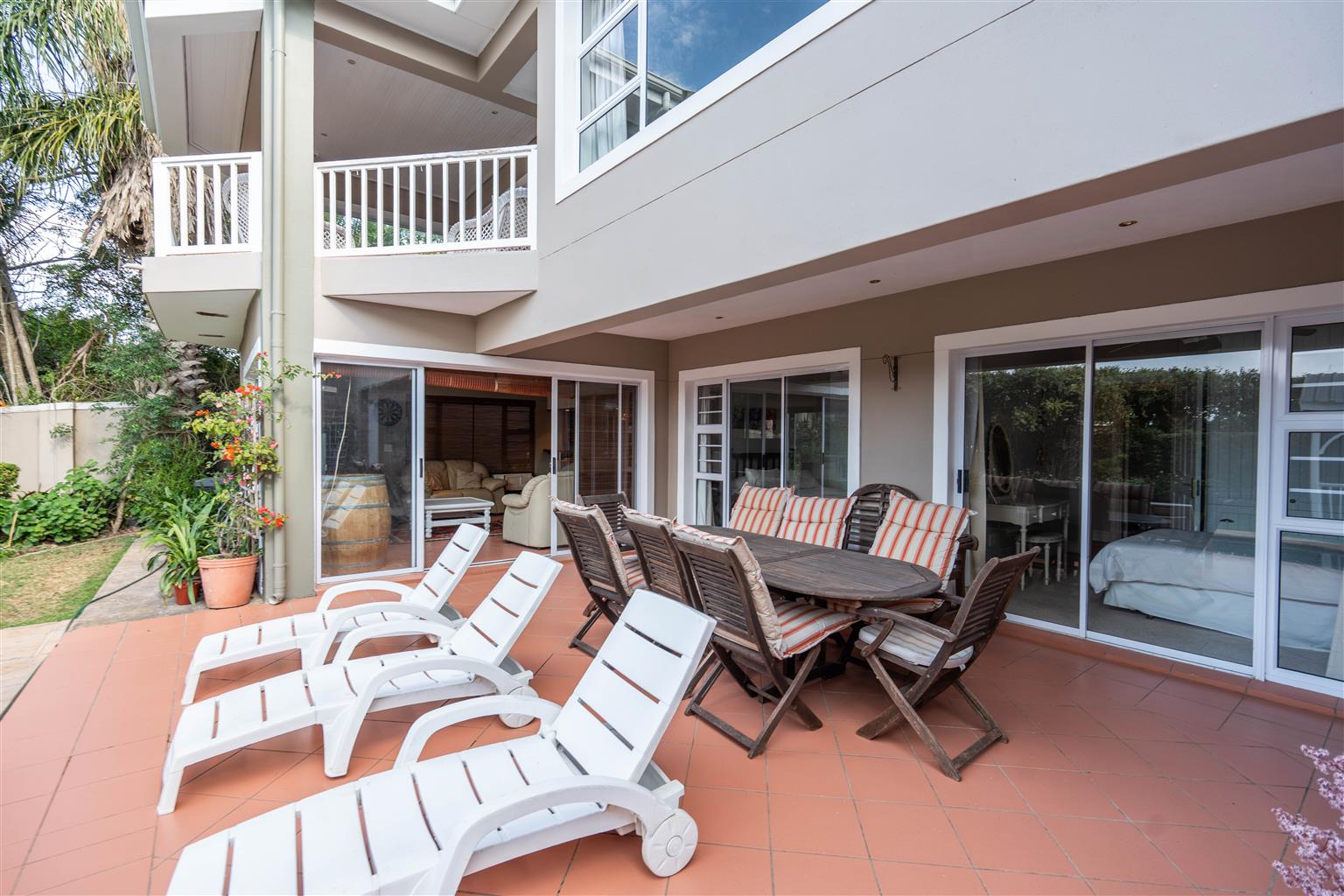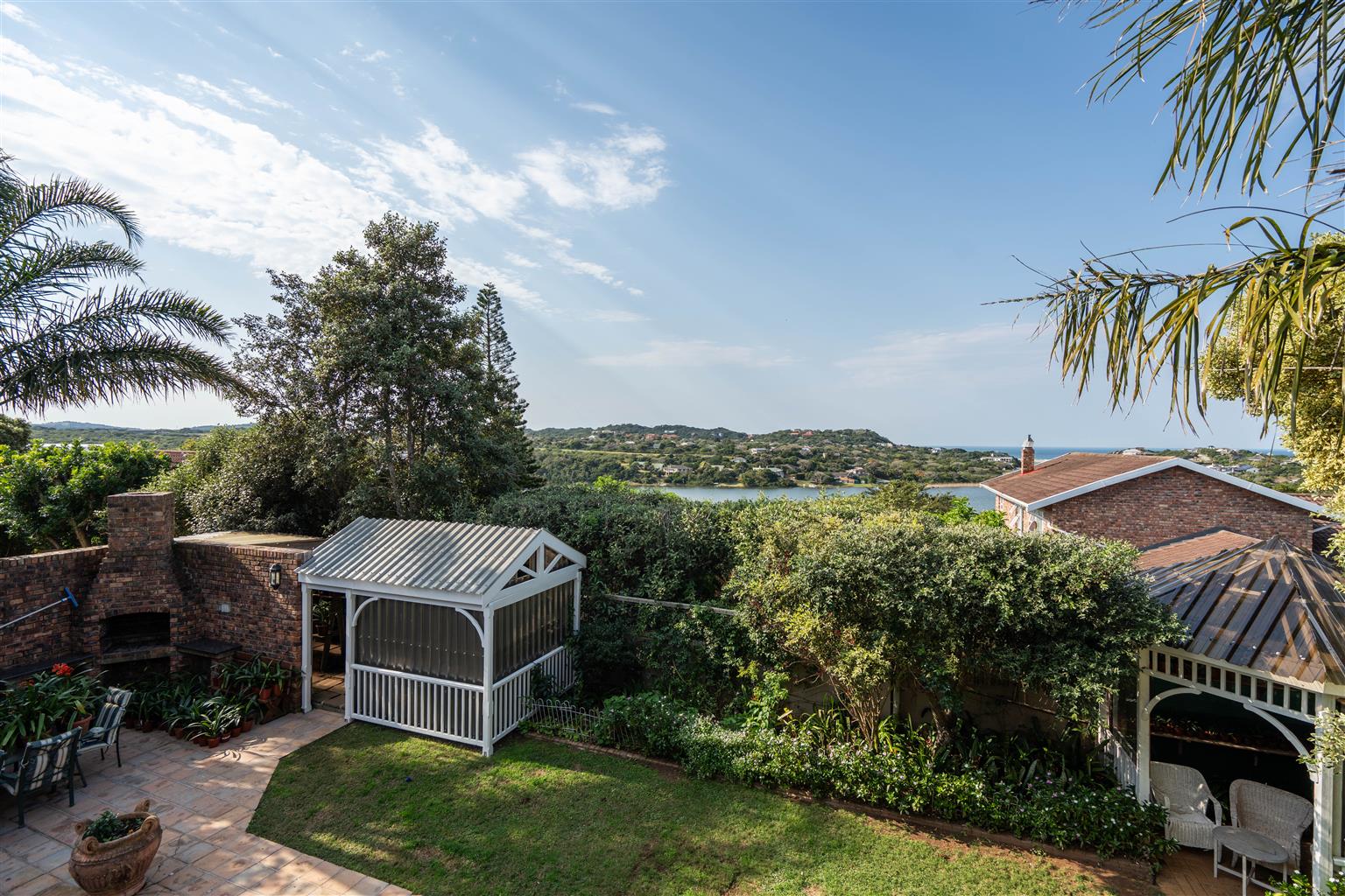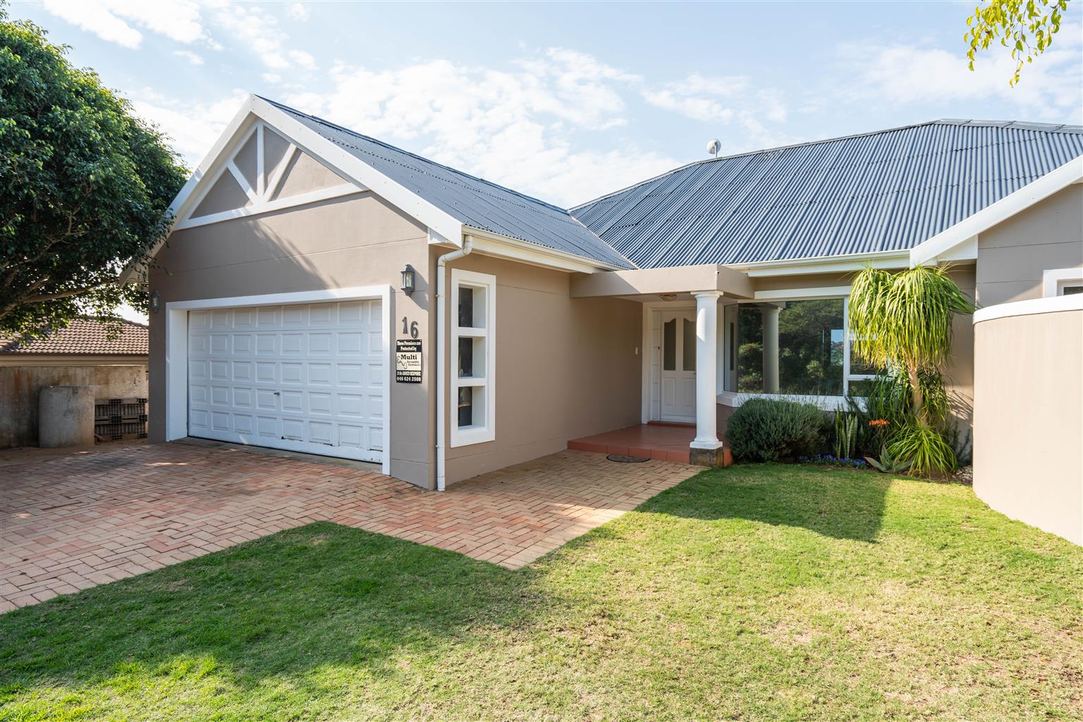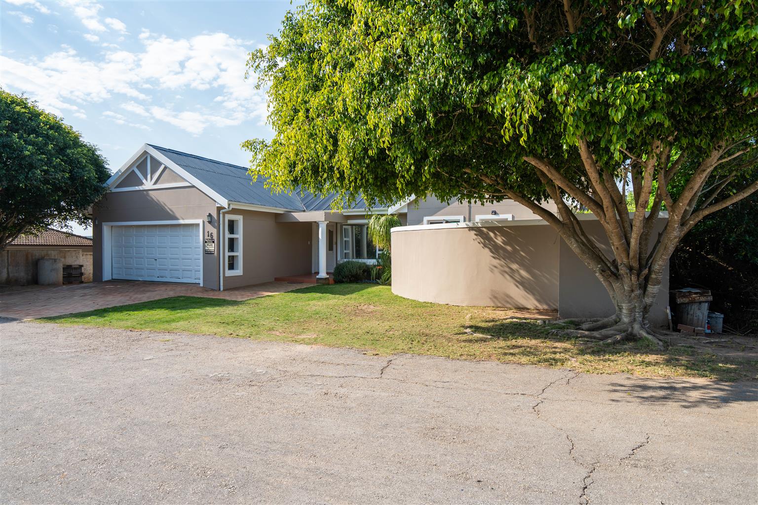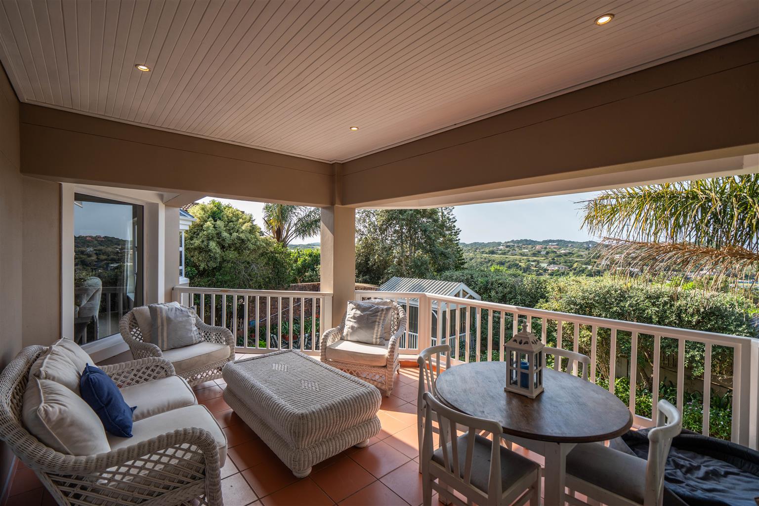 A hallway with dining room on the right of the entrance, leading into a comfortable lounge, superb views. Next to the lounge an open plan TV lounge, kitchen and scullery with enclosed washline area at the back of the home. The TV lounge leads onto a balcony with views of the beautiful garden and pool. A fireplace in the lounge and TV area, perfect for chilly evenings. The double garage leads onto the top floor landing, easily accessible.