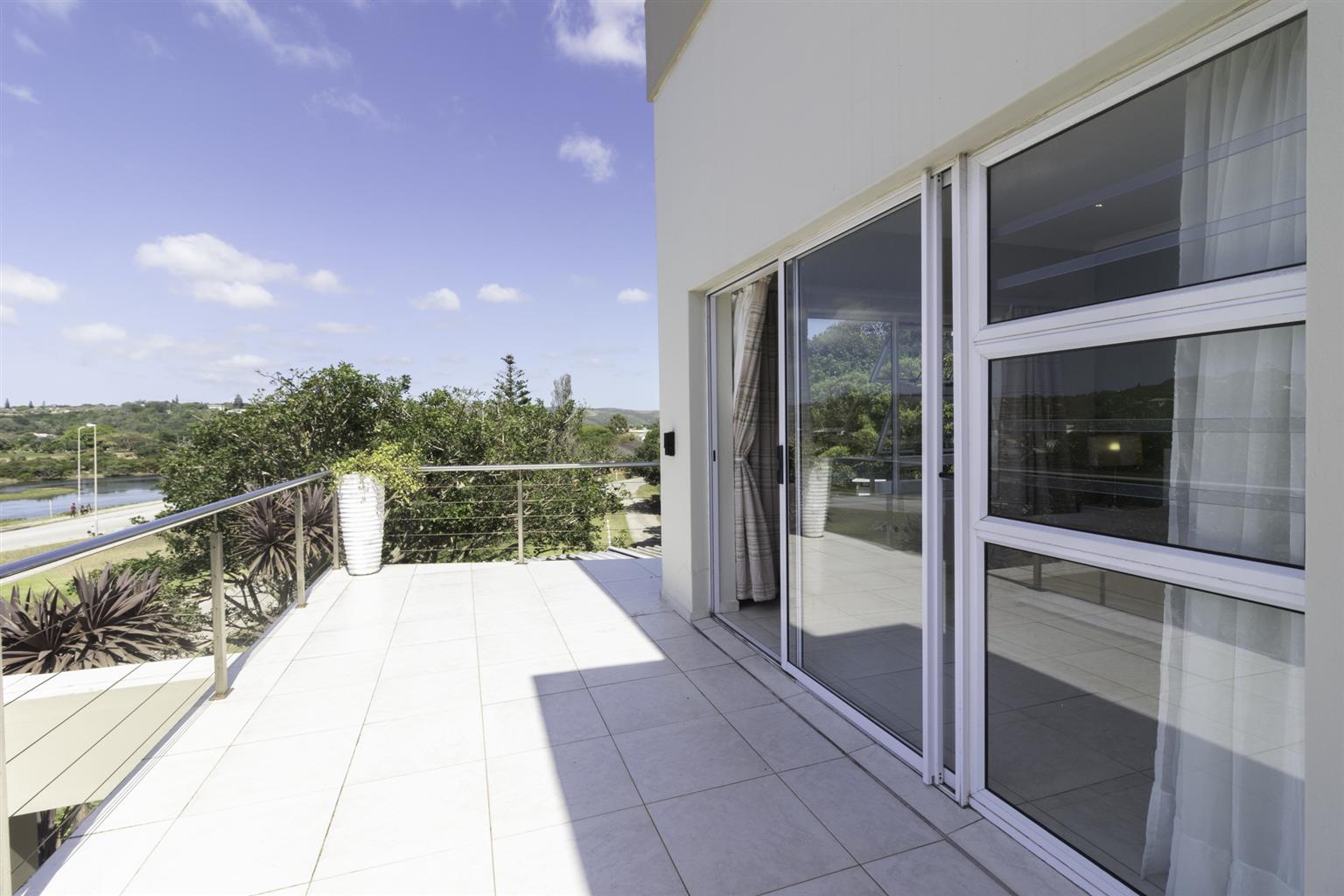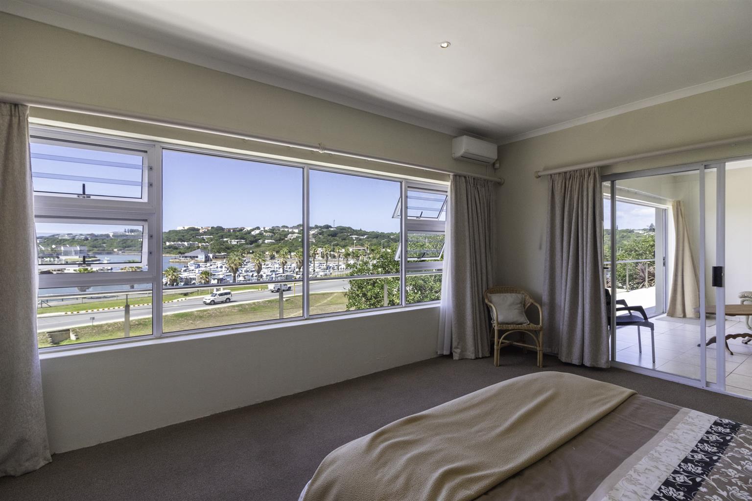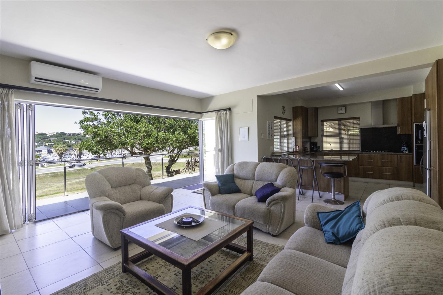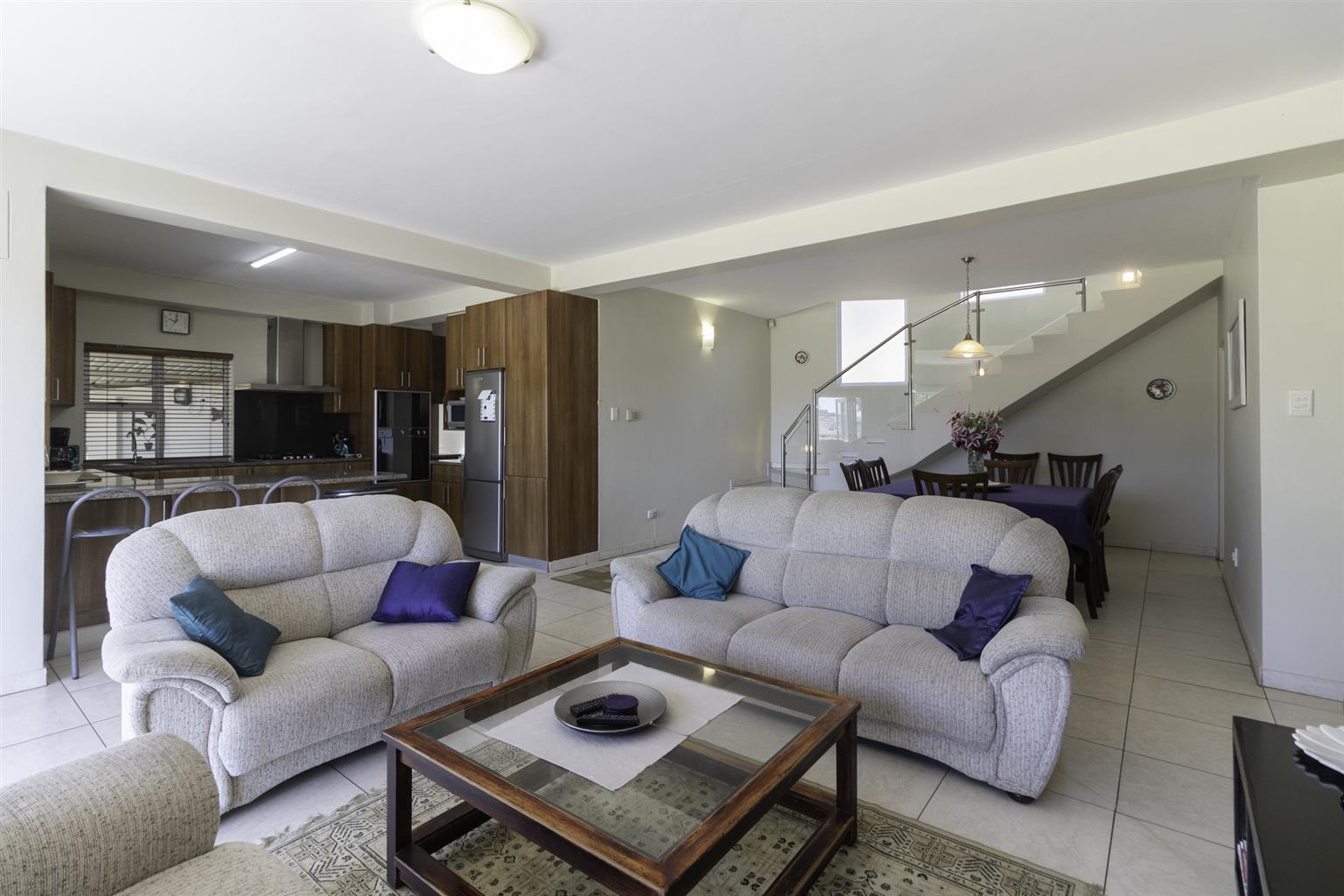 Perched above the Small Boat Harbour, Kowie River, and the sea, this modern multi-level home offers both style and practicality. The middle level is the heart of the home, featuring a spacious lounge and a well appointed kitchen. The lounge opens via stack doors to a balcony with sweeping views, while the kitchen leads to a covered patio and built-in braai area—perfect for entertaining. This level also includes a comfortable en suite bedroom. Upstairs, two generously sized family bedrooms each feature their own en suite bathroom, providing privacy and convenience, with a lounge and open patio separating the two. On the lower level, a fourth en suite bedroom adds flexibility for guests or extended family. A double garage ensures secure parking for two vehicles, while a lock-up storeroom and an additional utility room provide ample storage options. Modern conveniences include 6 solar panels, an inverter with battery backup, a solar geyser, and water tanks to ensure reliability during municipal outages. A grey water tank is situated to one corner of the garden, and can be used for garden use. Security includes an alarm system and an automated gate. The fully enclosed yard is pet-friendly, offering peace of mind for families with pets. This property combines contemporary living with exceptional views—an ideal home for those who appreciate comfort and convenience.