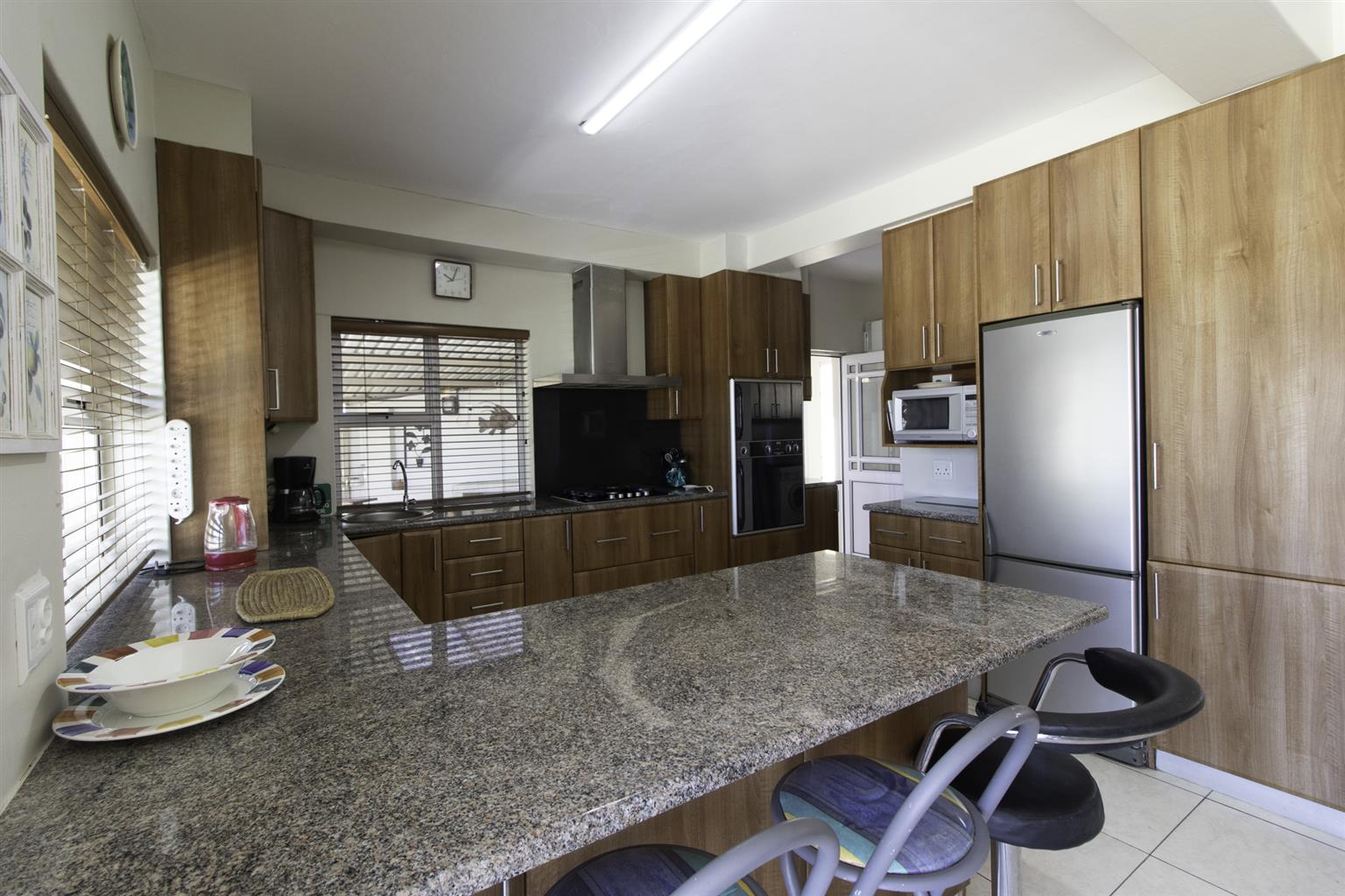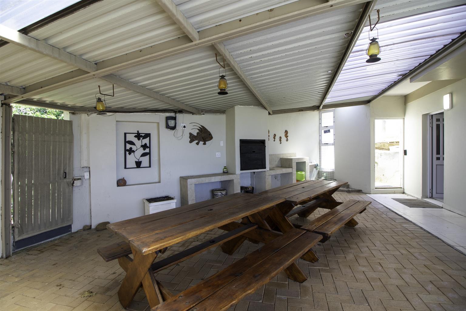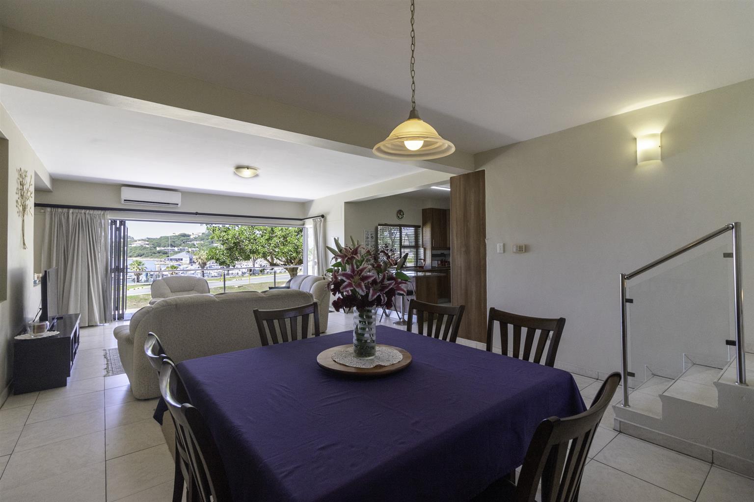 Perched above the Small Boat Harbour, Kowie River, and the sea, this modern multi-level home offers both style and practicality. The middle level is the heart of the home, featuring a spacious lounge and a well appointed kitchen. The lounge opens via stack doors to a balcony with sweeping views, while the kitchen leads to a covered patio and built-in braai area—perfect for entertaining. This level also includes a comfortable en suite bedroom. Upstairs, two generously sized family bedrooms each feature their own en suite bathroom, providing privacy and convenience, with a lounge and open patio separating the two. On the lower level, a fourth en suite bedroom adds flexibility for guests or extended family. A double garage ensures secure parking for two vehicles, while a lock-up storeroom and an additional utility room provide ample storage options. Modern conveniences include 6 solar panels, an inverter with battery backup, a solar geyser, and water tanks to ensure reliability during municipal outages. A grey water tank is situated to one corner of the garden, and can be used for garden use. Security includes an alarm system and an automated gate. The fully enclosed yard is pet-friendly, offering peace of mind for families with pets. This property combines contemporary living with exceptional views—an ideal home for those who appreciate comfort and convenience.