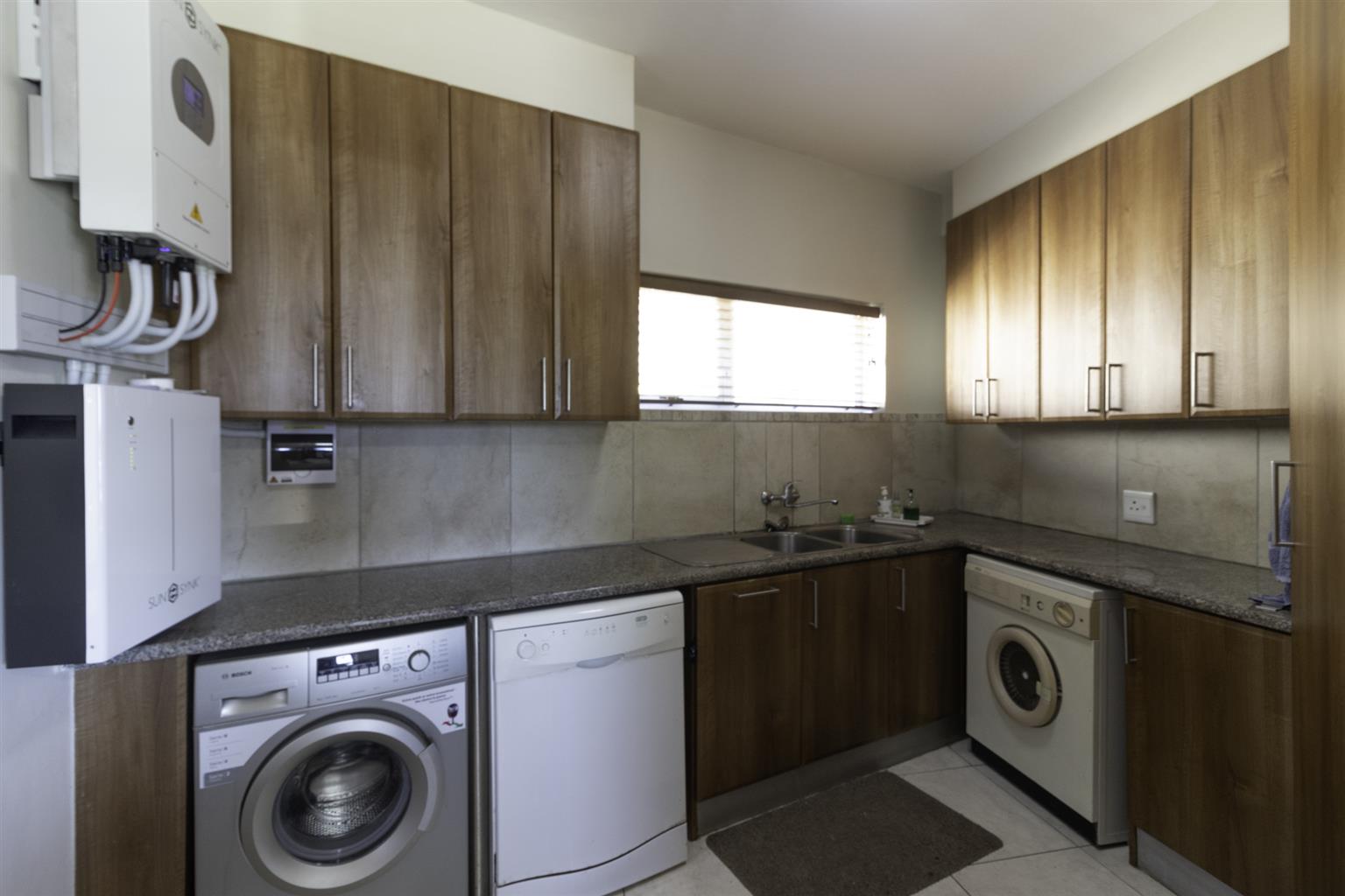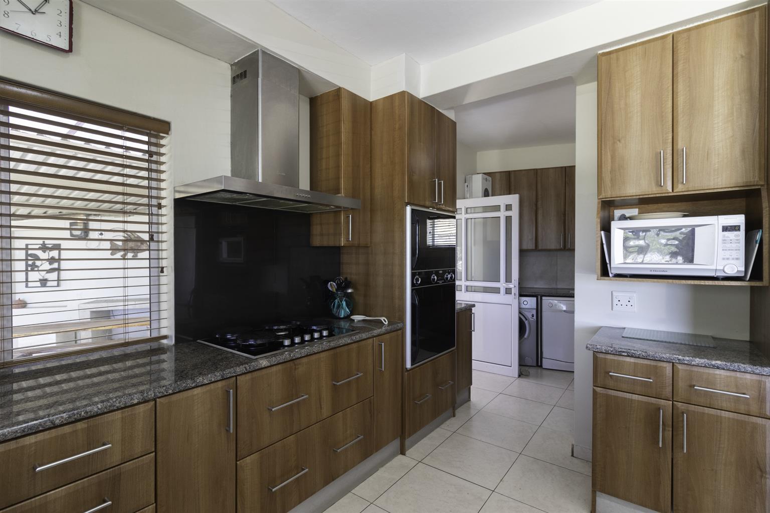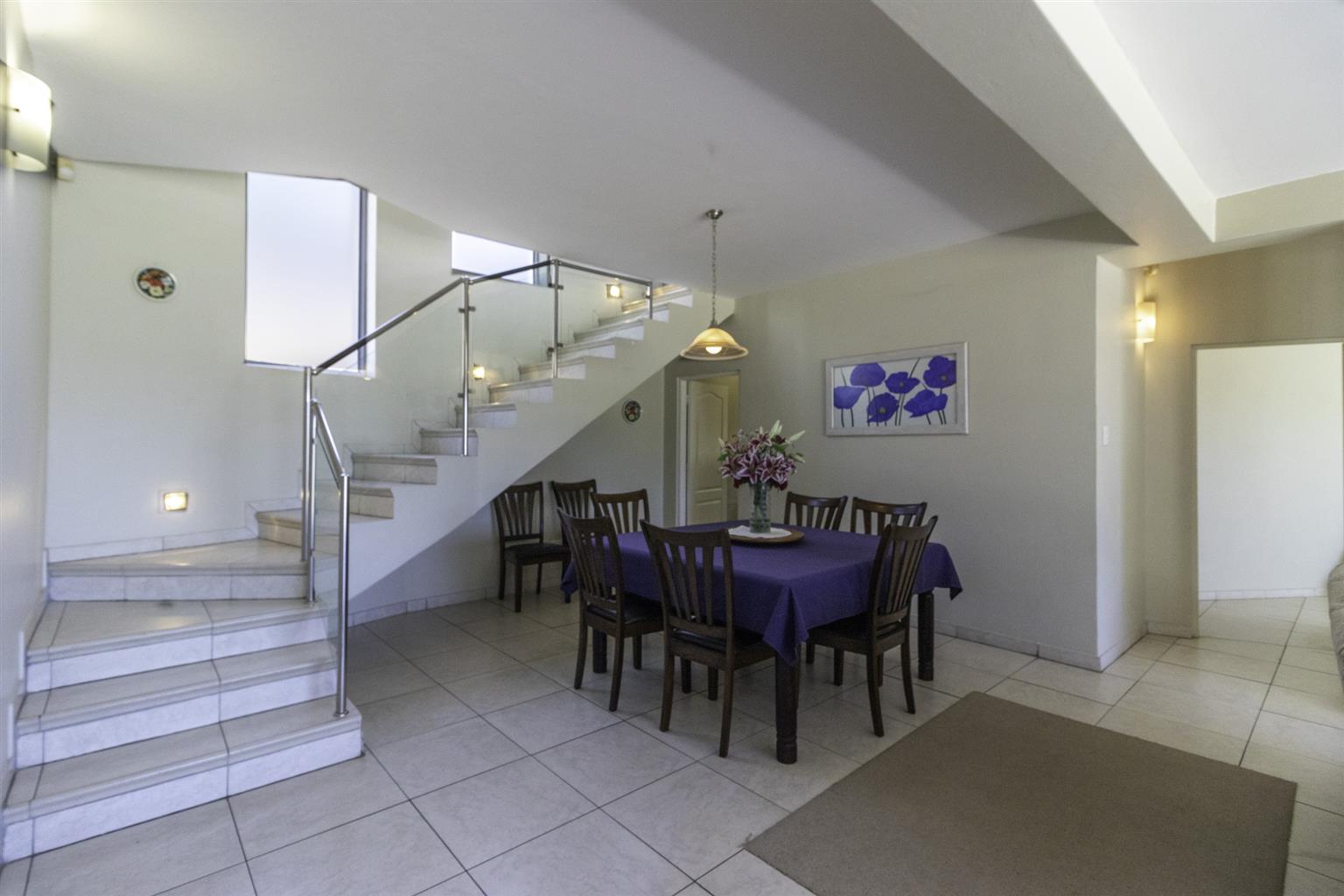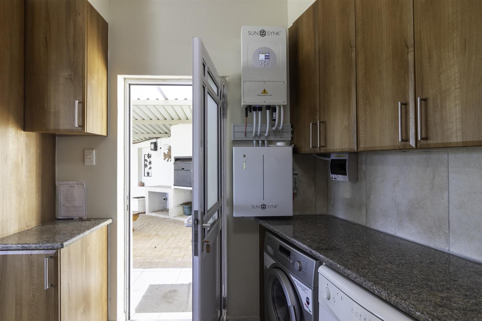 Perched above the Small Boat Harbour, Kowie River, and the sea, this modern multi-level home offers both style and practicality. The middle level is the heart of the home, featuring a spacious lounge and a well appointed kitchen. The lounge opens via stack doors to a balcony with sweeping views, while the kitchen leads to a covered patio and built-in braai area—perfect for entertaining. This level also includes a comfortable en suite bedroom. Upstairs, two generously sized family bedrooms each feature their own en suite bathroom, providing privacy and convenience, with a lounge and open patio separating the two. On the lower level, a fourth en suite bedroom adds flexibility for guests or extended family. A double garage ensures secure parking for two vehicles, while a lock-up storeroom and an additional utility room provide ample storage options. Modern conveniences include 6 solar panels, an inverter with battery backup, a solar geyser, and water tanks to ensure reliability during municipal outages. A grey water tank is situated to one corner of the garden, and can be used for garden use. Security includes an alarm system and an automated gate. The fully enclosed yard is pet-friendly, offering peace of mind for families with pets. This property combines contemporary living with exceptional views—an ideal home for those who appreciate comfort and convenience.