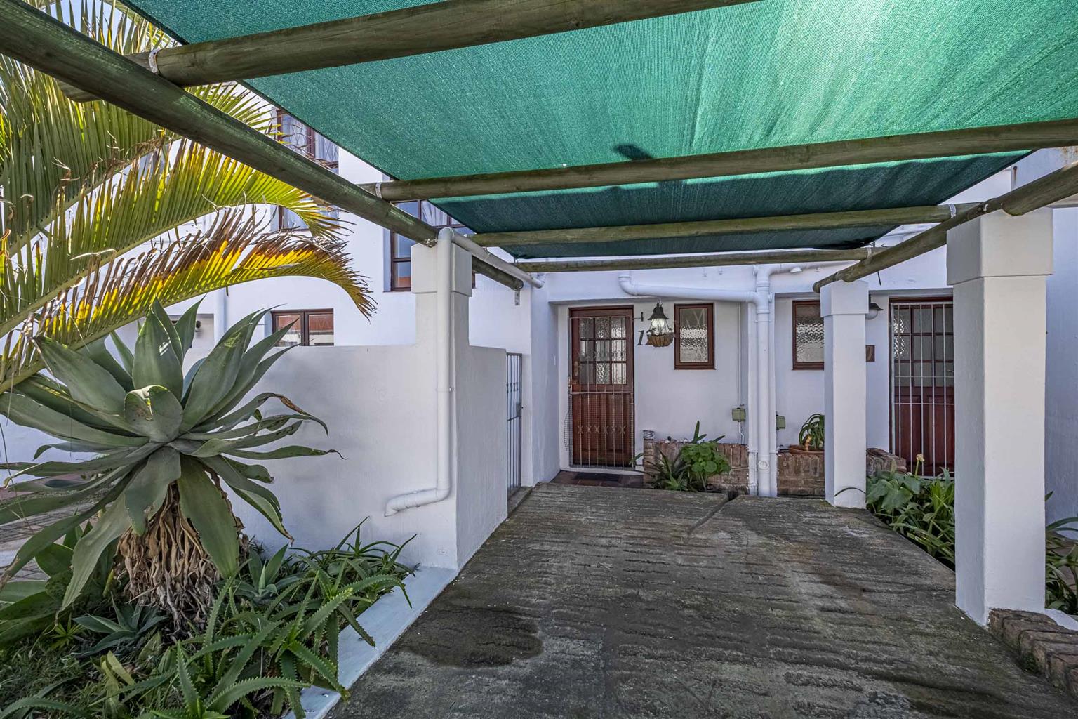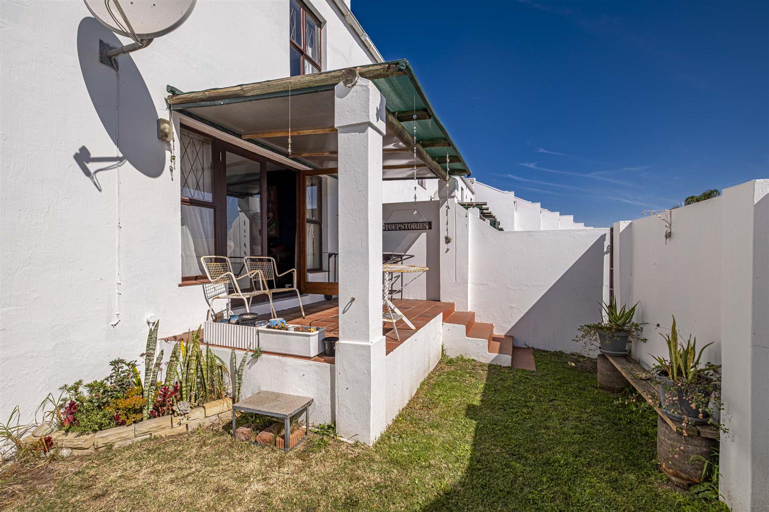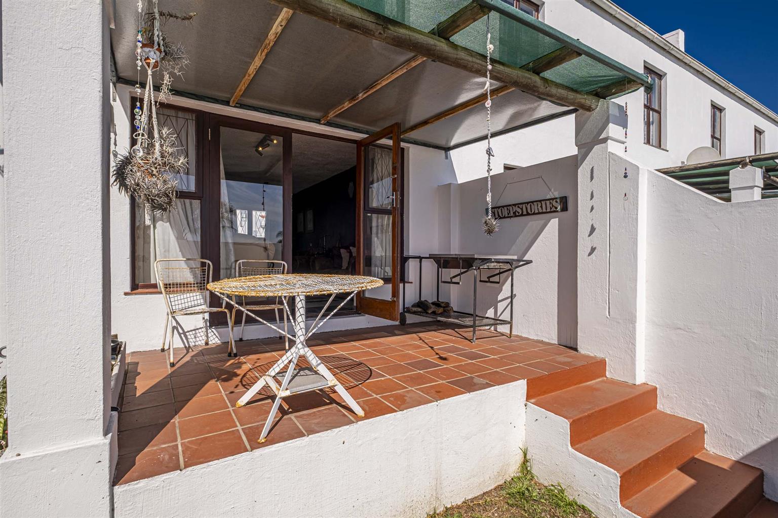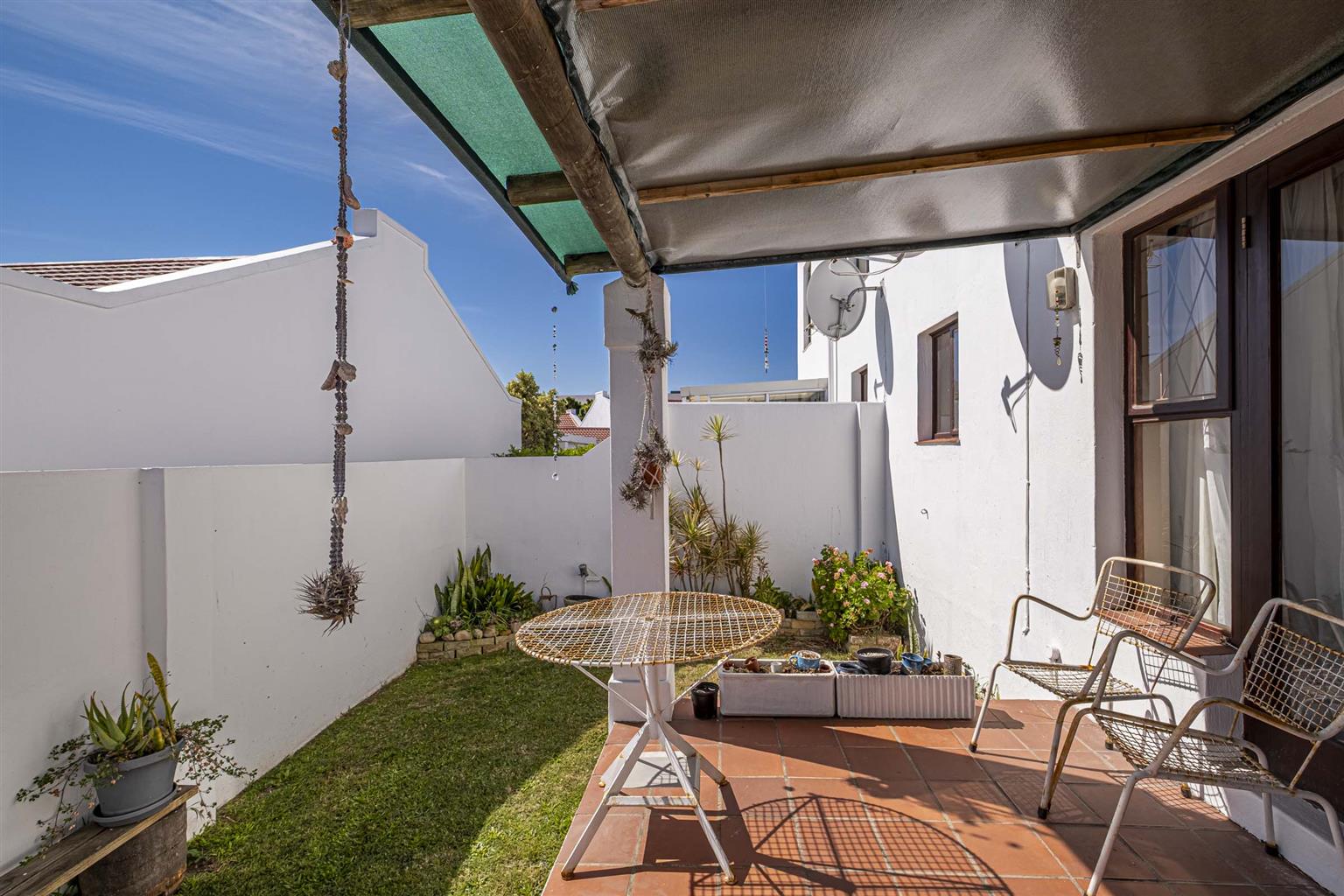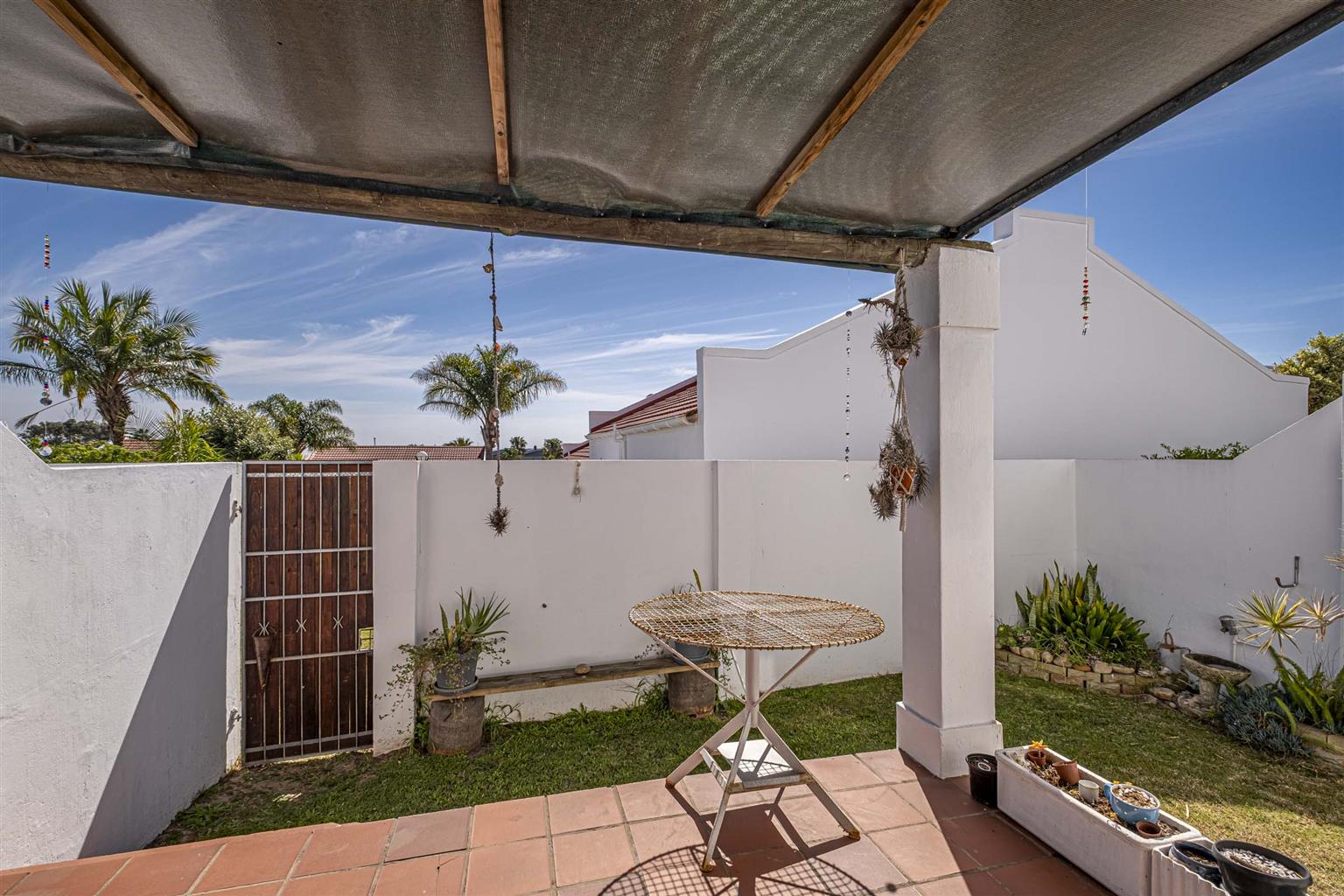Covered patio leading to a private, walled garden