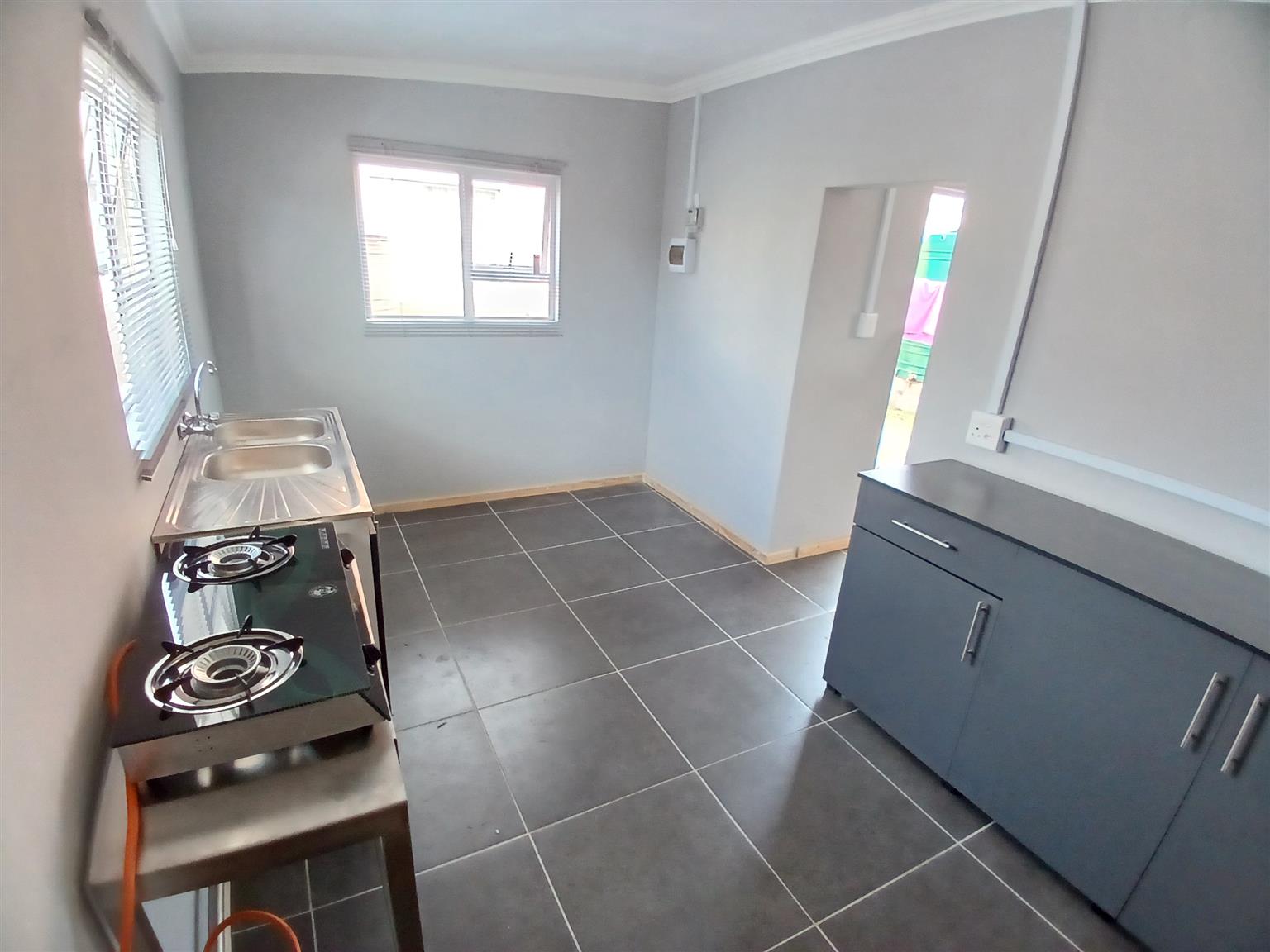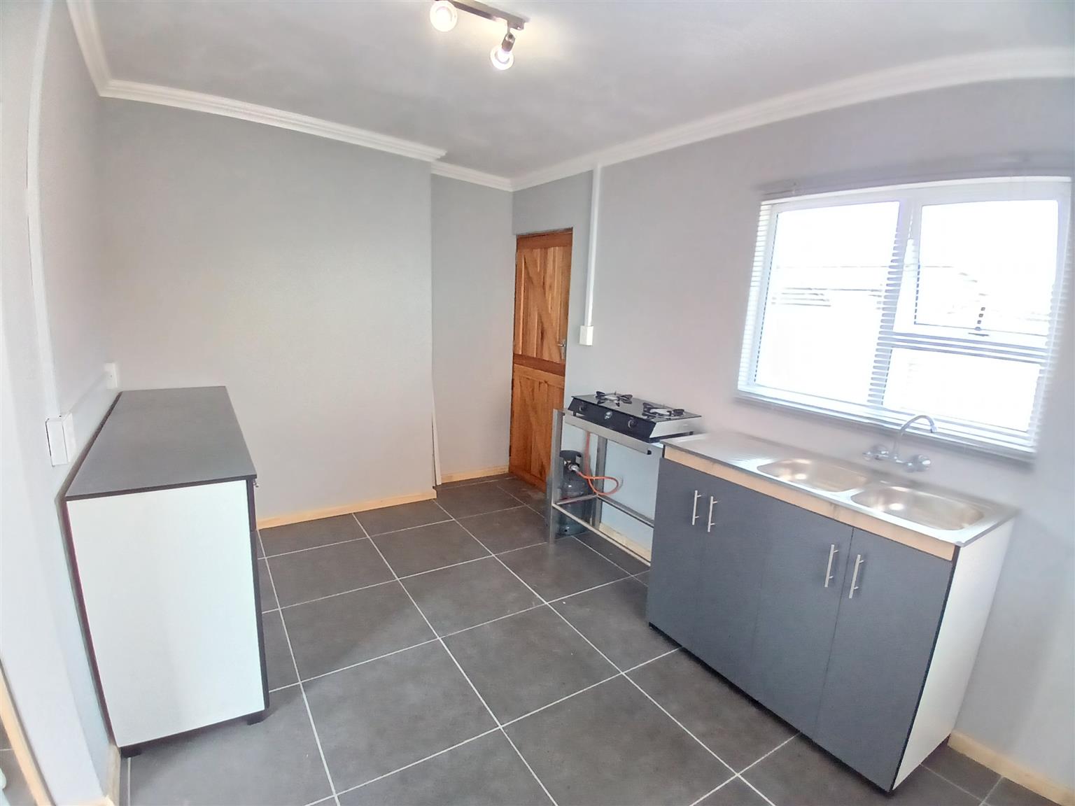 The unit features a spacious open-plan bedroom and living area, a separate kitchen equipped with a 2-plate gas stove, and a private bathroom fitted with a gas shower, toilet, and washbasin.