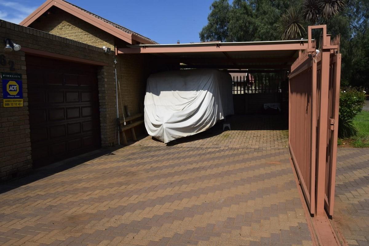 Large garage with automated wooden garage doors that can accommodate 5 vehicles 2 double carports,