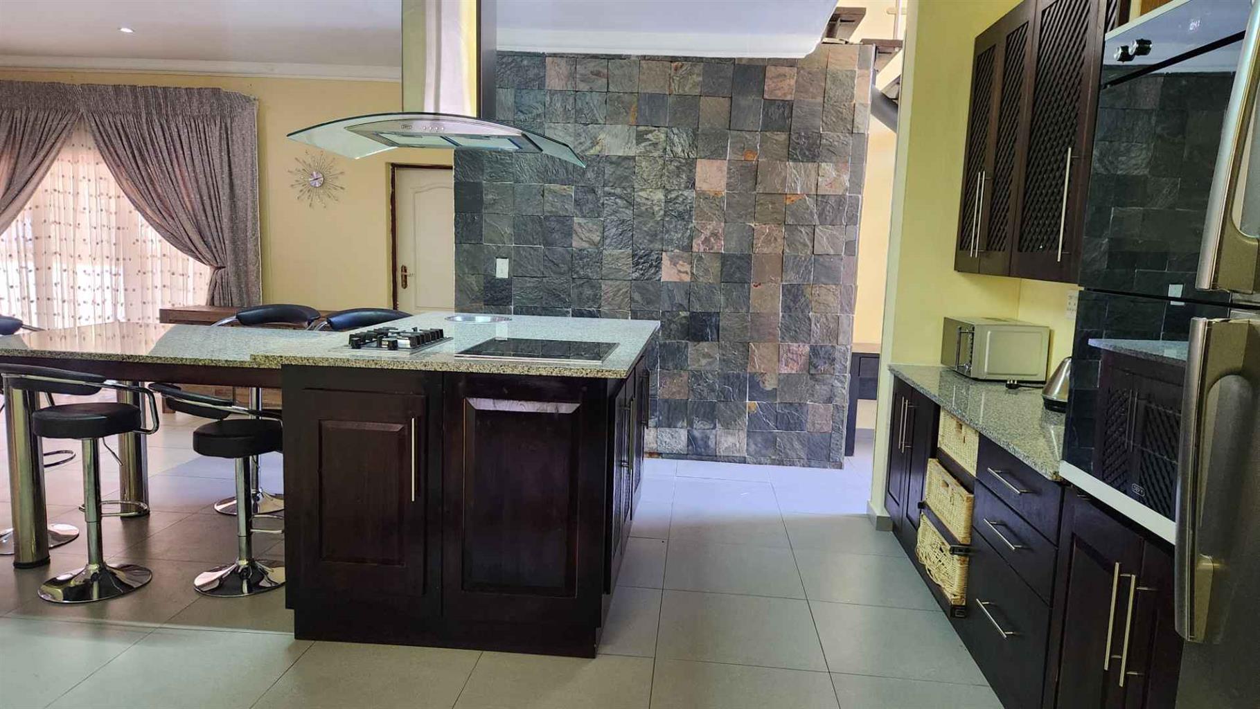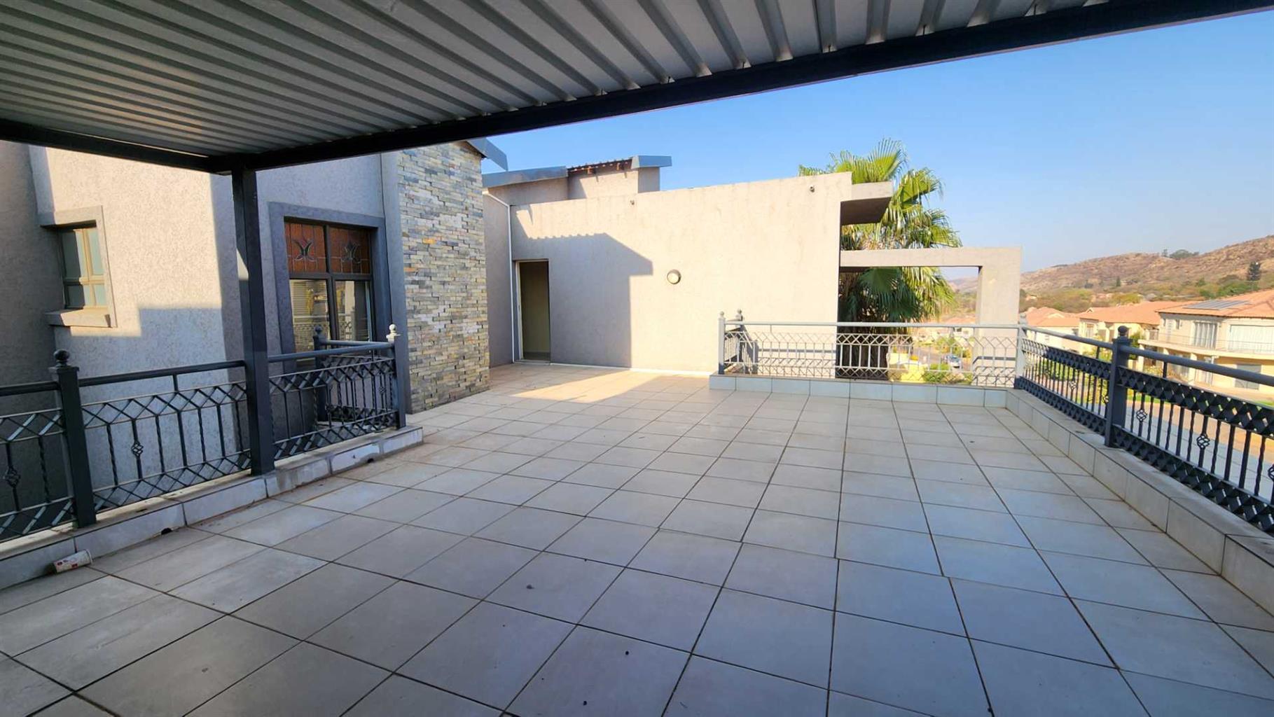 Upstairs, the home continues to impress with a cozy pajama lounge, perfect for relaxed evenings, a bedroom with its own en-suite shower bathroom, alongside the main bedroom that boasts a walk-in closet and a luxurious en-suite bathroom. A sprawling covered patio with a built-in braai offers an ideal space for outdoor entertaining. Notably, every bedroom is enhanced with sliding doors that open onto private balconies, offering serene views and fresh air.