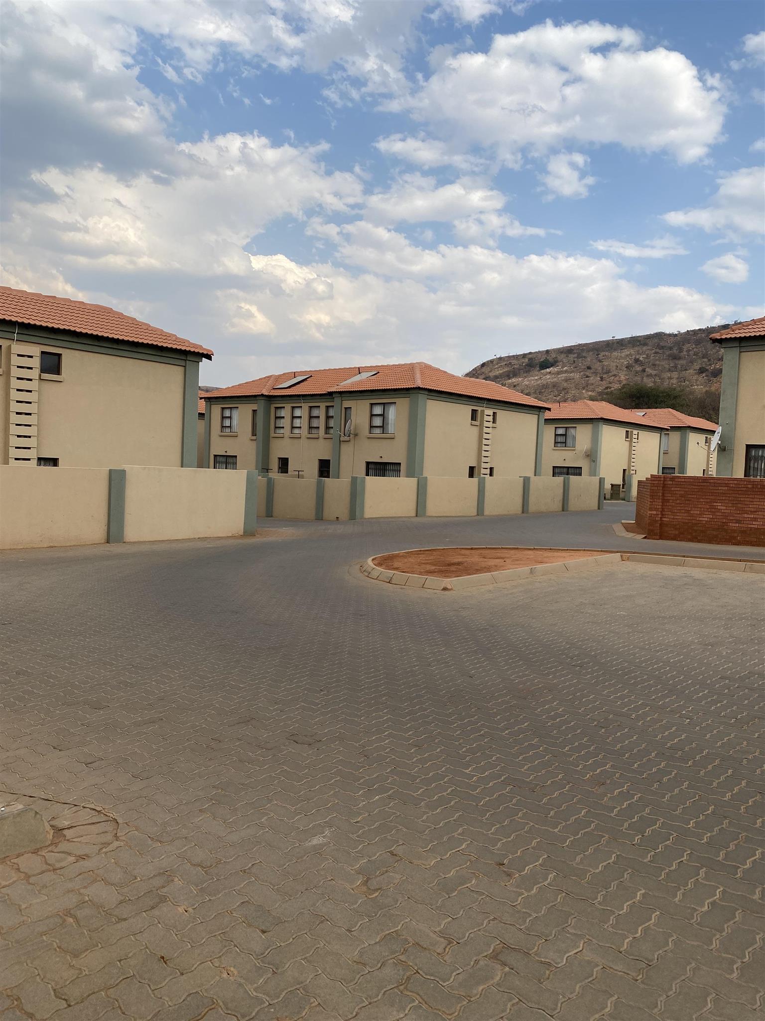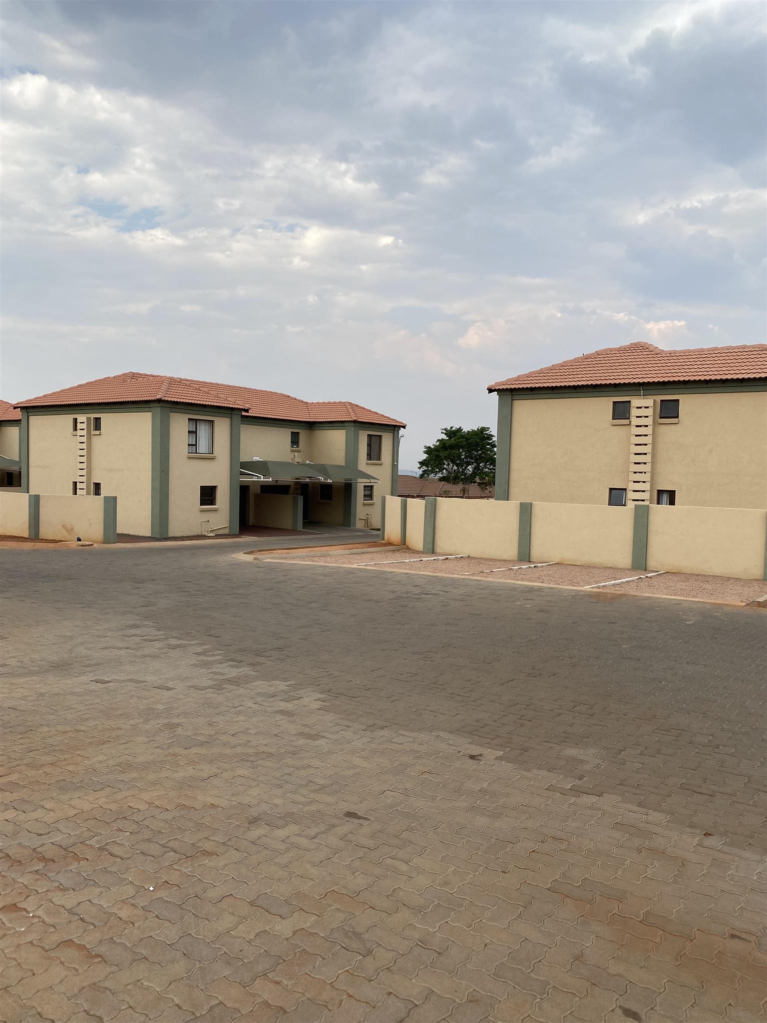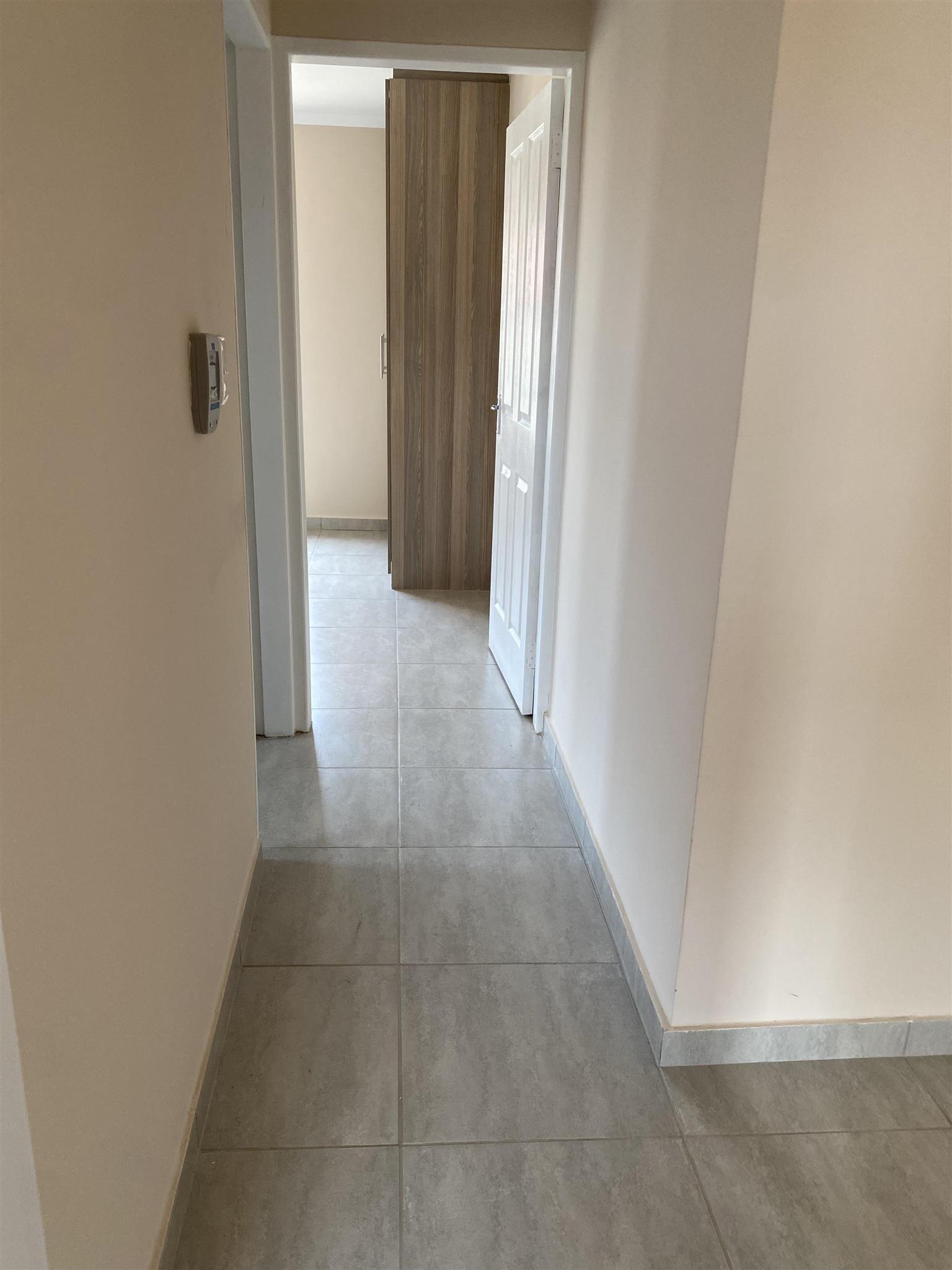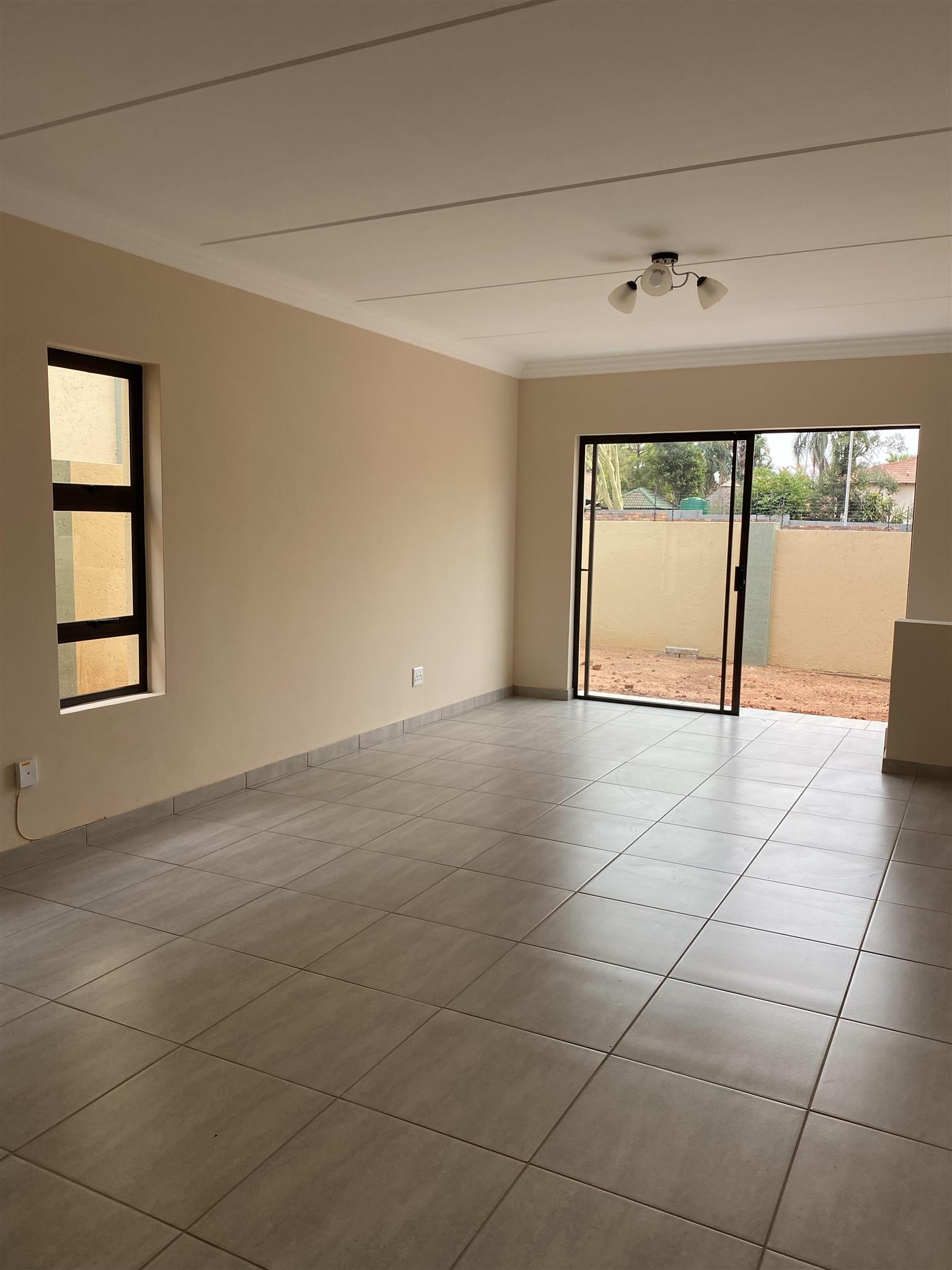 Modern duplex offers open plan kitchen with spacious lounge and guest loo downstairs. Good sized 3 bedrooms with built in cupboards and 2 full bathrooms are upstairs .Duplex has private garden, garage and covered carport . Brand new property includes solar system and solar geyser. Water and electricity are prepaid.