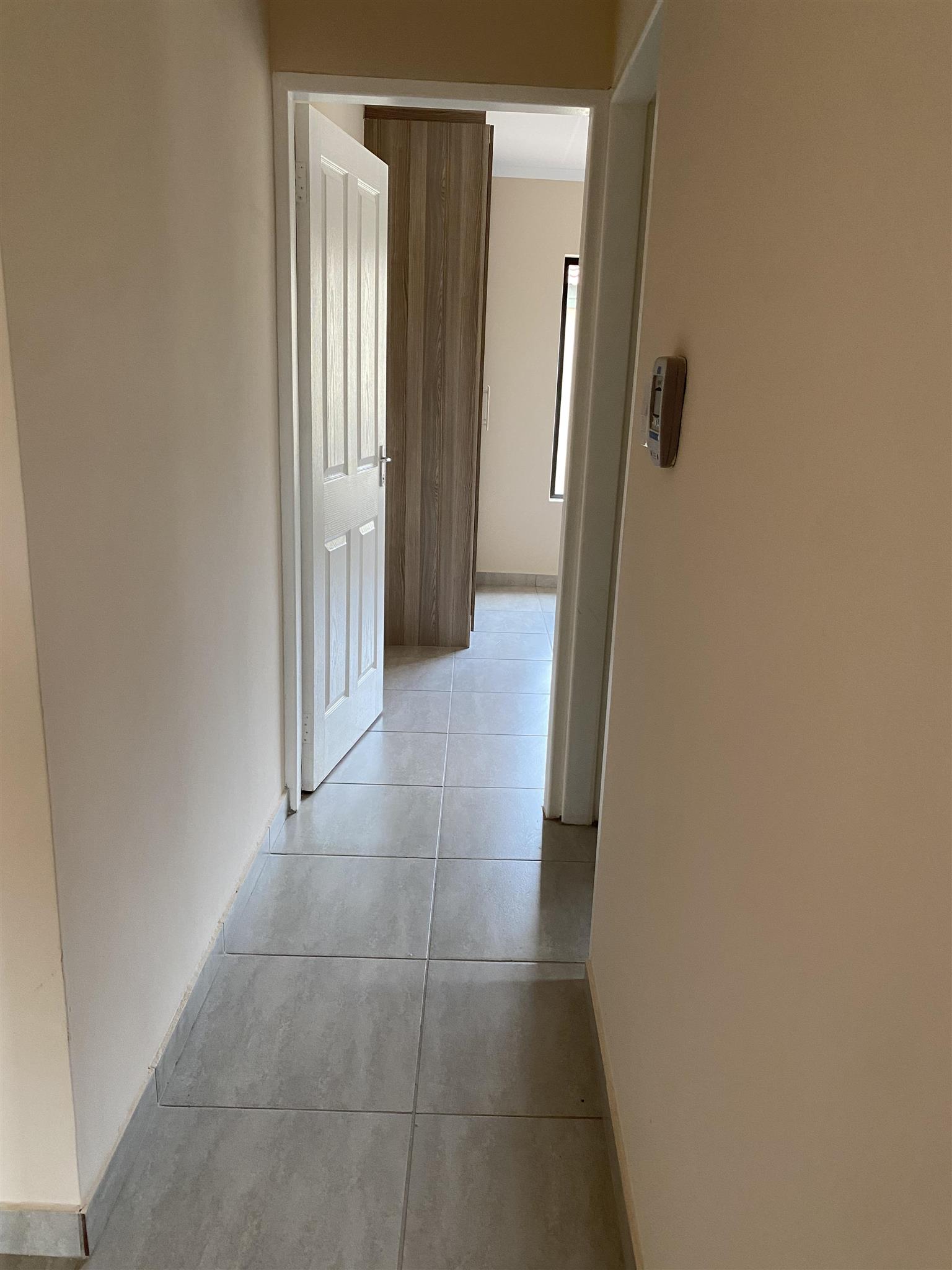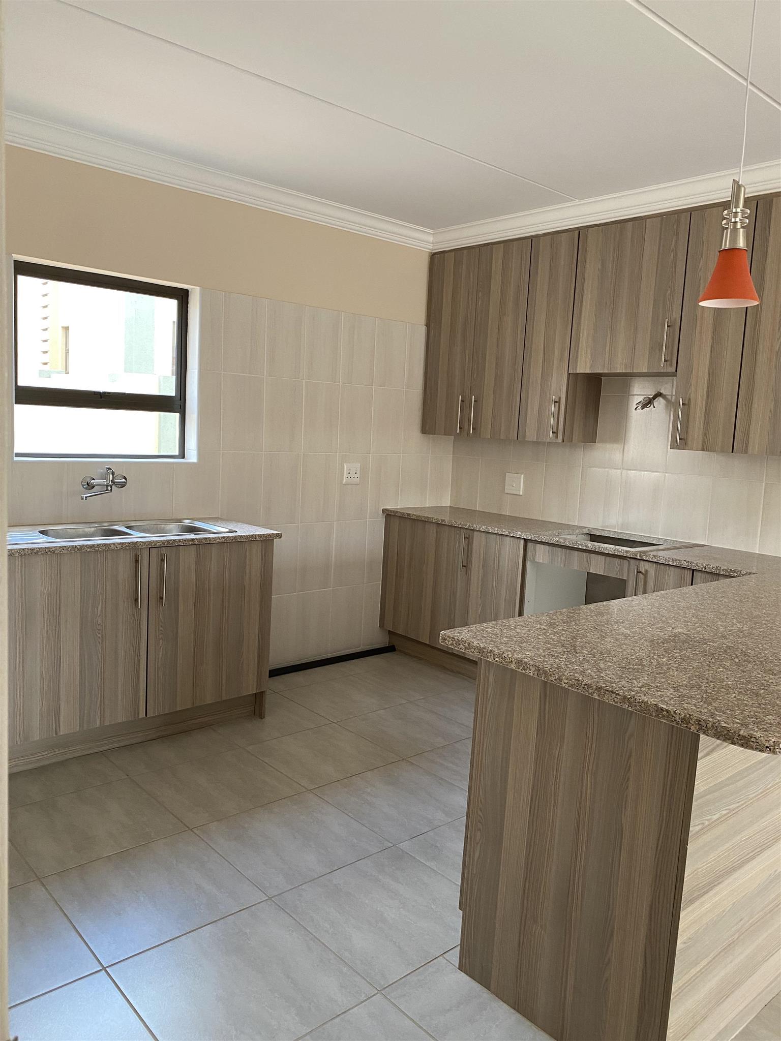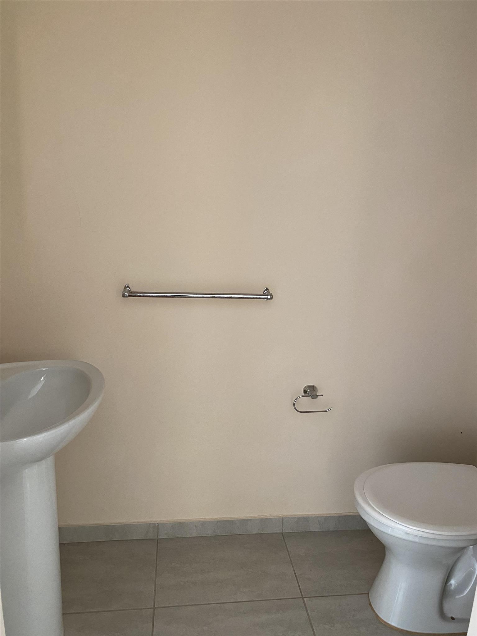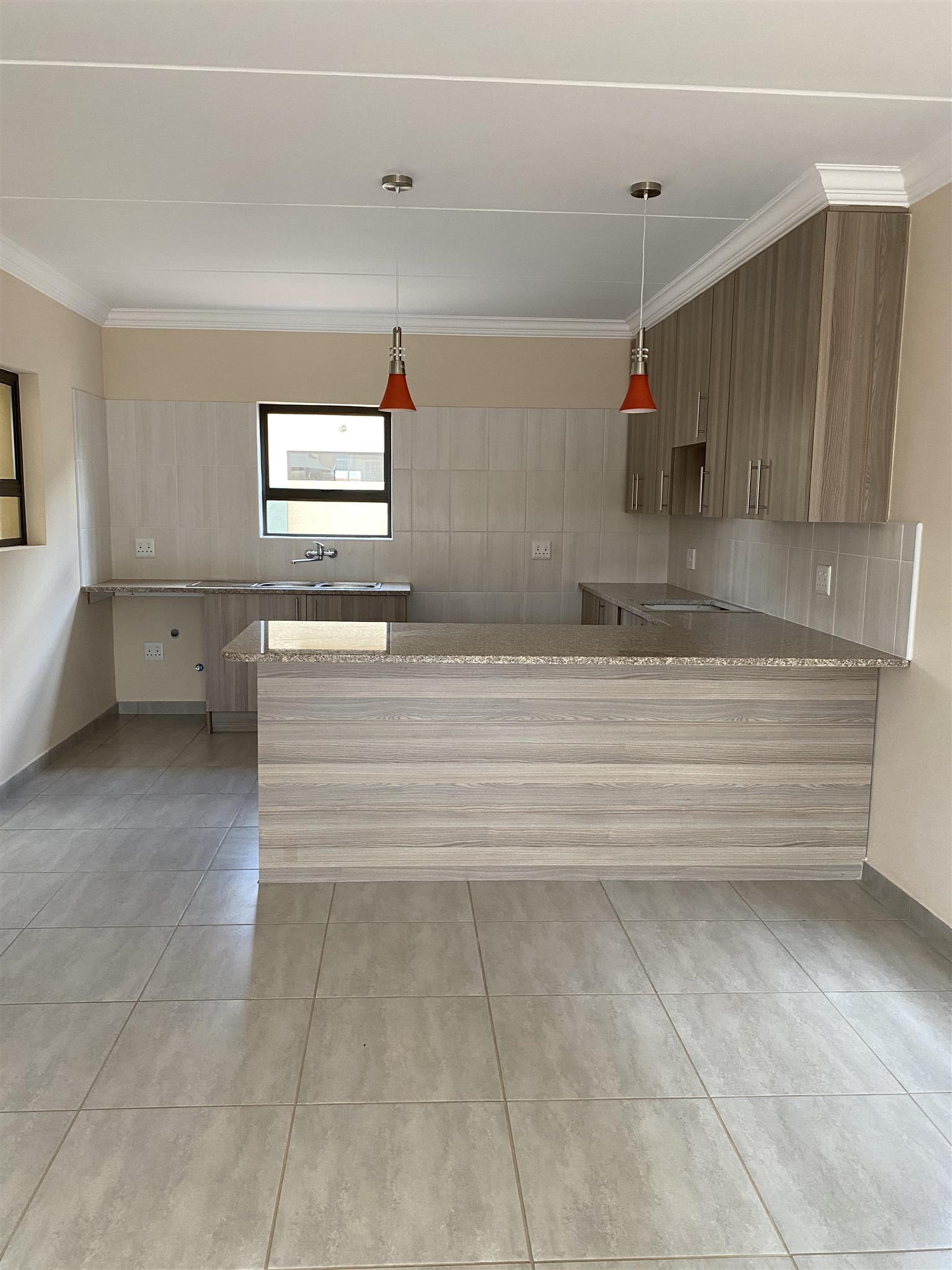 Modern duplex offers open plan kitchen with spacious lounge and guest loo downstairs. Good sized 3 bedrooms with built in cupboards and 2 full bathrooms are upstairs .Duplex has private garden, garage and covered carport . Brand new property includes solar system and solar geyser. Water and electricity are prepaid.