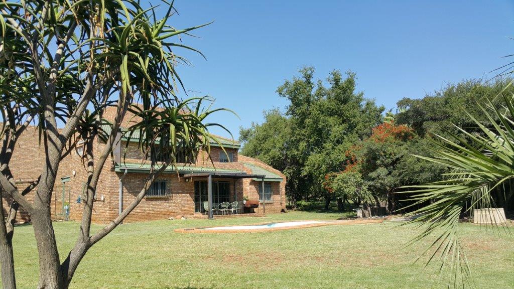 Description: 1.01 ha plot for sale between Amandasig and Ninapark (Pretoria North area) close to the mountain. House is semi double storey. Down stairs: 2 bedrooms with 1 fully bathroom (bath, shower, toilet and basin), 4 spacious open plan living areas (one has built in braai), spacious kitchen and scullery, from the scullery you have entry to the double garage, courtyard. Up stairs: Spacious master bedroom, with big full bathroom (shower, jacuzi bath, toilet and basin), study and walk in closet with balcony. there is also a pool. (House is approximately 378 square metres). Property is close to Wonderpark Mall, Acacia Clinic, churches, same street as Belgium College and lots of schools.