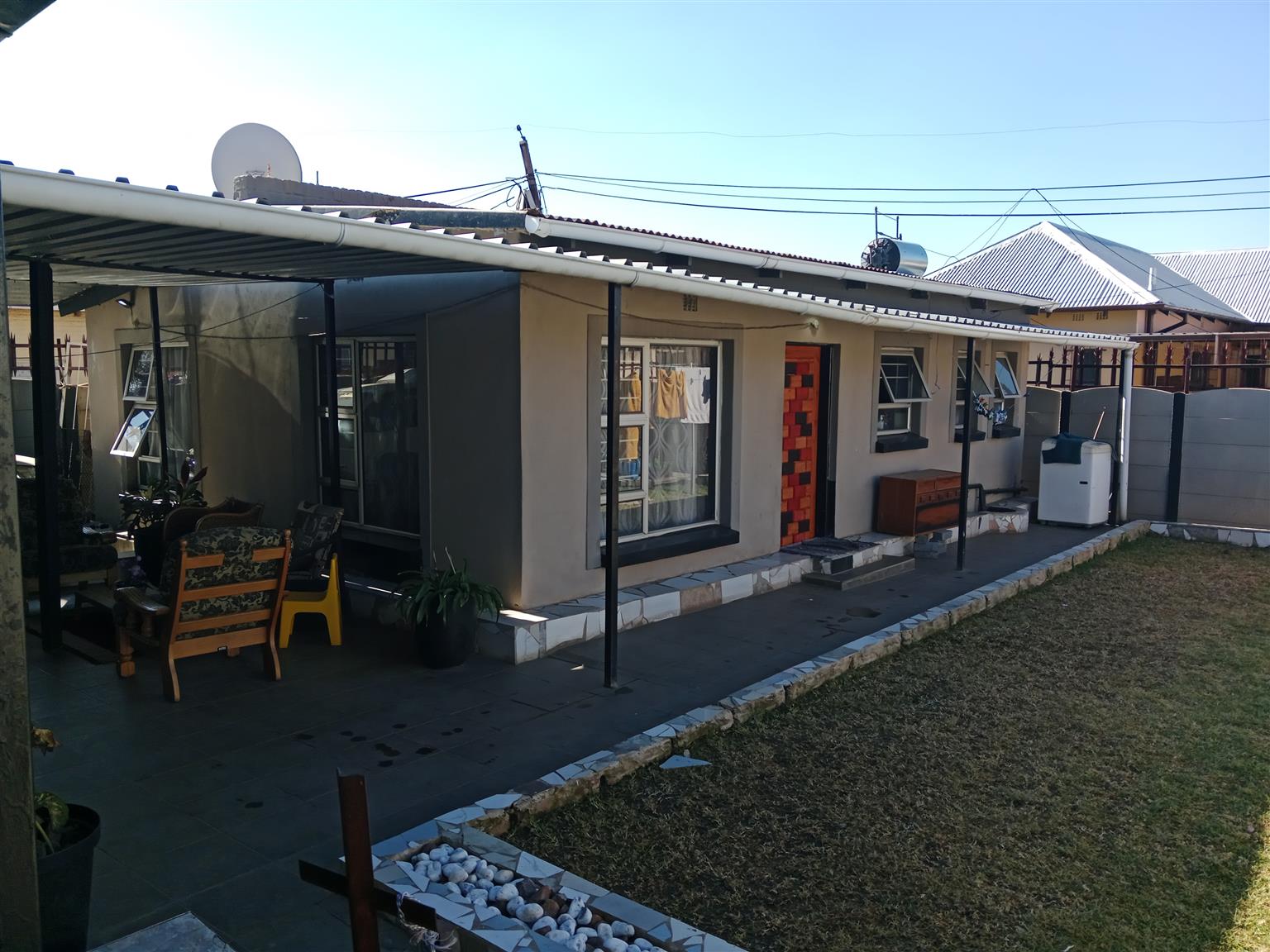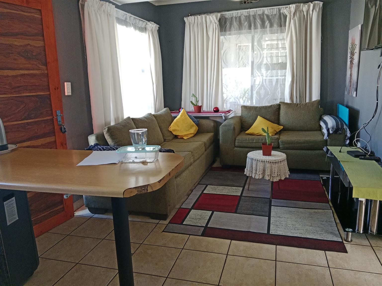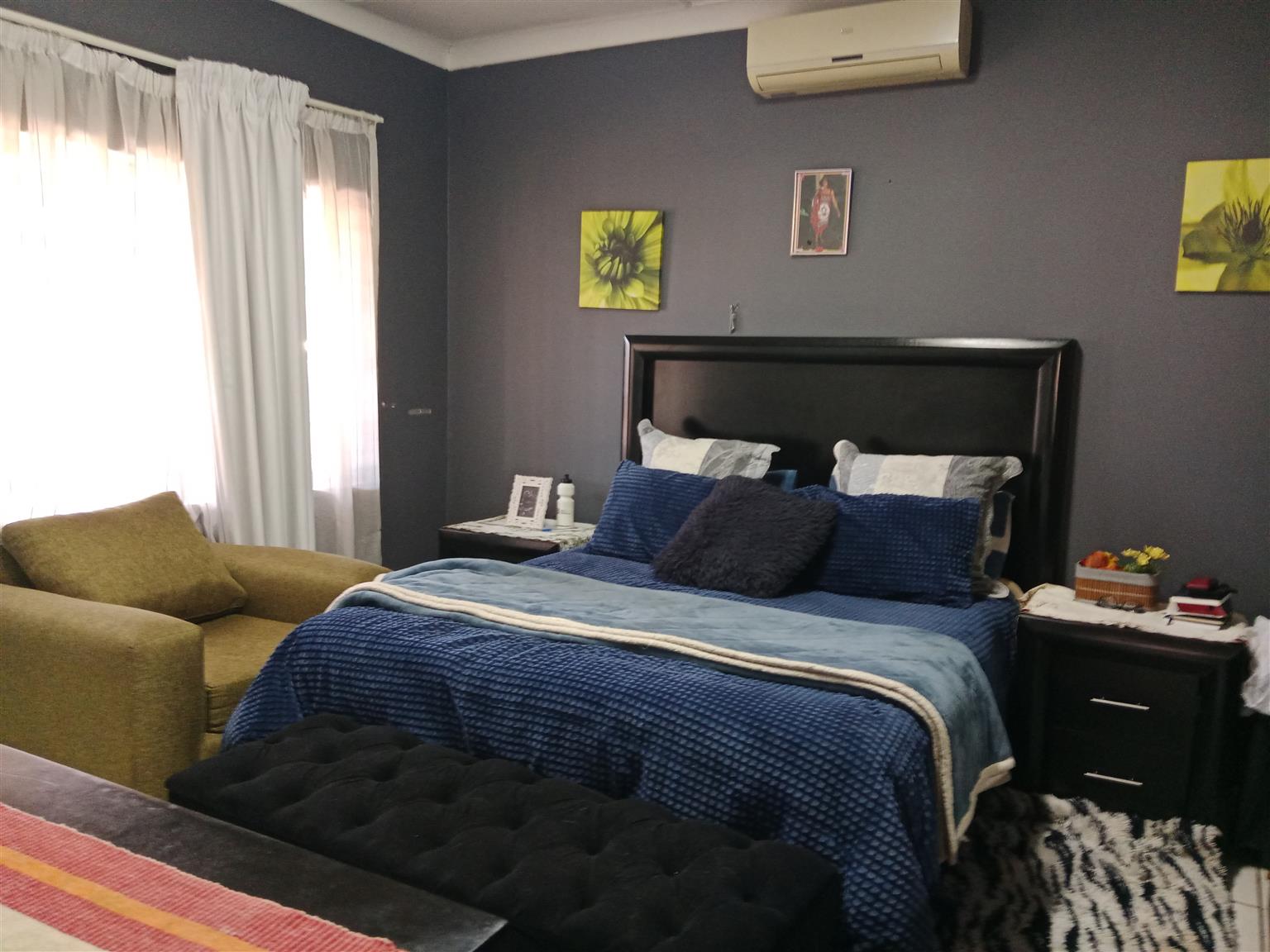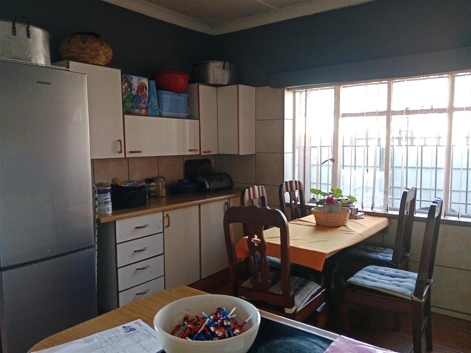 This meticulously maintained home is perfect for newlyweds looking to start their journey together. With the added benefit of a two-bedroom flatlet, you can generate rental income to help with your bond payments. The main residence features two spacious bedrooms with ample built-in cupboards and a fully tiled bathroom equipped with a bath, shower, toilet, and vanity.