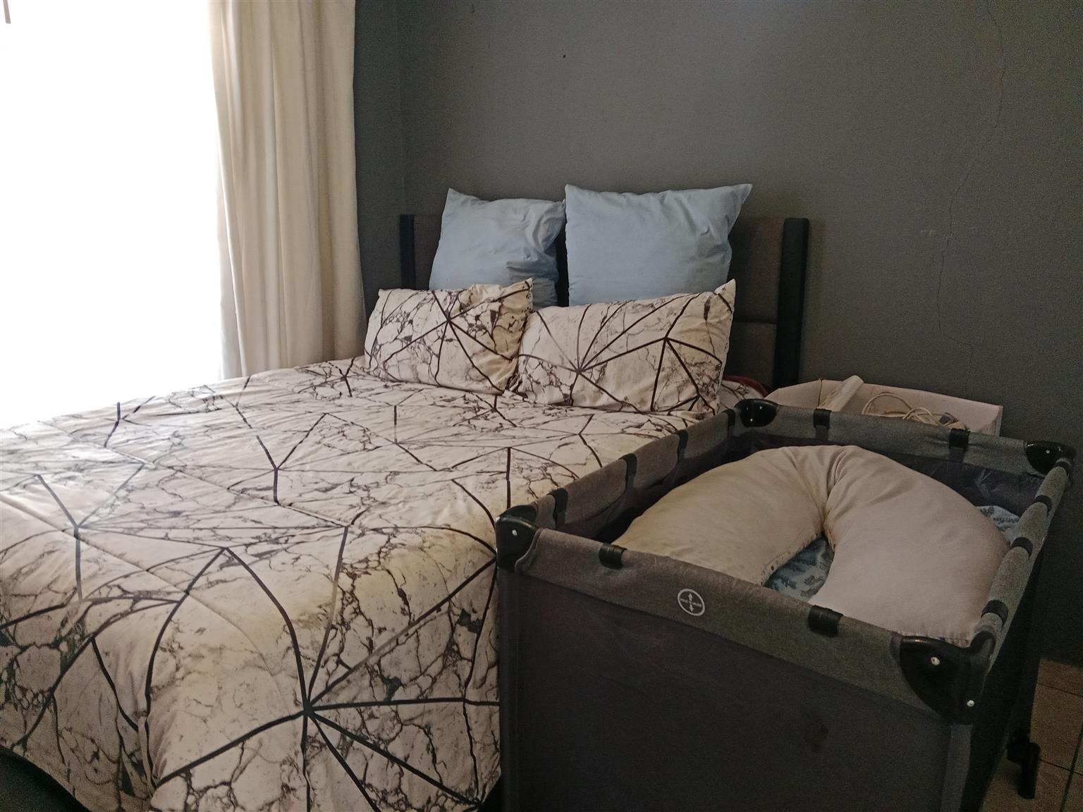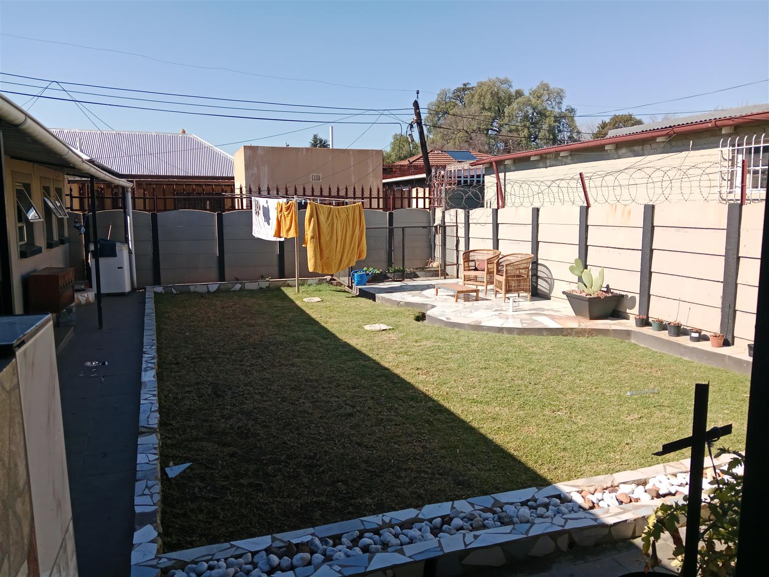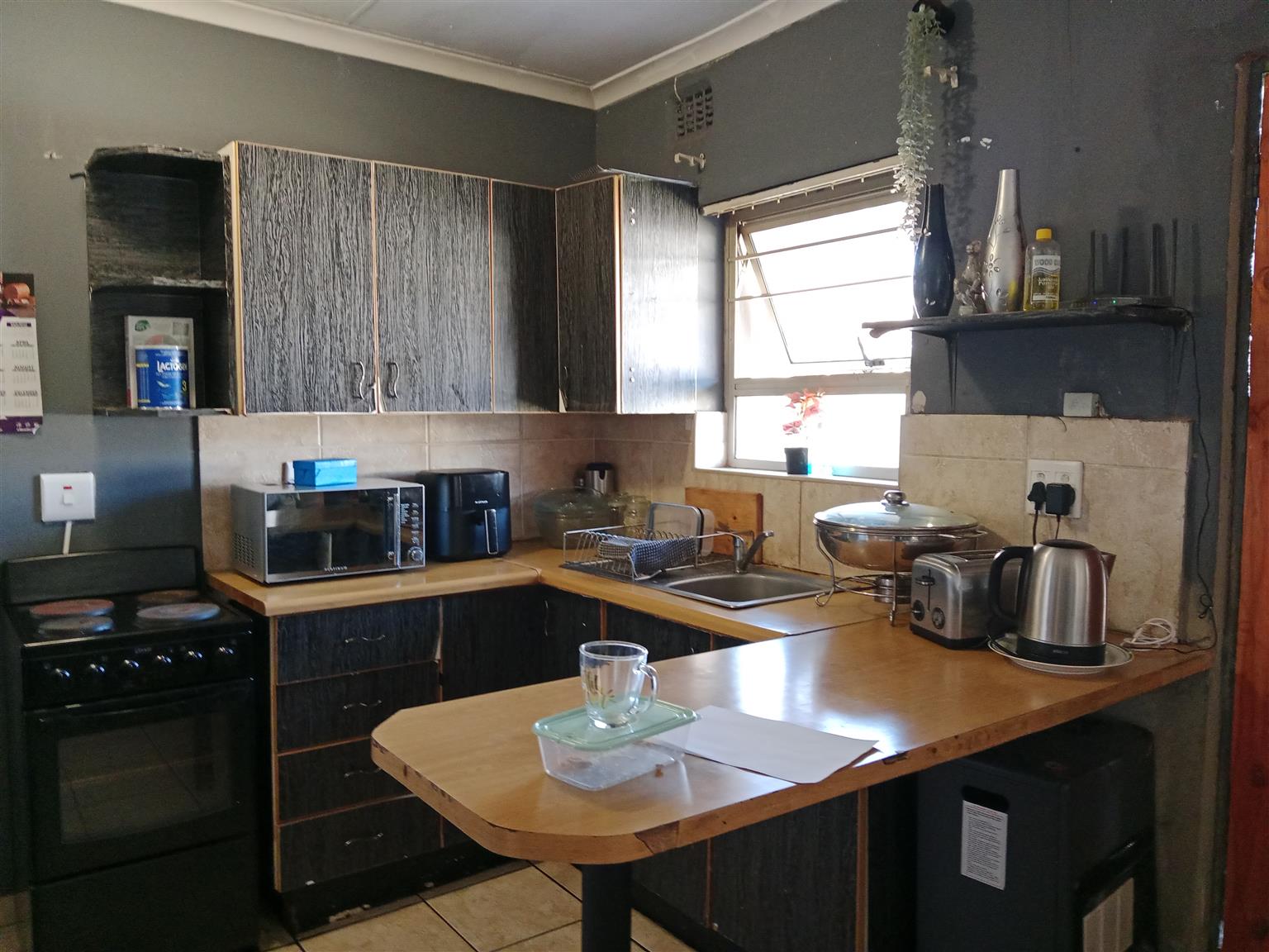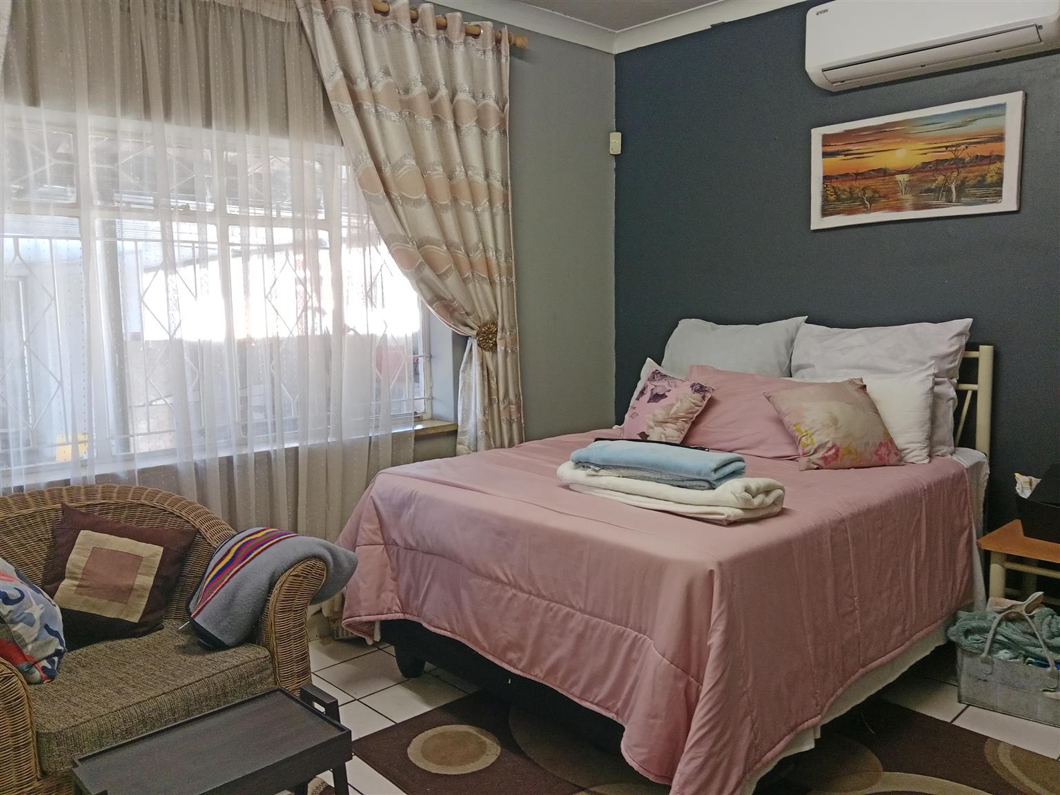 This meticulously maintained home is perfect for newlyweds looking to start their journey together. With the added benefit of a two-bedroom flatlet, you can generate rental income to help with your bond payments. The main residence features two spacious bedrooms with ample built-in cupboards and a fully tiled bathroom equipped with a bath, shower, toilet, and vanity.