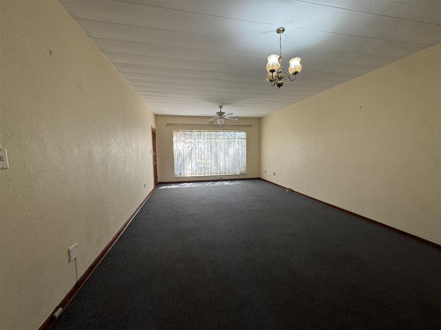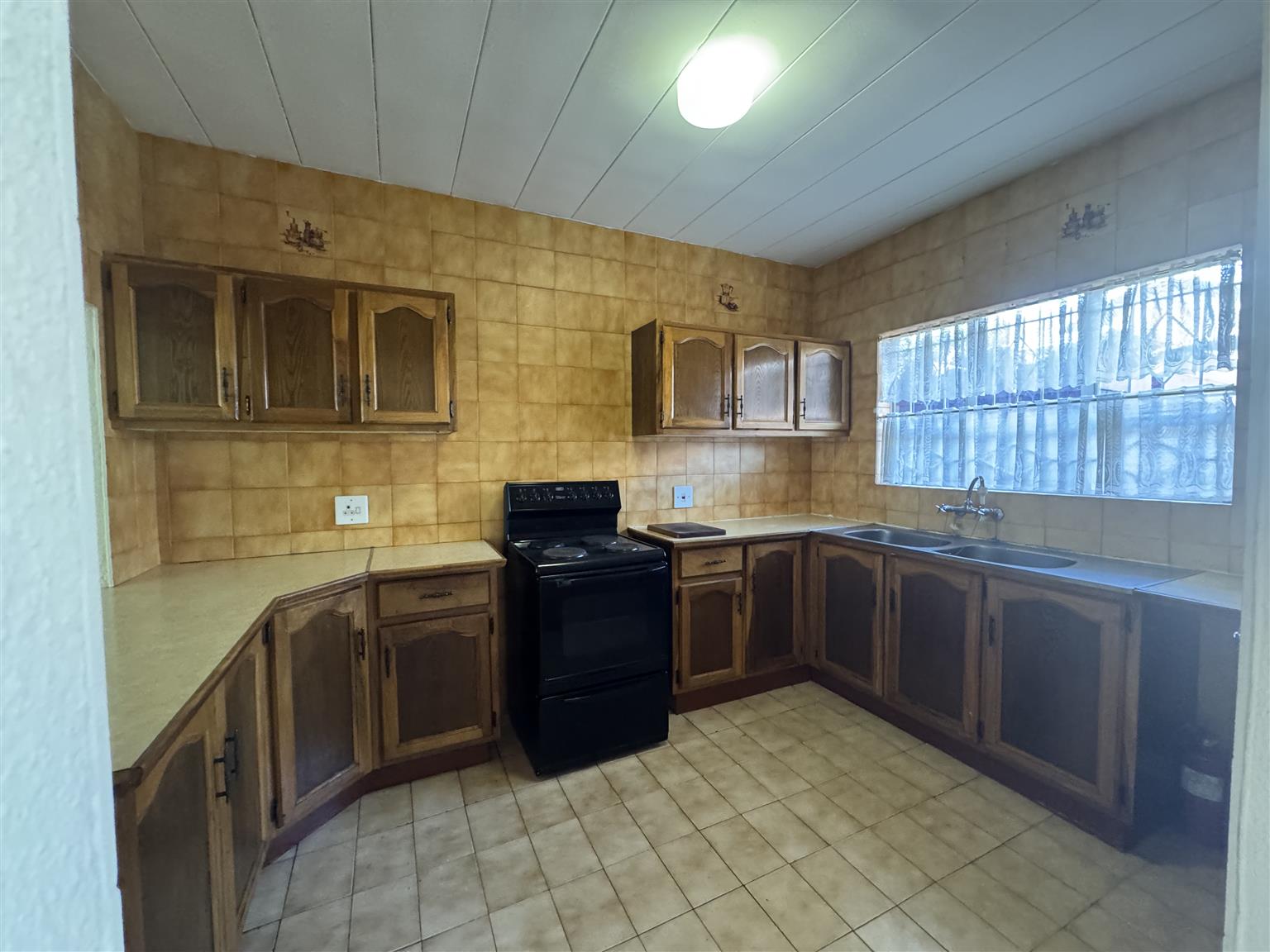 An Open-plan kitchen with ample cupboards, dining space a Lounge leading onto a balcony and private garden .