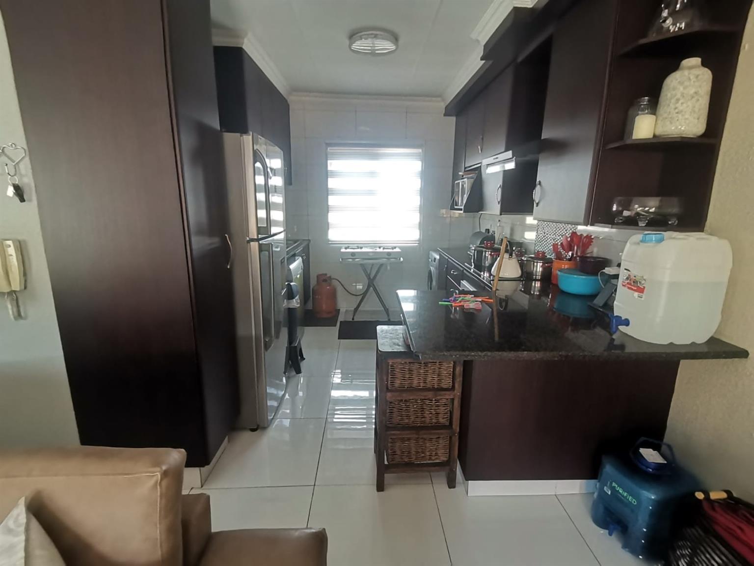 This u;tra modrn first floor unit comprises of an open plan kitchen and lounge, 2 bedrooms with built in cupboards and 2 bathrooms. The kitchen granite tops, an under counter oven, hob and extractor fan.