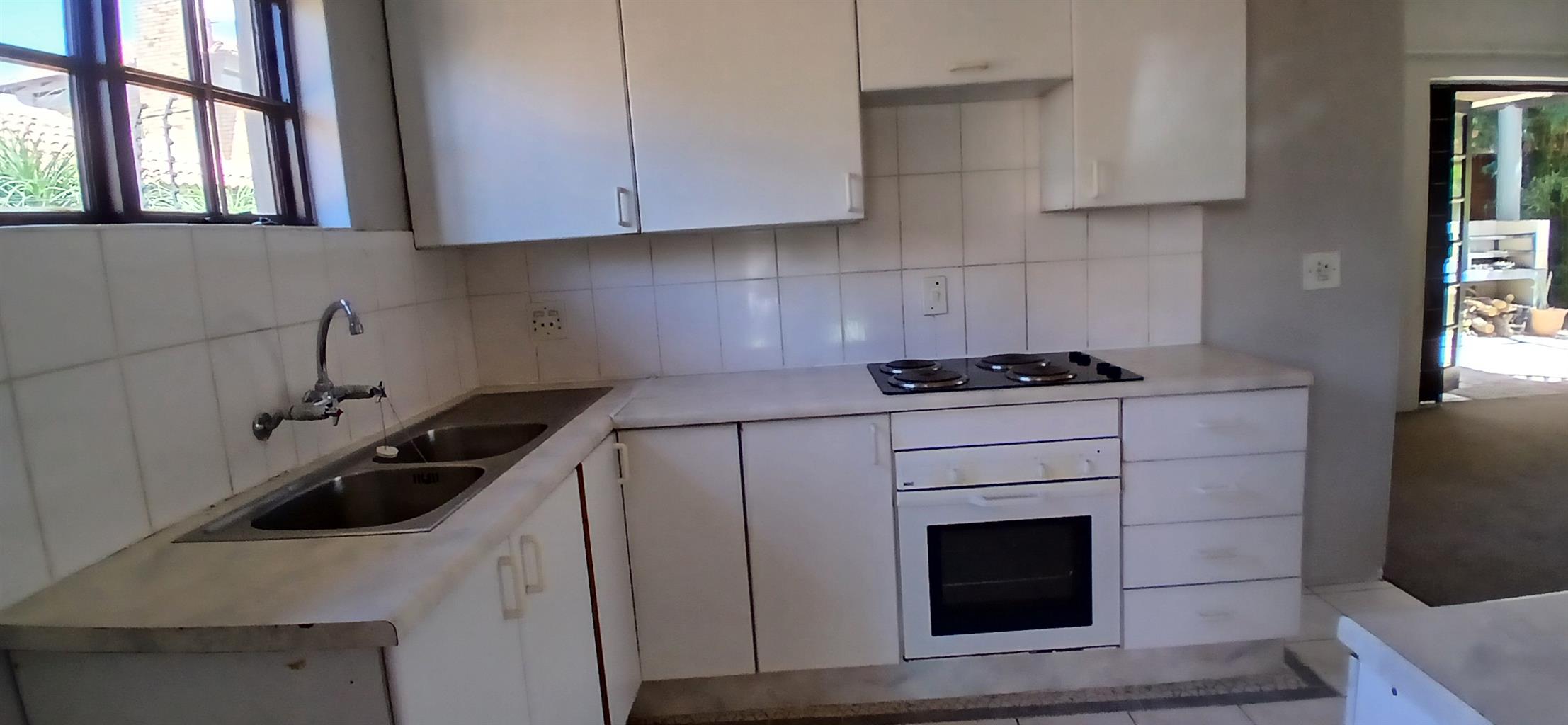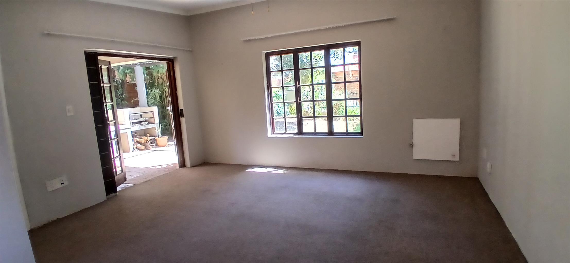 A 1-bedroom flatlet with a full bathroom, kitchen, and lounge — complete with French doors opening to a private patio with built-in braai.