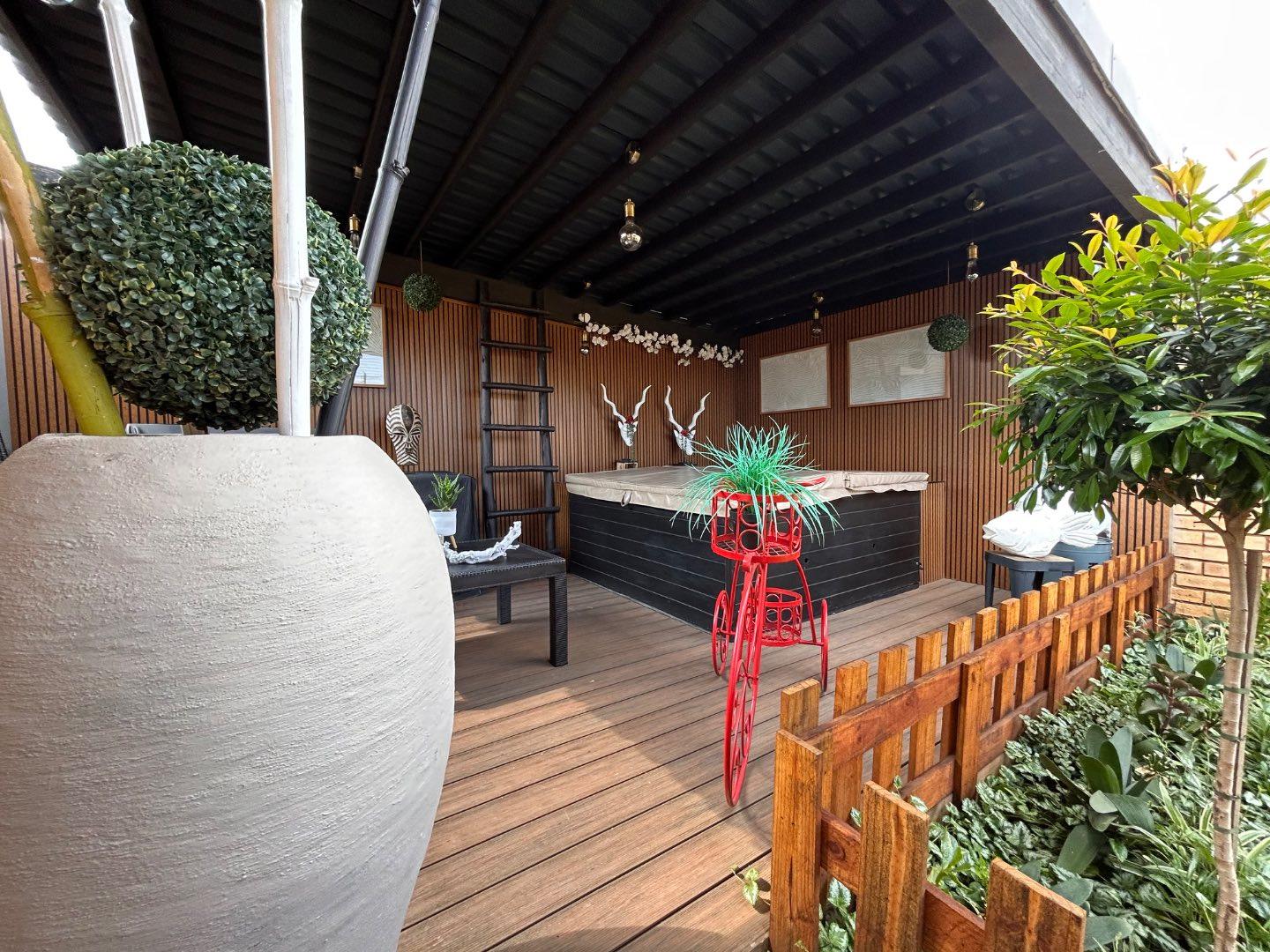 Covered Jacuzzi deck with top-of-the-line Jacuzzi for ultimate relaxation