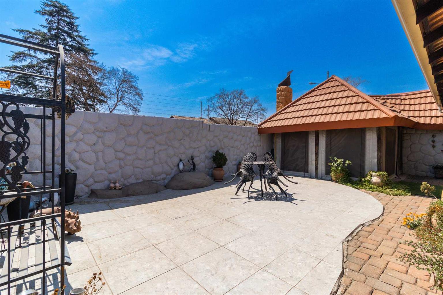 Private pet friendly well established garden with a lapa and built in braai. The lapa is equipped with canvas roll down blinds.