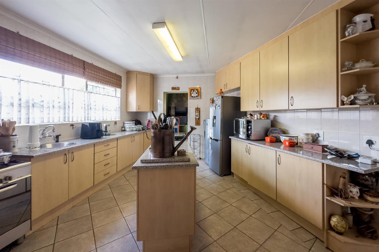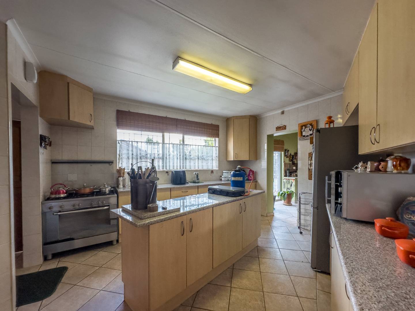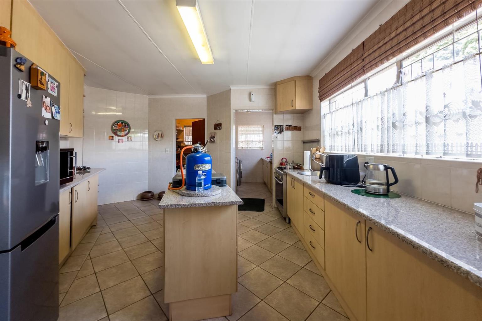Well-designed kitchen with gas stove and separate scullery & pantry