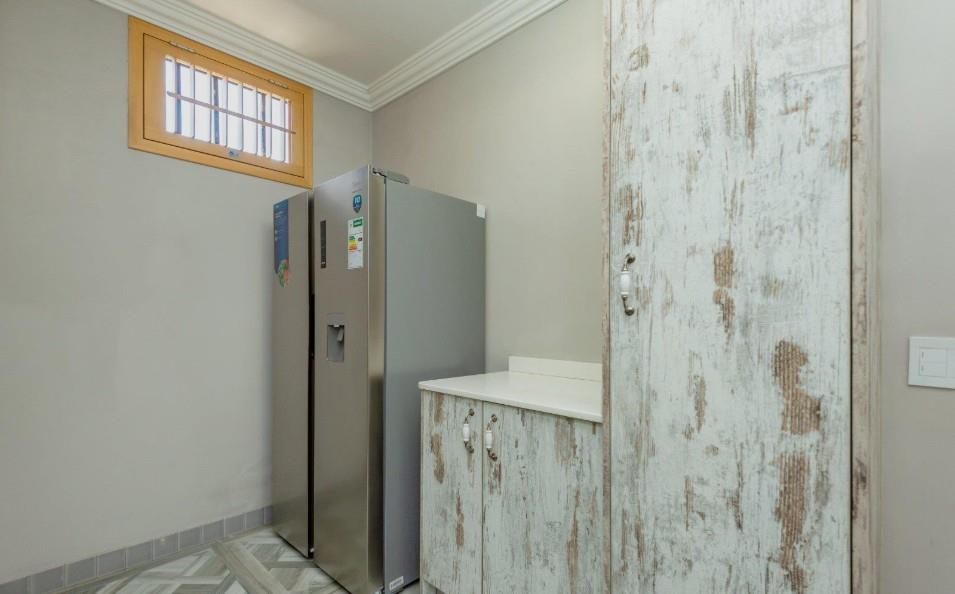 Step outside to a private garden oasis, complete with a family-sized pool, ideal for relaxation or hosting family gatherings. The gated estate provides 24/7 security, offering peace of mind and privacy for residents. Its prime location offers easy access to schools, shopping centers, and other essential amenities, making it a hub of convenience.