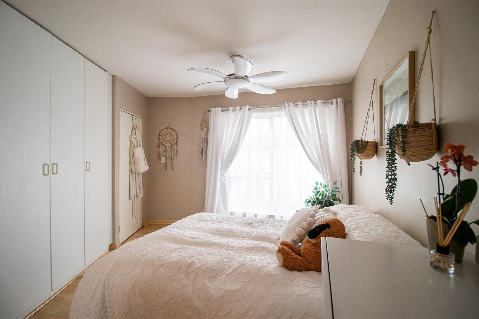 The upper level hosts four generously sized bedrooms, each with built-in cupboards (BICs) and elegant laminated flooring. The separate study, fitted with blinds, offers a quiet workspace. Comfort is ensured in three of the bedrooms, with air conditioning and ceiling fans. The master suite boasts an ensuite bathroom equipped with both a full bath and shower, while the third bedroom features an over-bath shower.